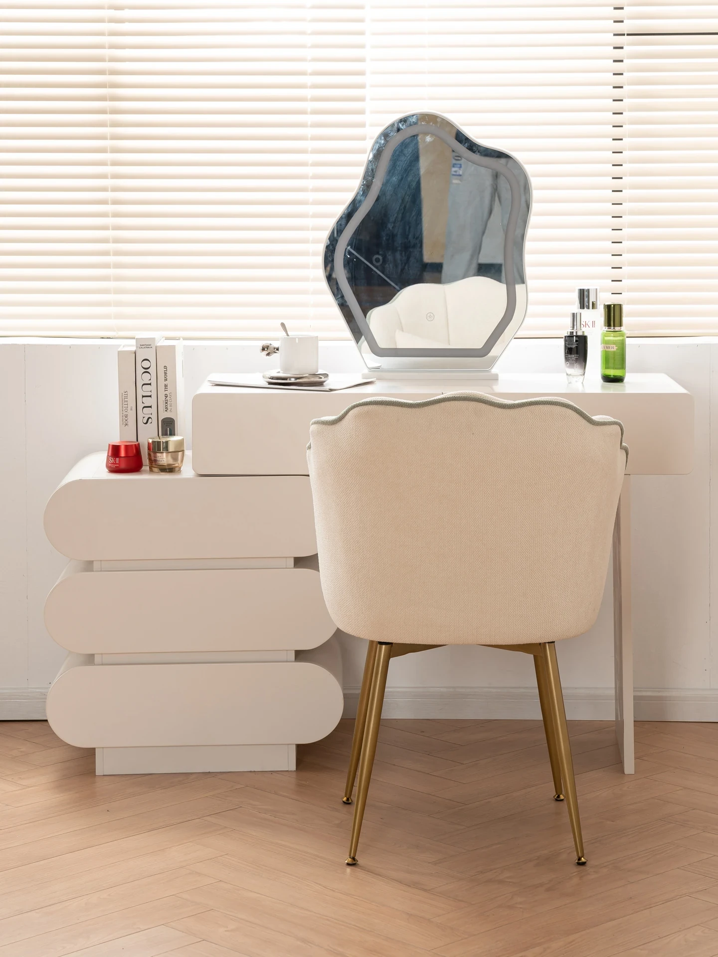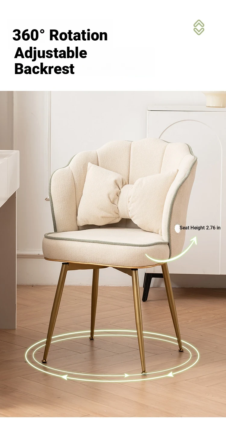 French-style Vanity Chair for Dressing Room - Chic, Elegant, and Comfortable Makeup Stool for Women - Ideal for Bedroom and Nail Art - Stylish Backrest Accent Chair for Home Use