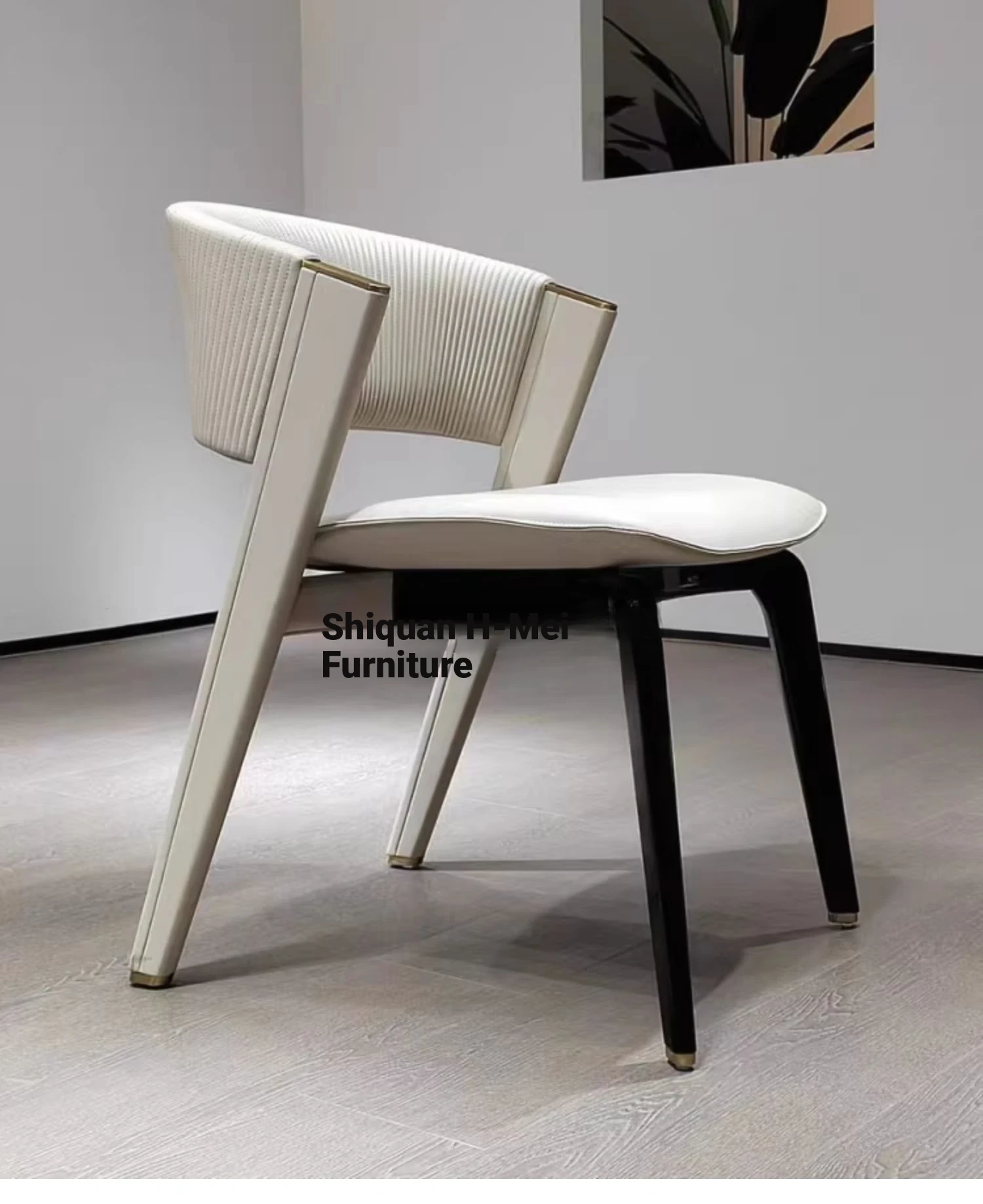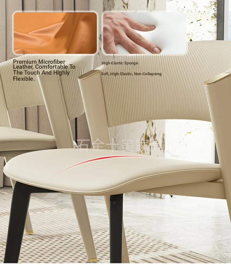 CC dining chair "creamy-white imitation leather + black solid wood feet]