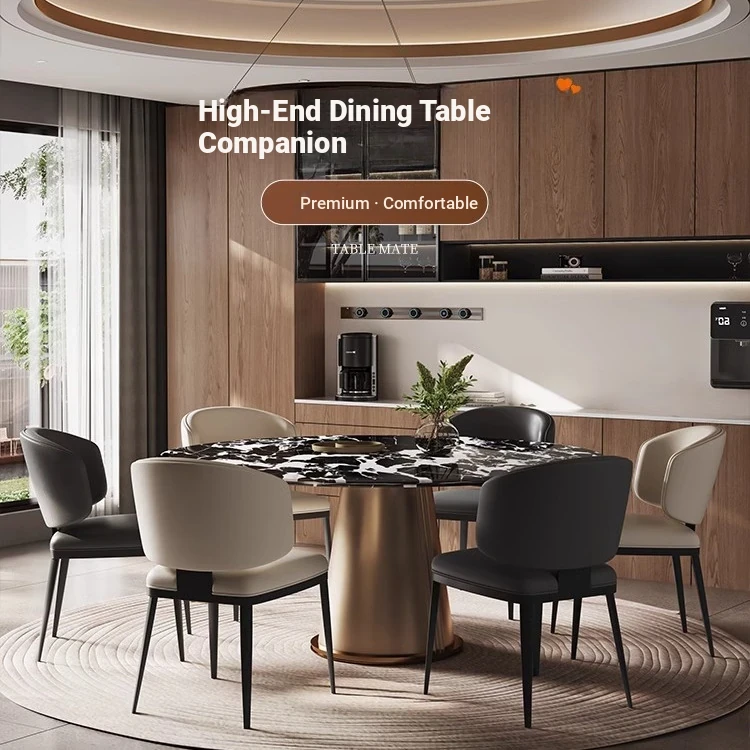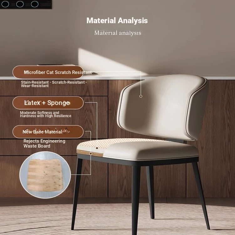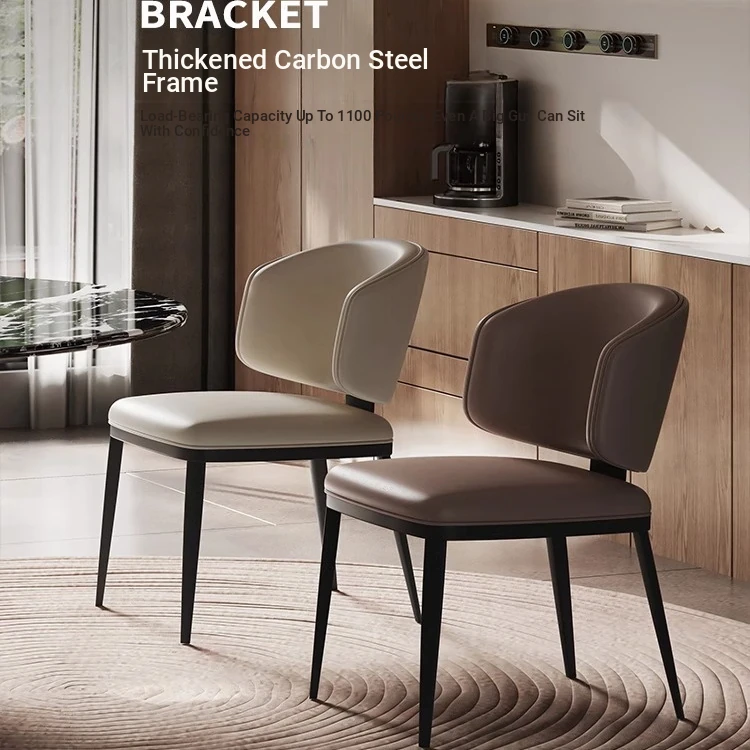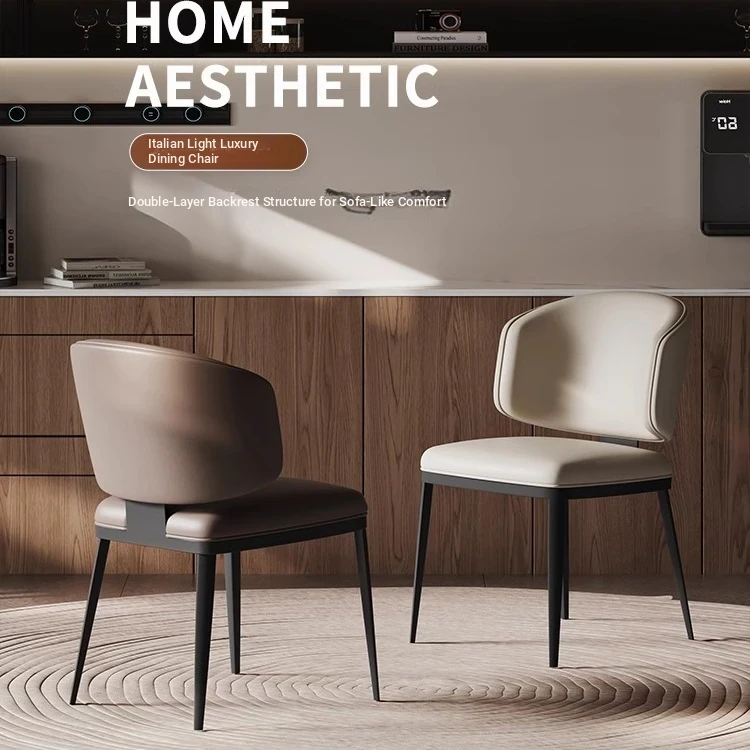 Italian Minimalist Dining Chair - Modern Luxury Home Island Stool with Genuine Leather Upholstery, 2025 New Arrival Backrest Chair for Elegant Dining Spaces