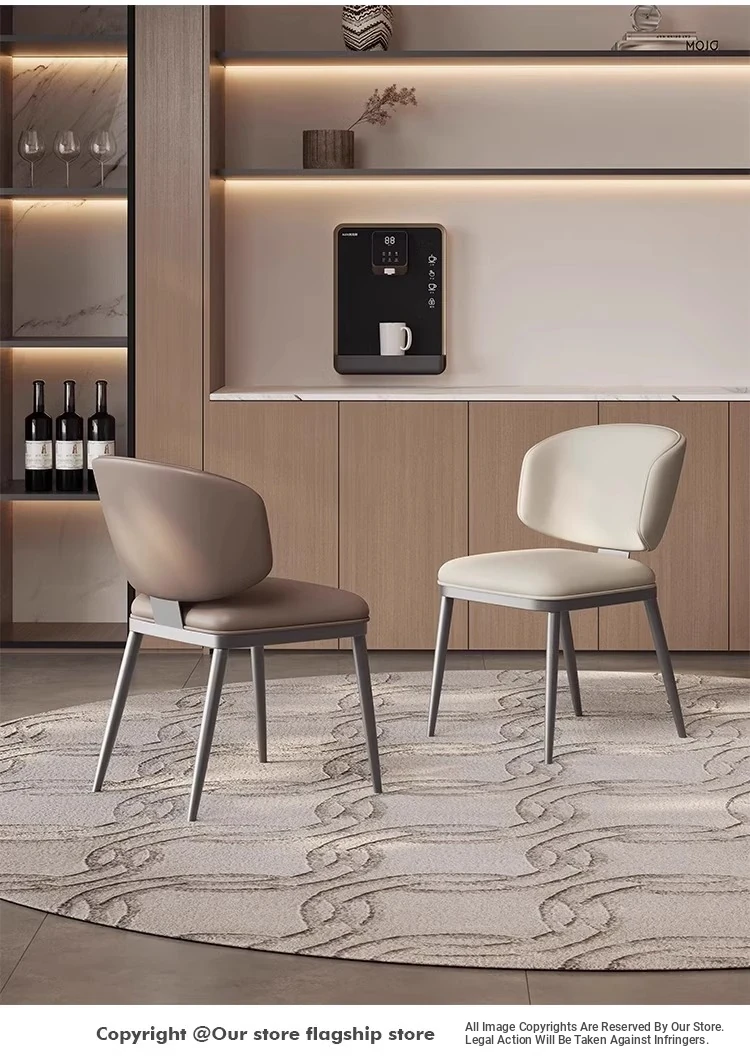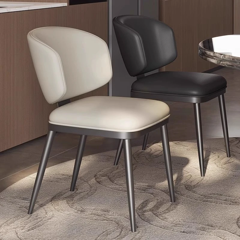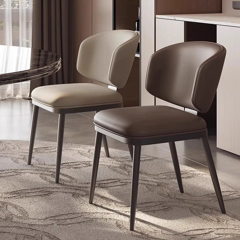 Italian Minimalist Genuine Leather Dining Chair - Nordic Style Modern Simple Home Armchair, Light Luxury Dining Table Chair, Trendy Stool for Stylish Living Spaces
