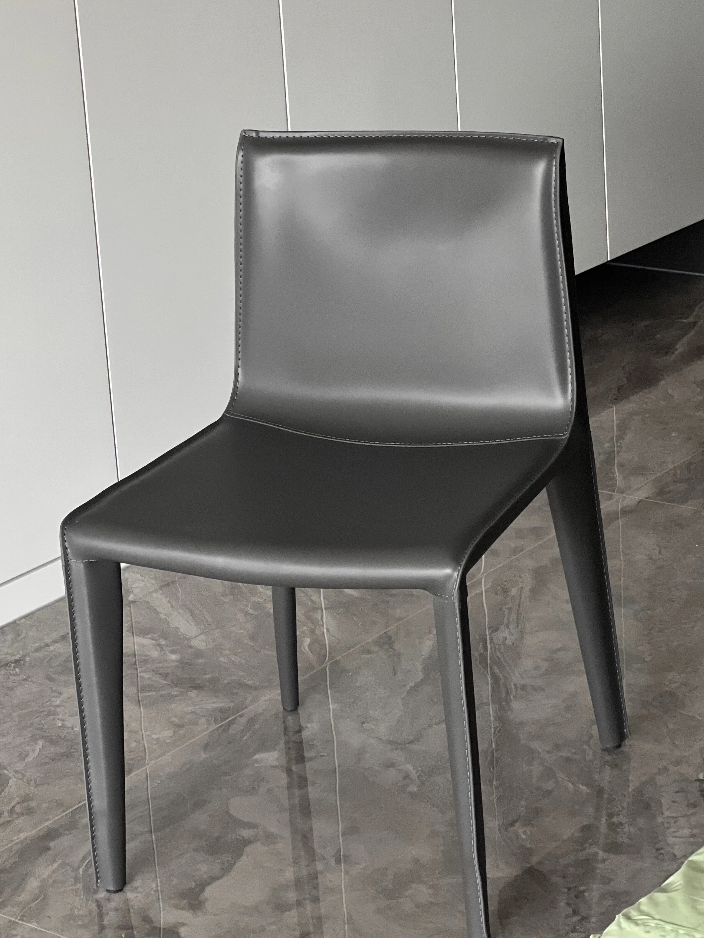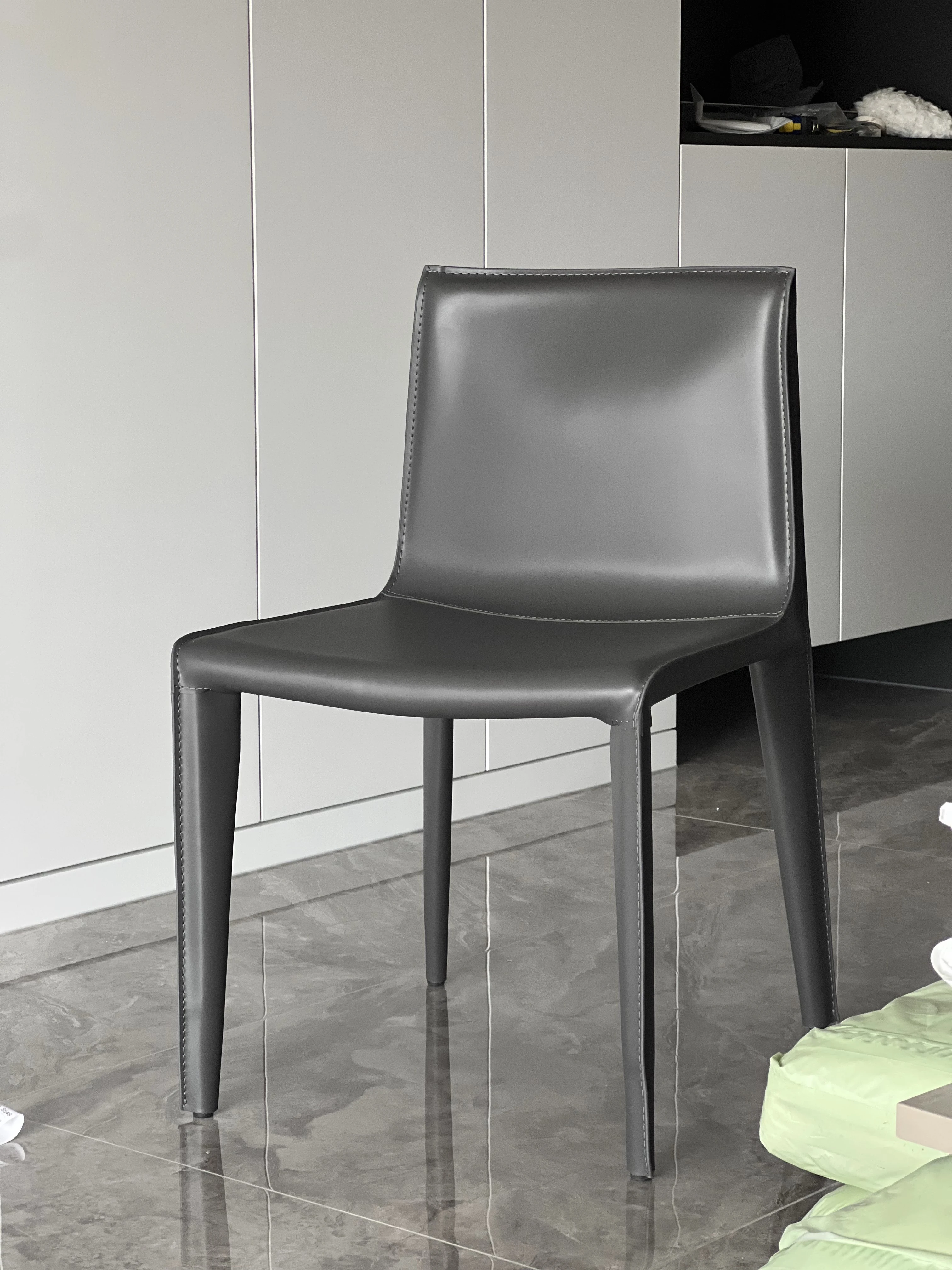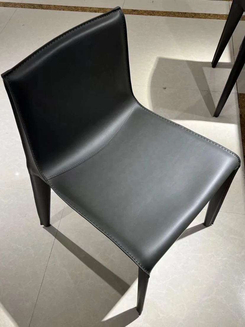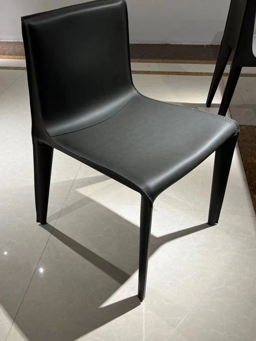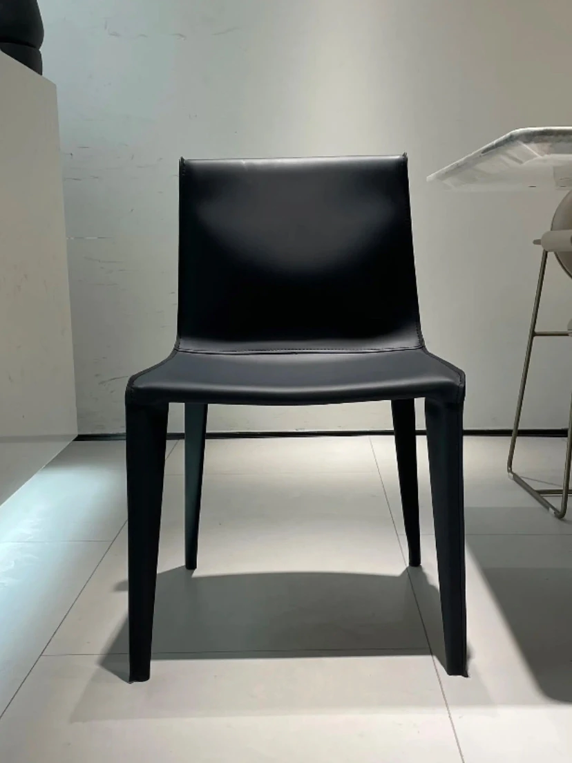 Italian Minimalist Saddle Leather Dining Chair - Modern Simple Home Restaurant Backrest Chair with Wabi-Sabi Design - Elegant and Luxurious Accent Chair for Your Dining Space