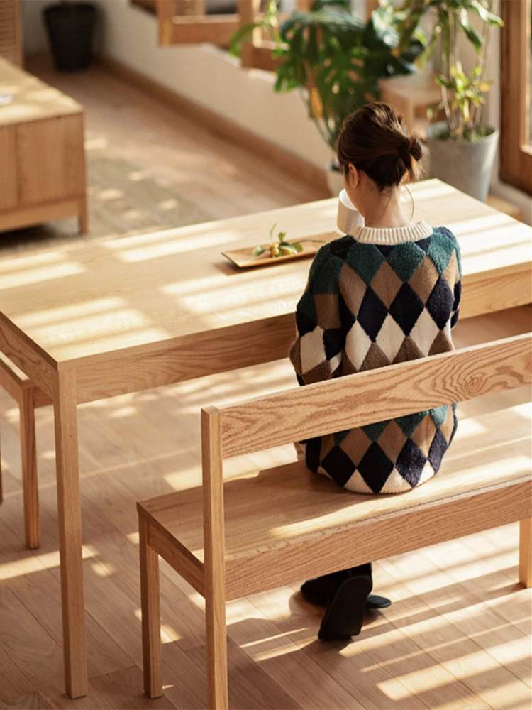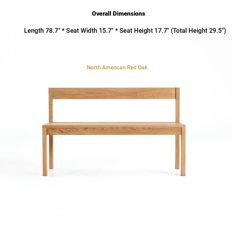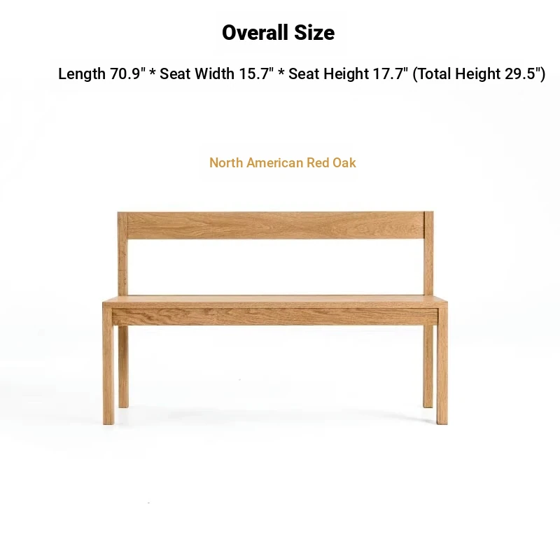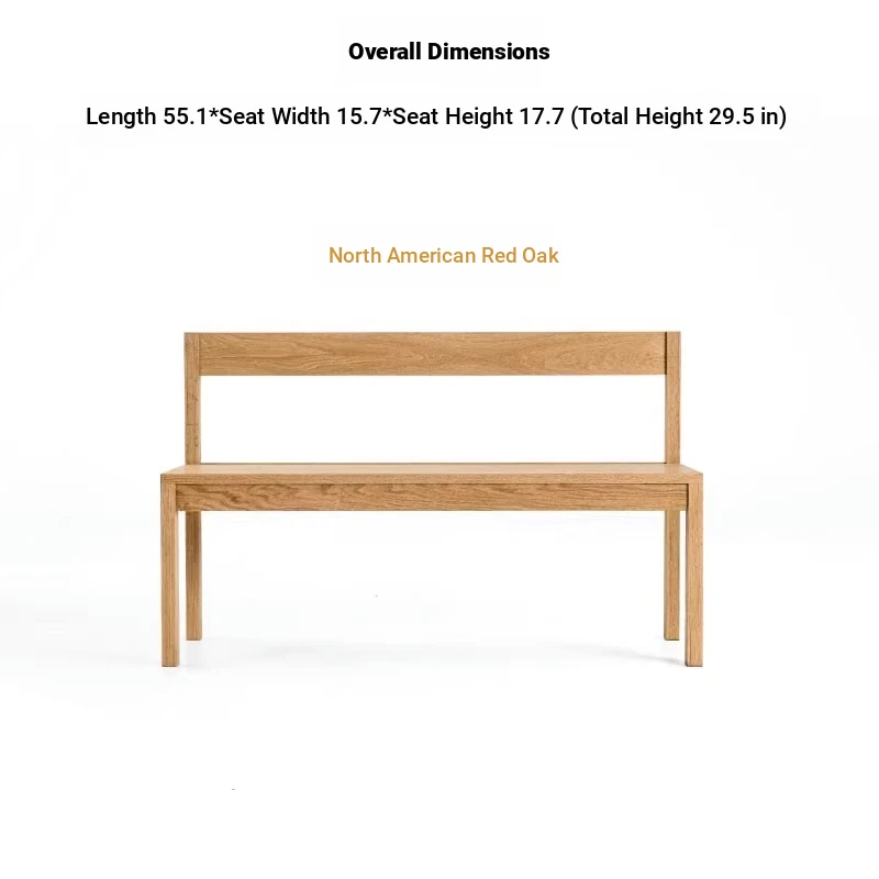 Japanese-Style Wooden Bench with Backrest - Elegant Solid Wood Loveseat in Red Oak, Cherry, and Black Walnut - Perfect for Your Home Décor!