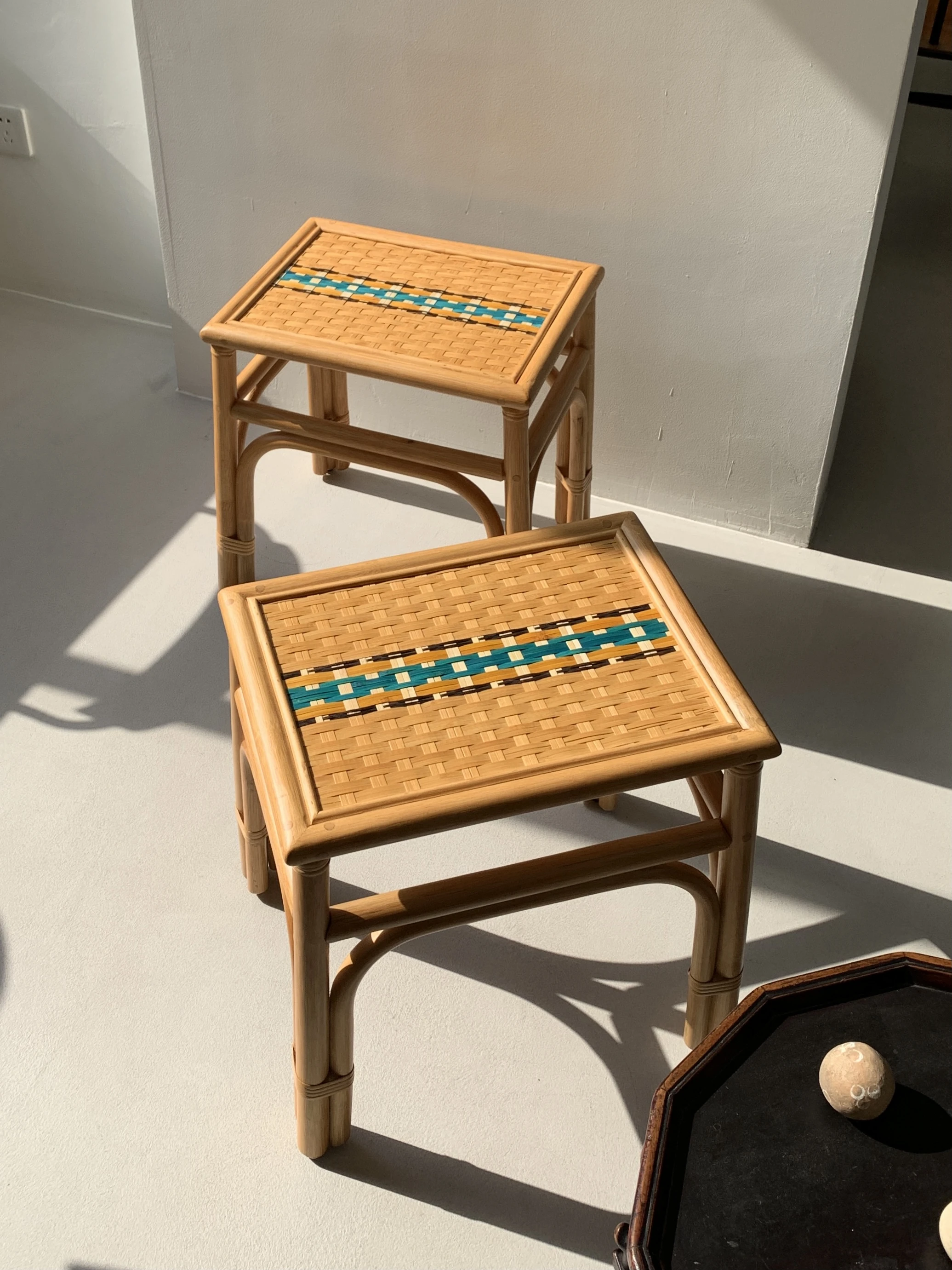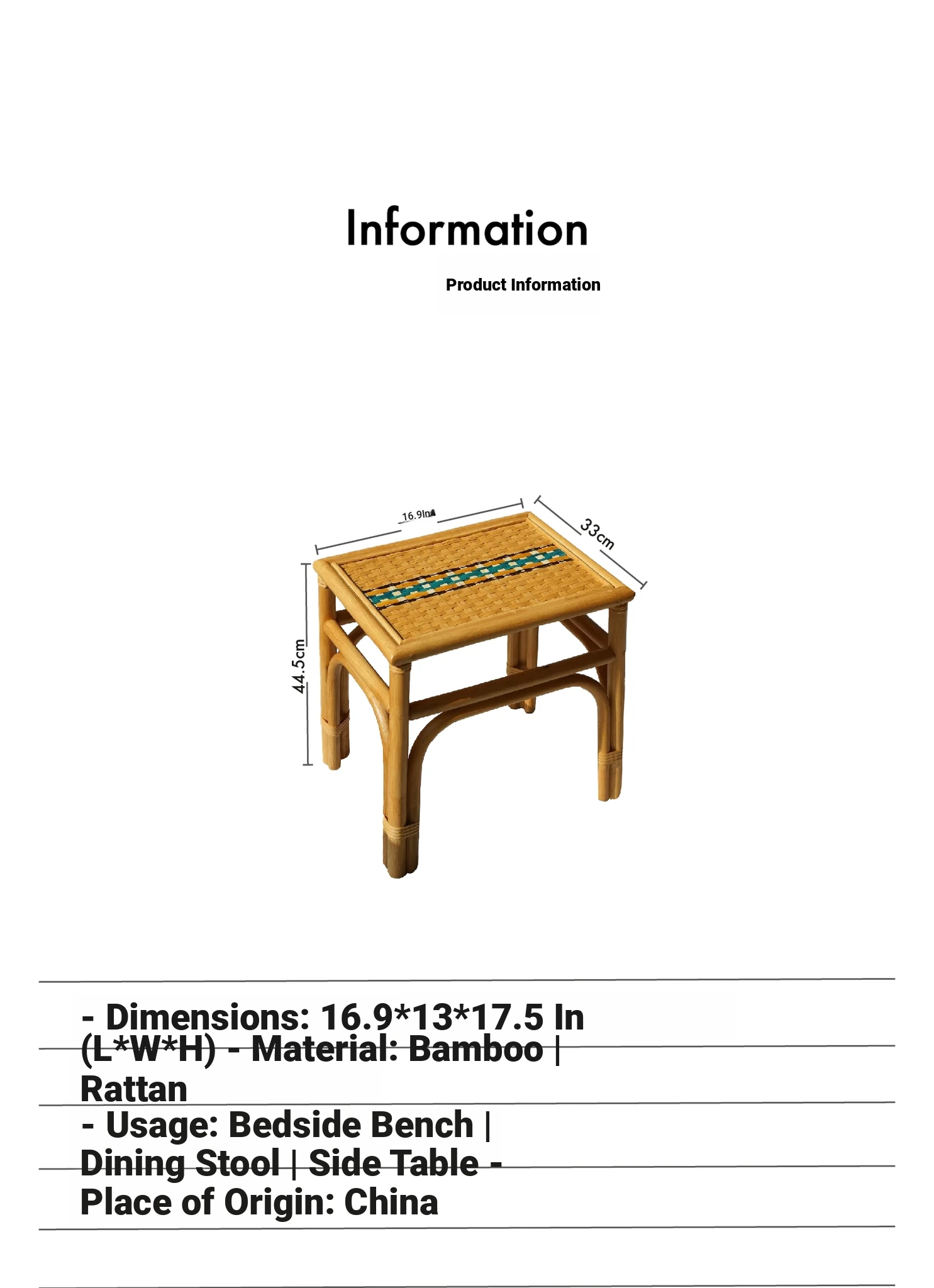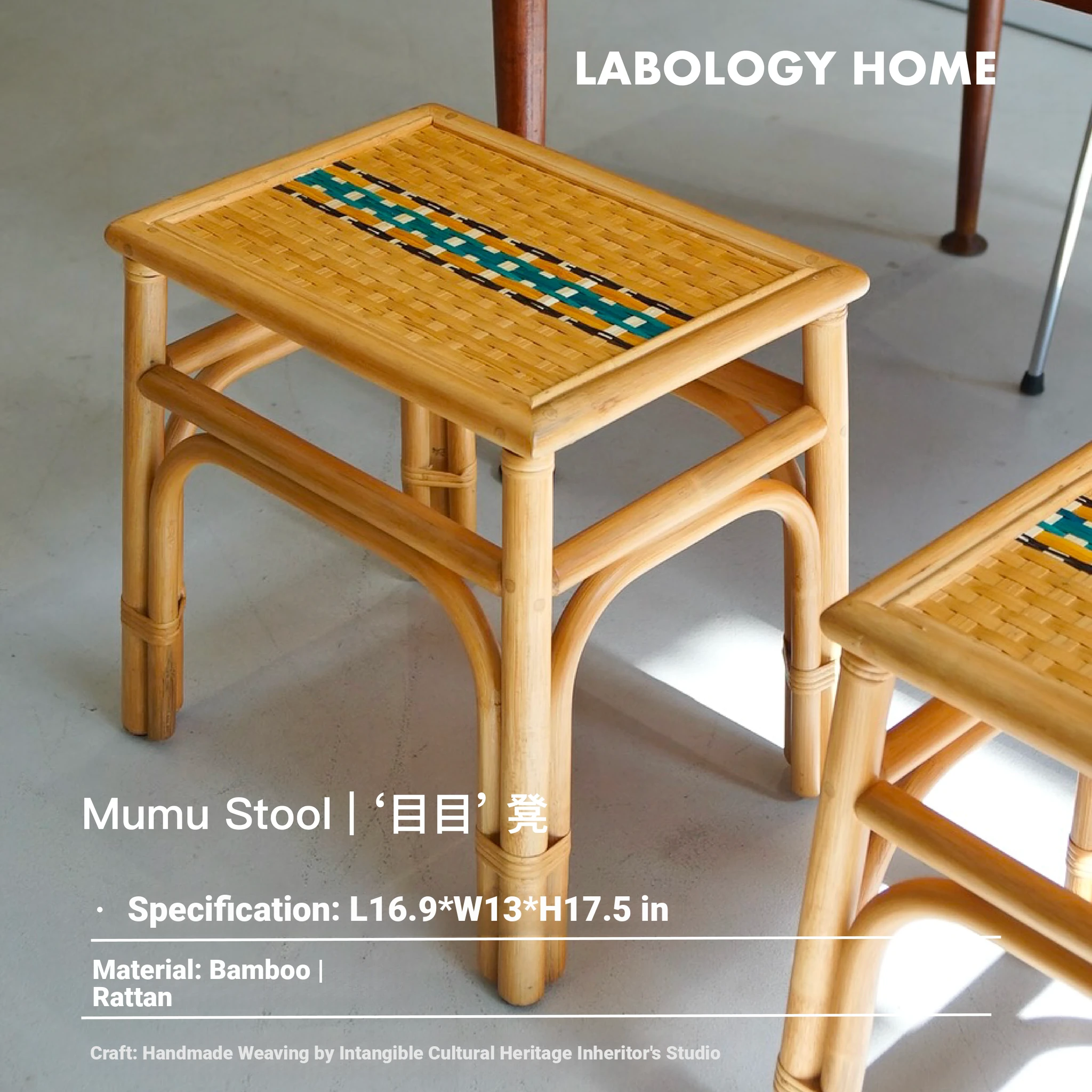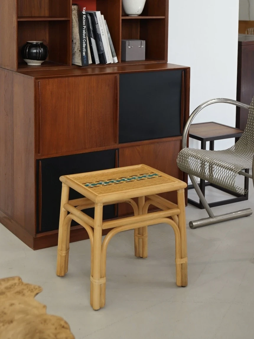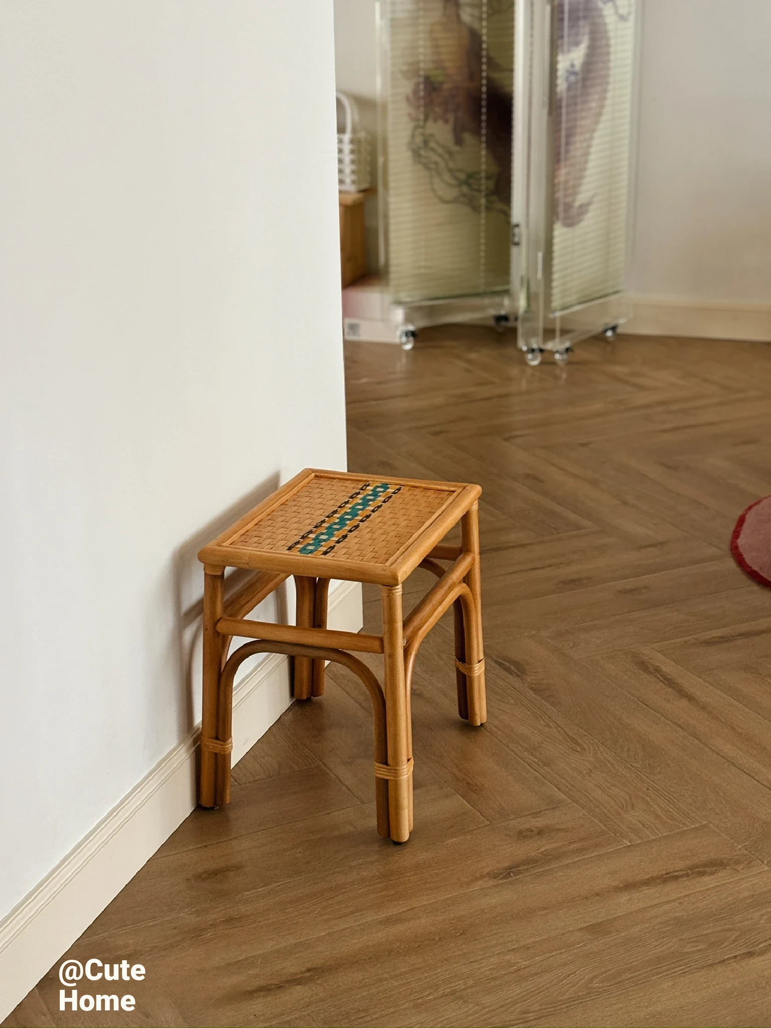 LABOLOGY HOME | Mu Mu Rattan Woven Stool - Elegant New Chinese Style Dining Chair, Bedside Stool, Sofa Side Table, Outdoor Bench