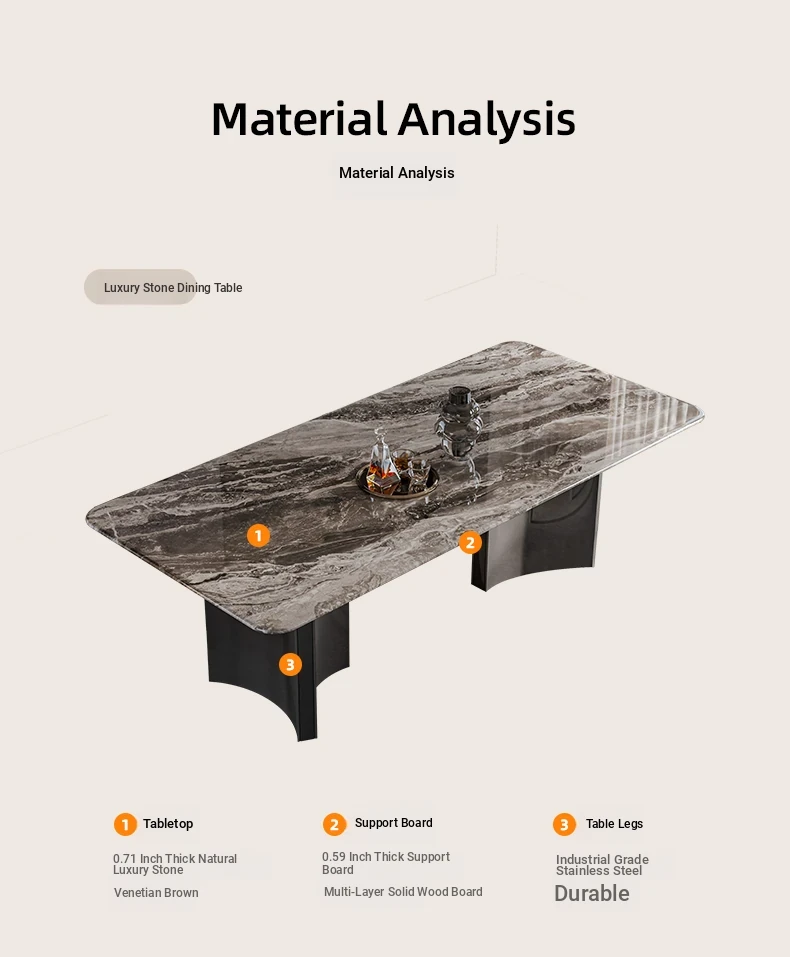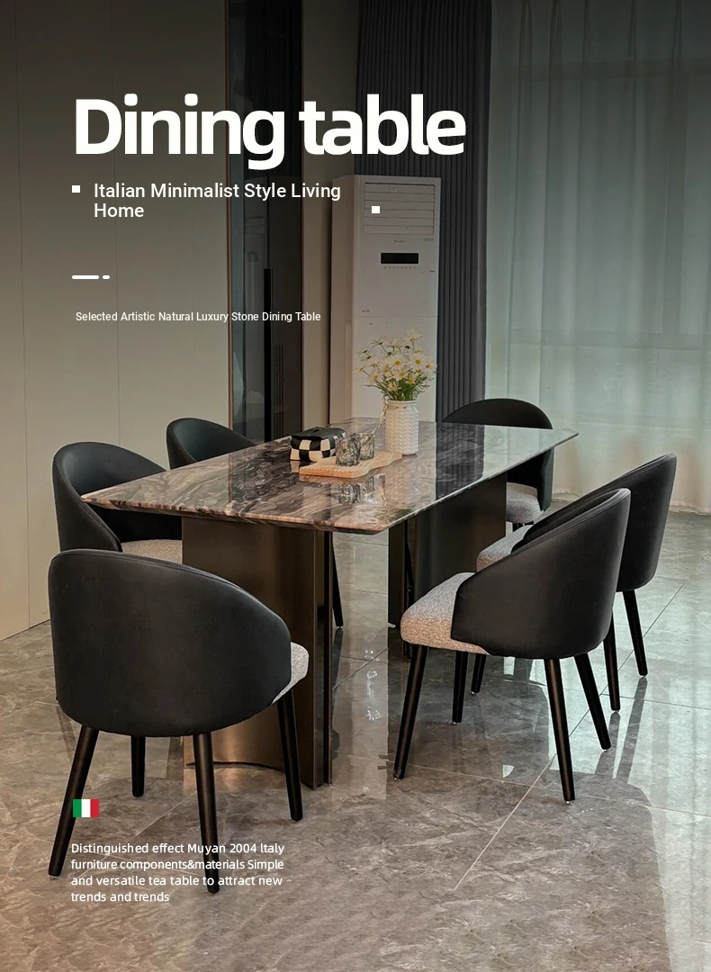 [A-level Import] Venice Brown natural luxury stone dining table + leather leather dining chair * 8