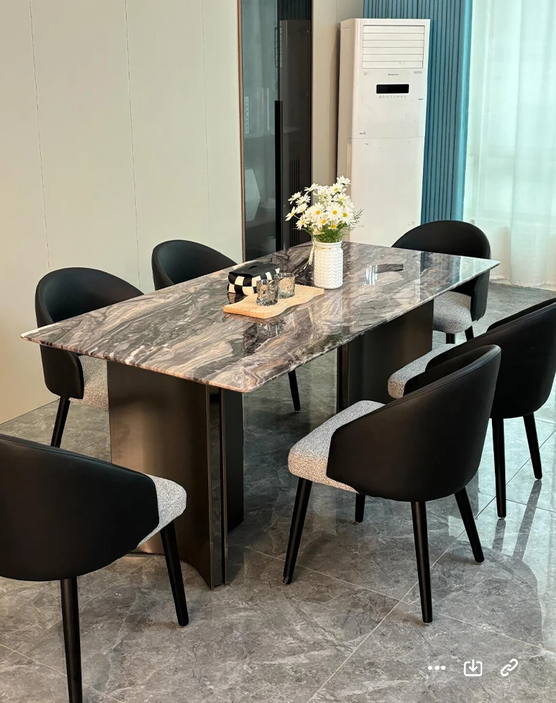 [A-level Import] Venice Brown natural luxury stone dining table + leather leather dining chair * 6