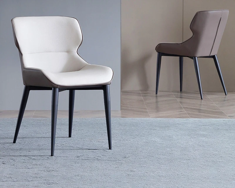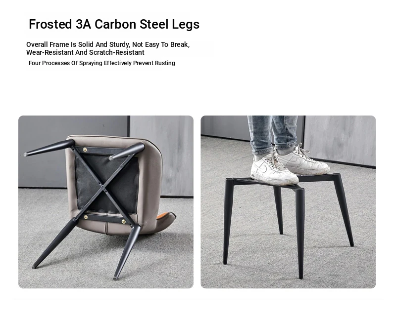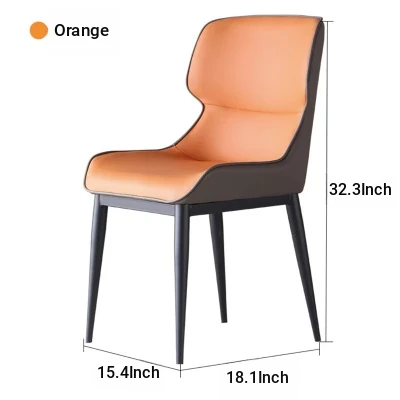 Luxurious Orange Leather Poker Chair - Stylish Carbon Steel Dining Side Chair with Backrest for Home and Hotel Use, Trendy Minimalist Design