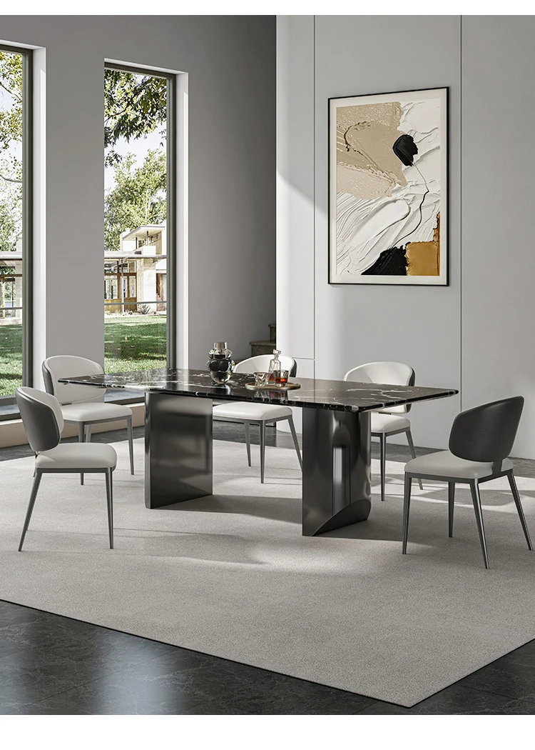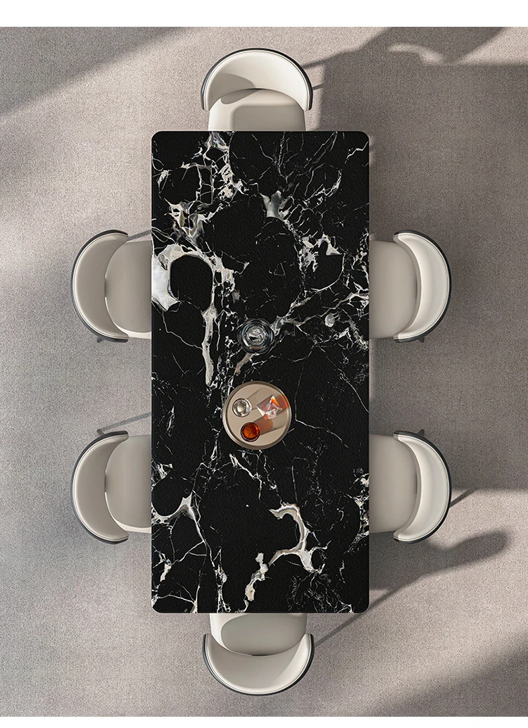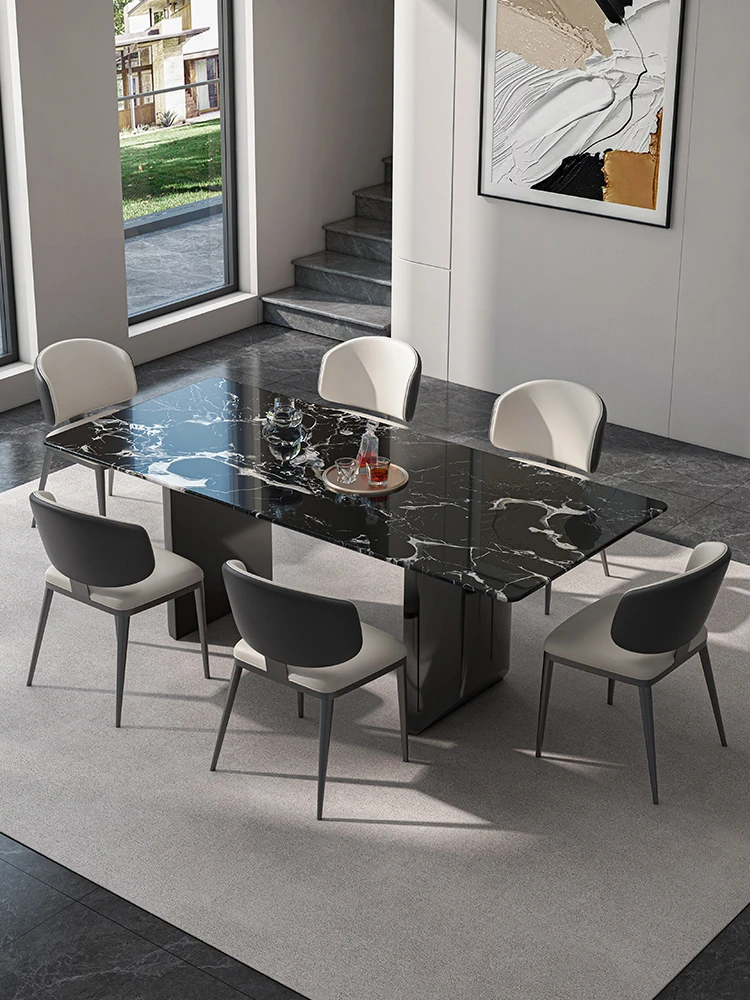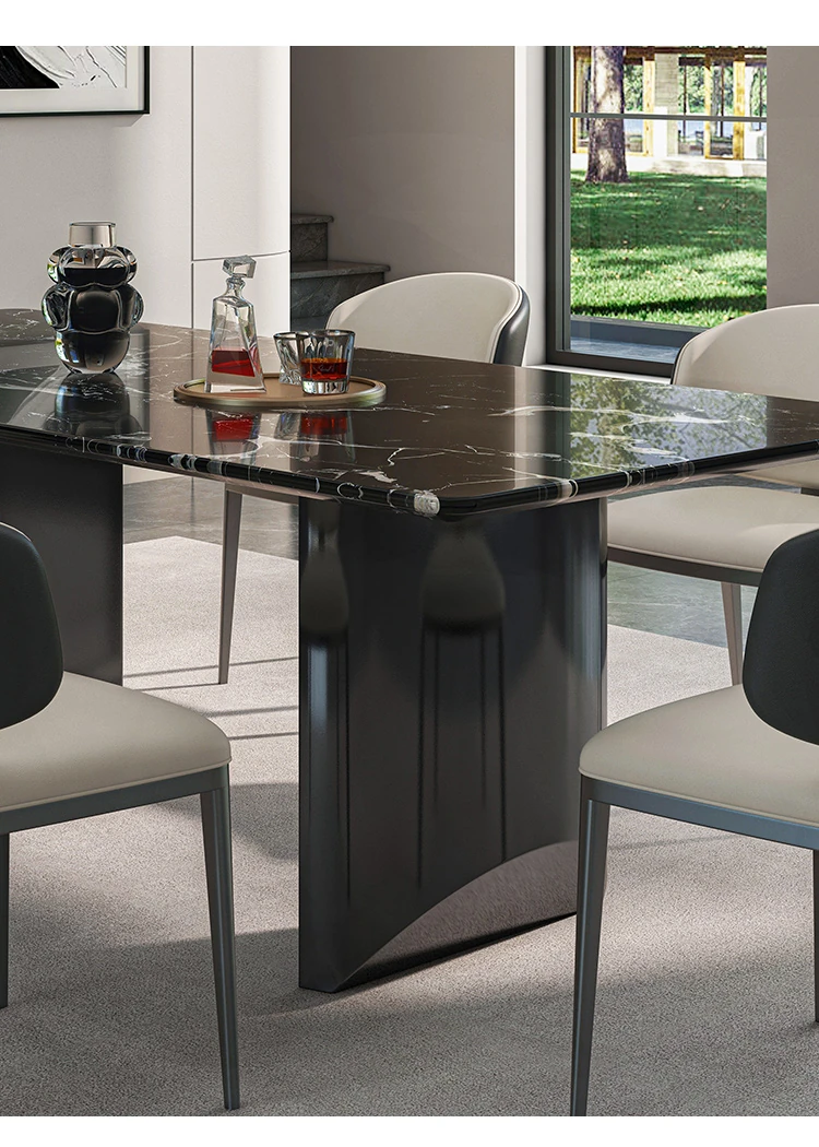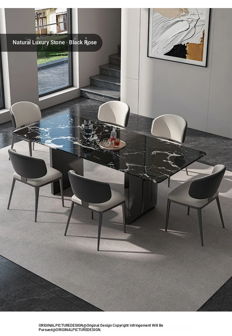 Luxury Natural Black Rose Marble Dining Table Set - Elegant Rectangular Floating Design for Home, Perfect for Upscale Dining Experiences