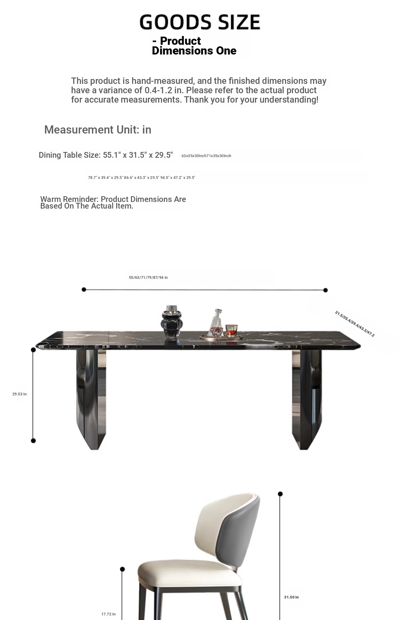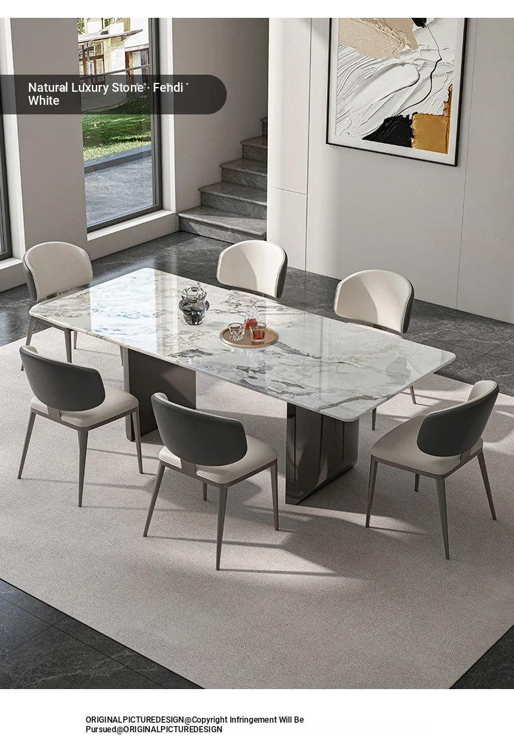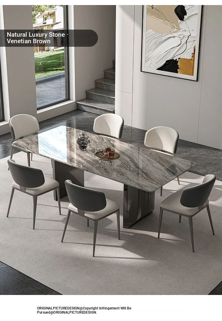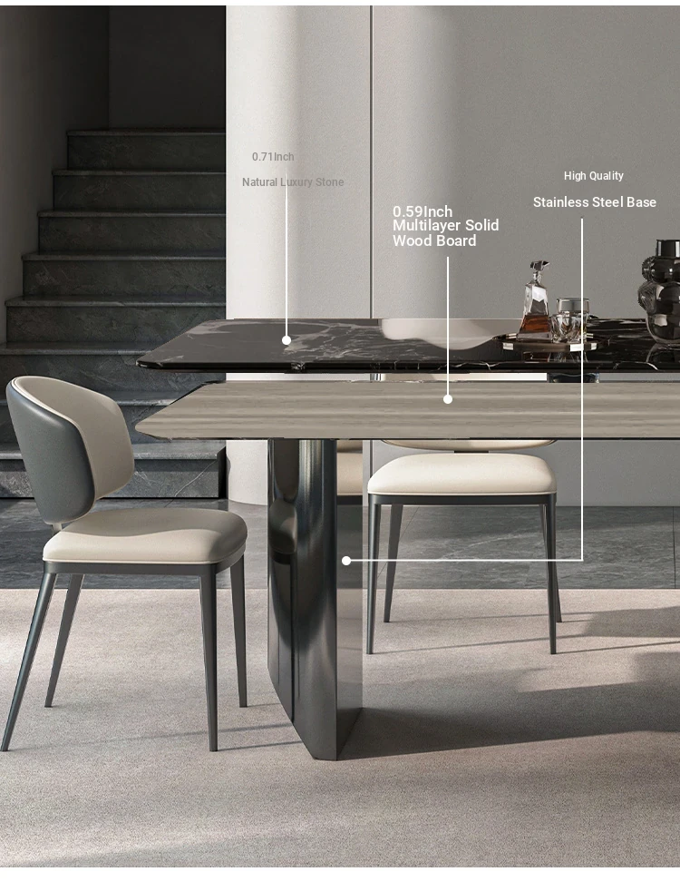 Luxury Natural Black Rose Marble Dining Table Set - Elegant Rectangular Floating Design for Home, Perfect for Upscale Dining Experiences
