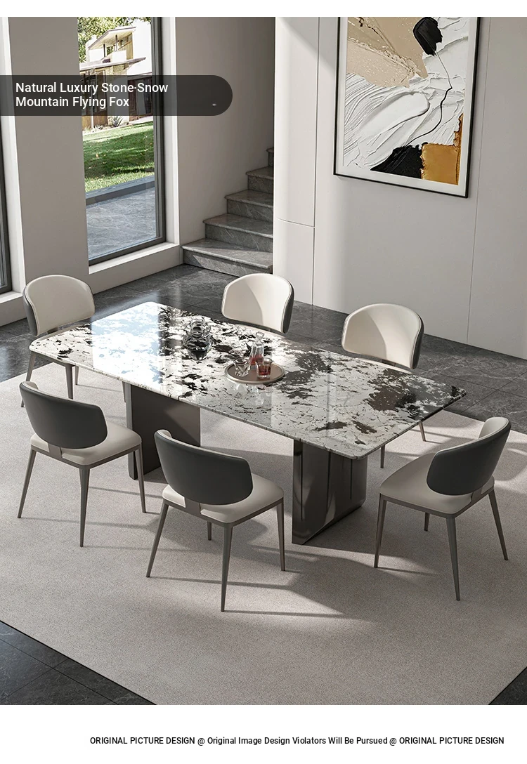Black Rose Natural Luxury Stone Dining Table + Dining Chair * 6