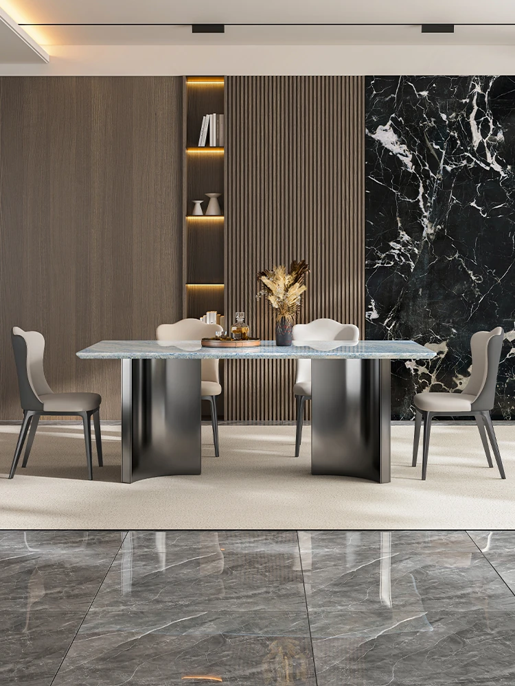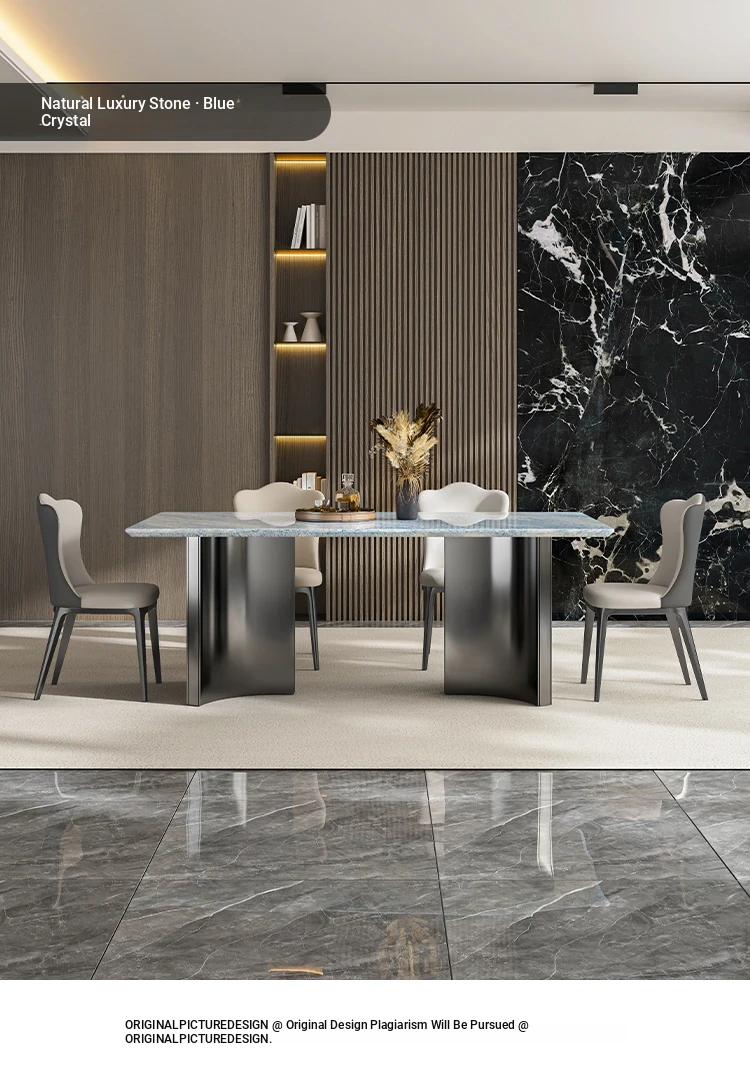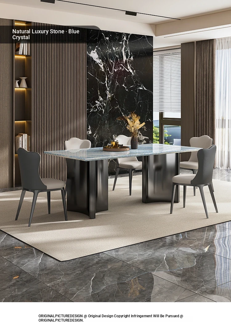 Luxury Natural Blue Crystal Dining Table - Designer Rectangular Marble Table Set for Elegant Villas, Perfect for Home Use.