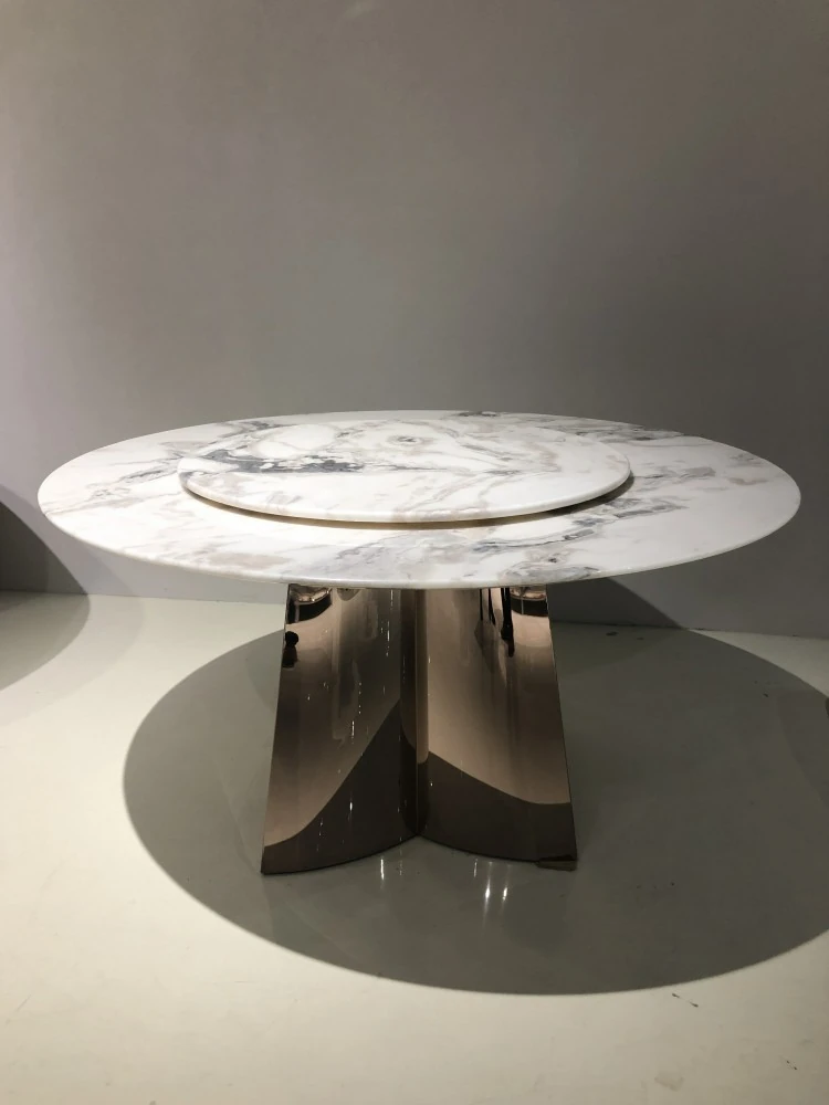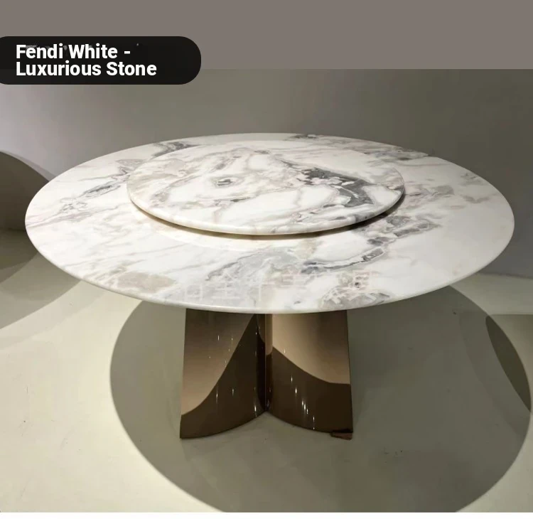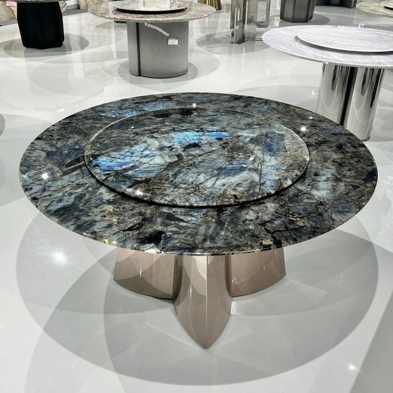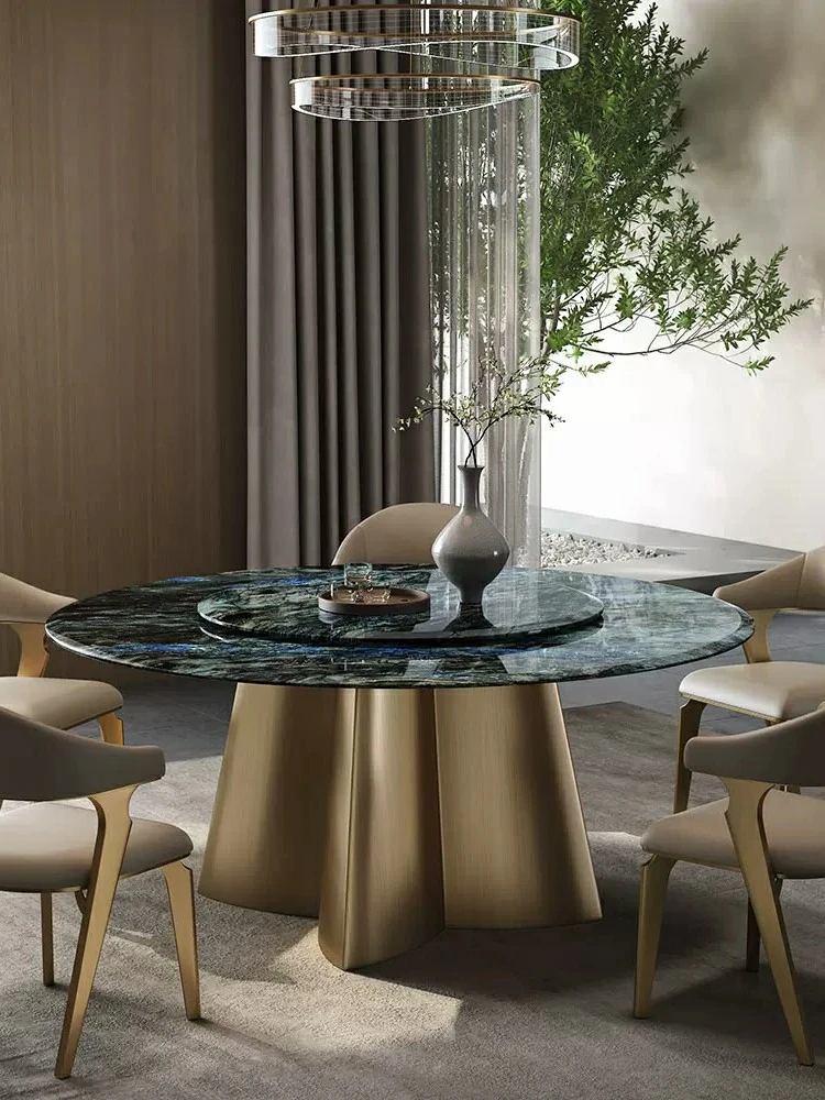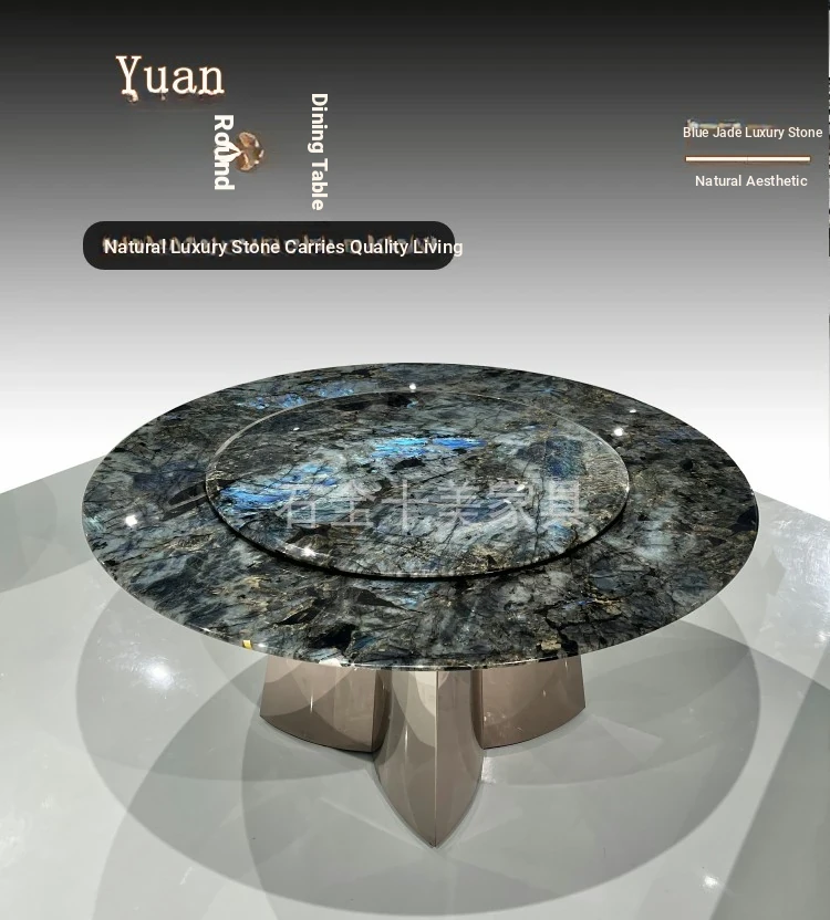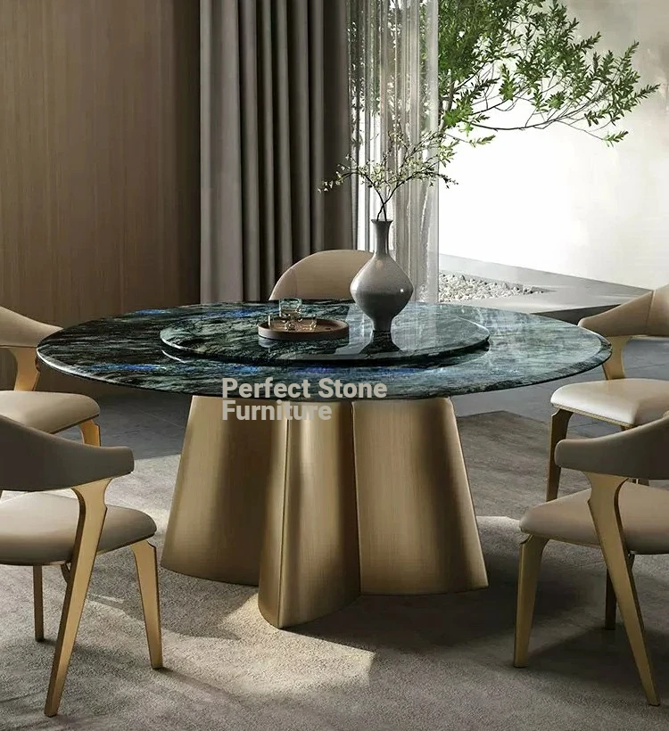 Luxury Natural Blue Jade Round Marble Dining Table with Lazy Susan – Elegant and High-End Design for Villas and Home Use