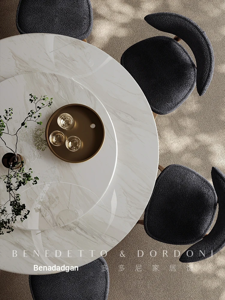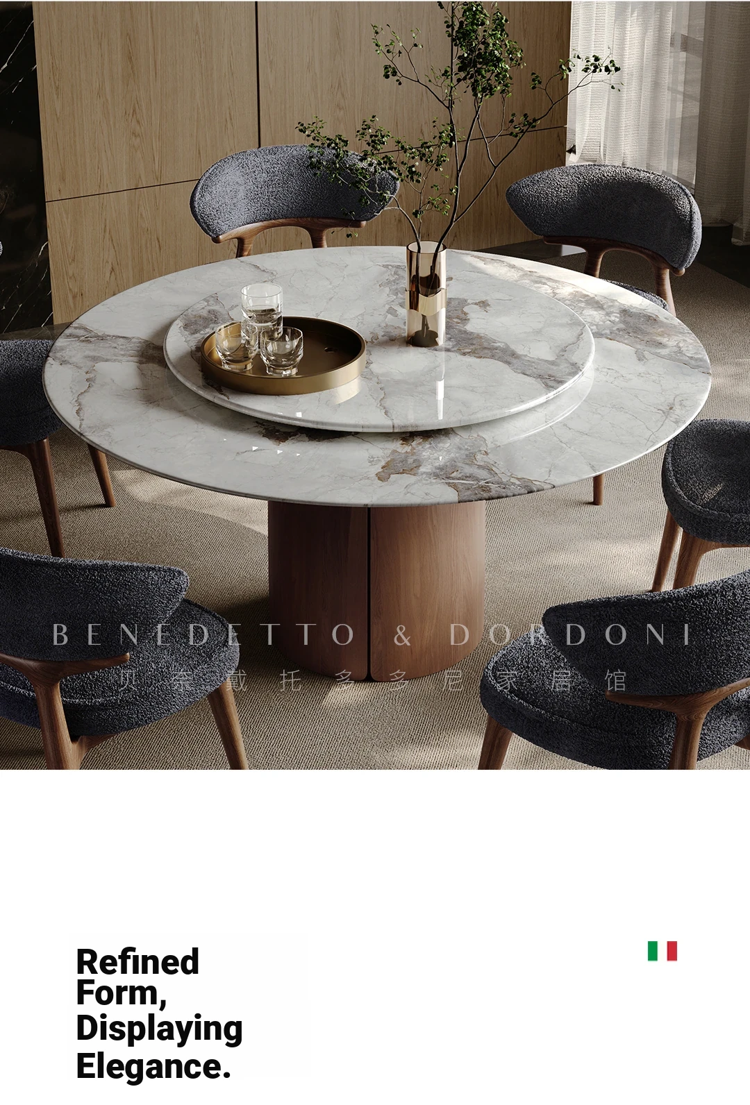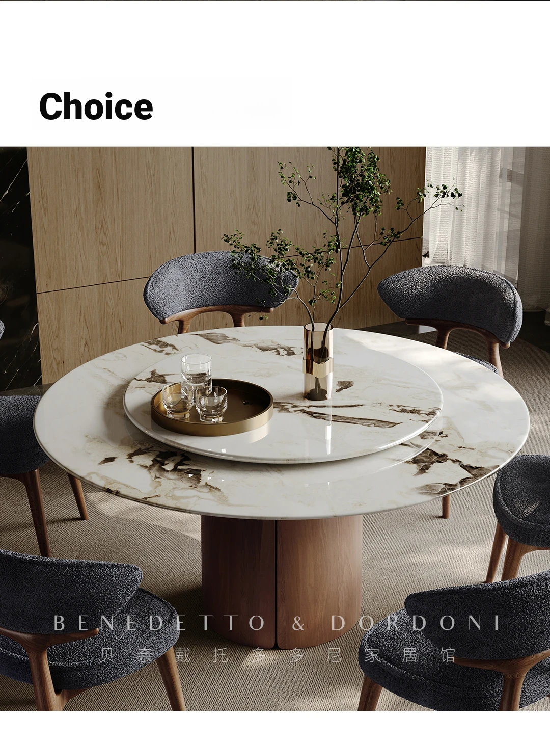 Luxury Round Marble Dining Table with Turntable - Designer Wabi-Sabi Style, Premium Solid Wood, Italian Minimalist Design for Home Use