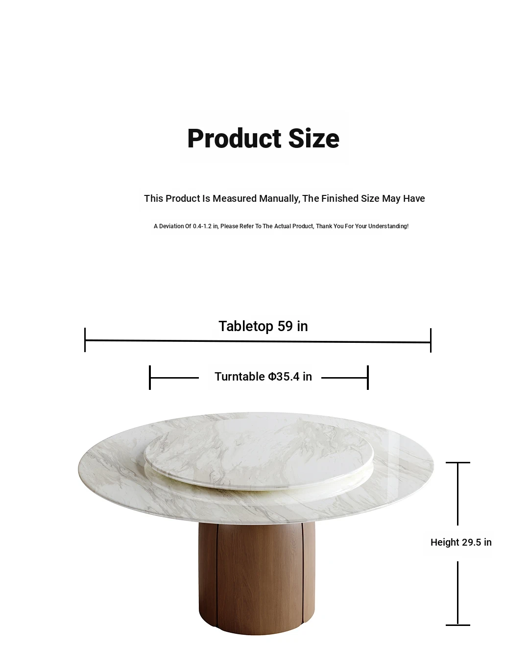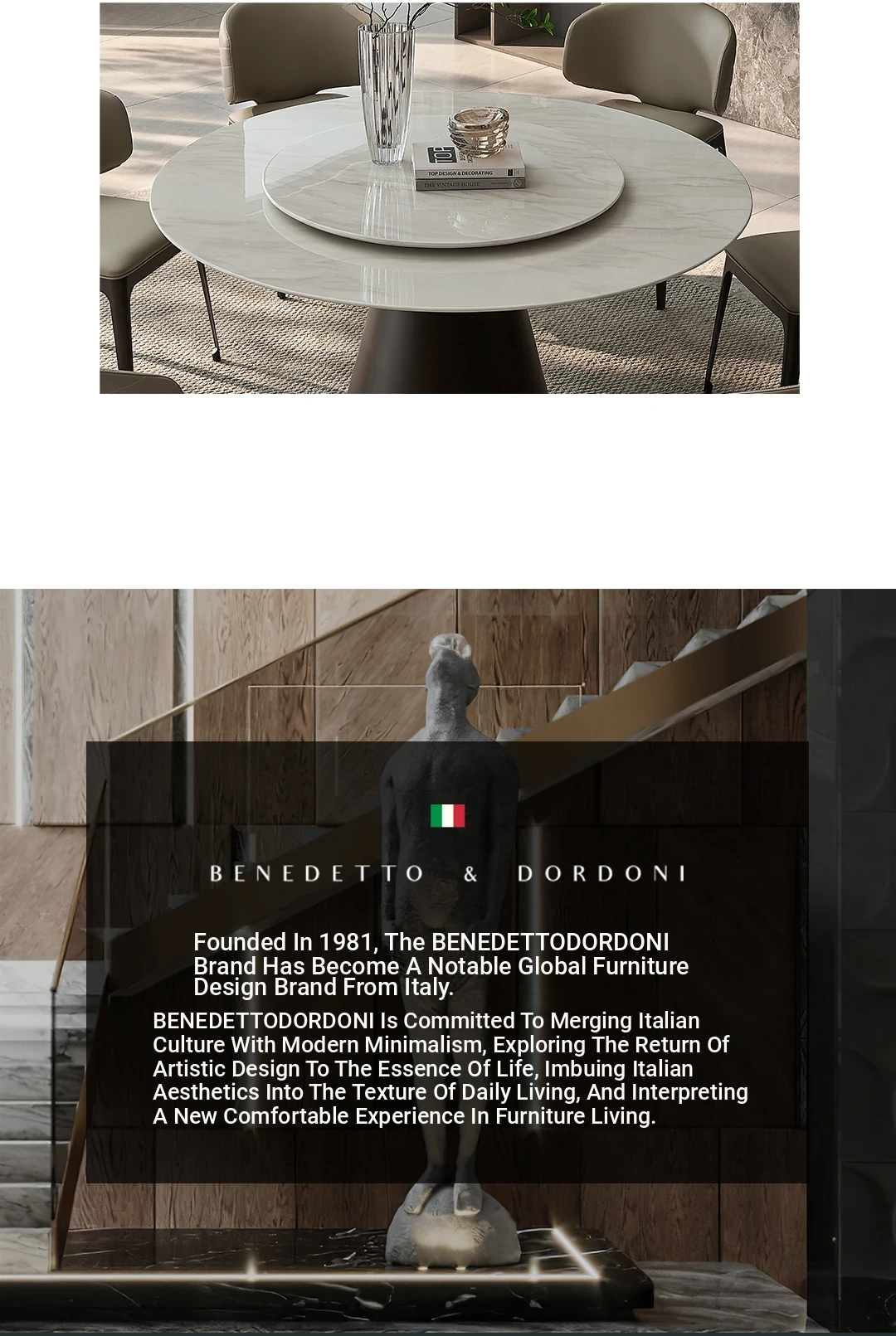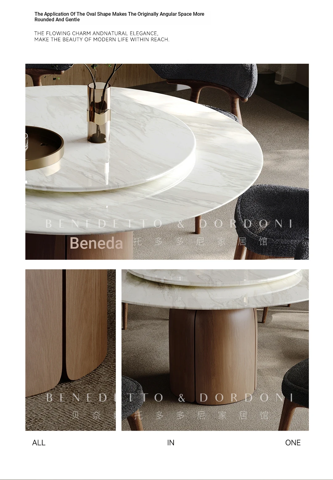 Luxury Round Marble Dining Table with Turntable - Designer Wabi-Sabi Style, Premium Solid Wood, Italian Minimalist Design for Home Use