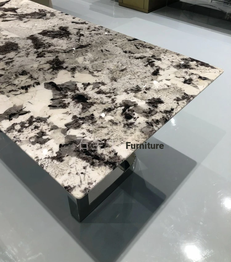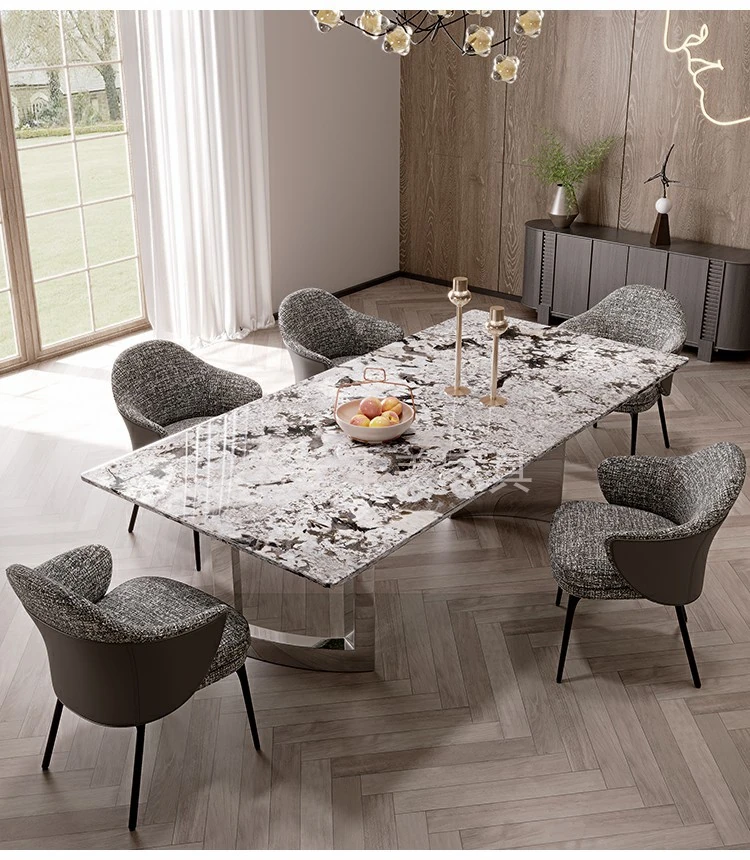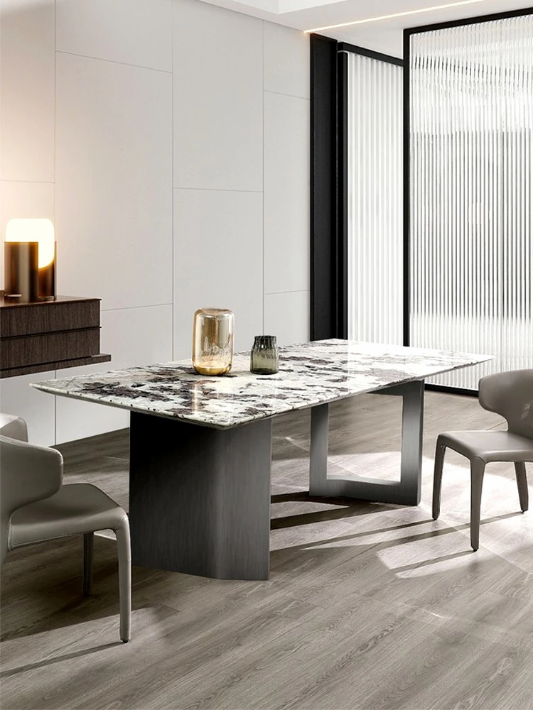 Luxury Snow Mountain Blue Natural Marble Dining Table - Elegant Rectangular Design for Villas and Home Use, Perfect for Upscale Dining Experiences