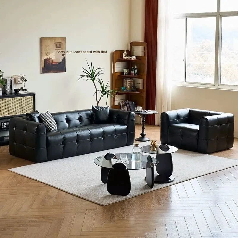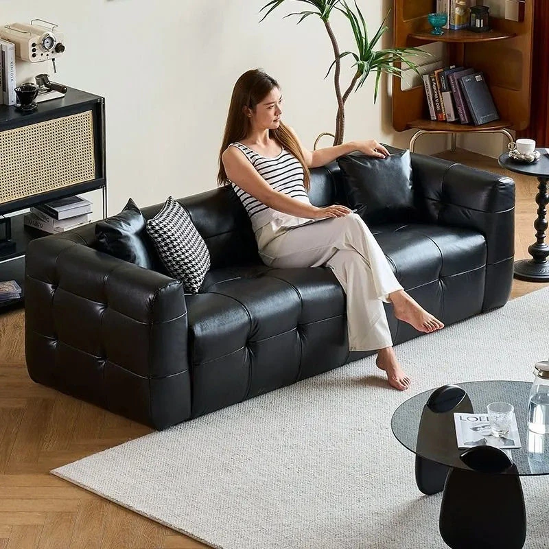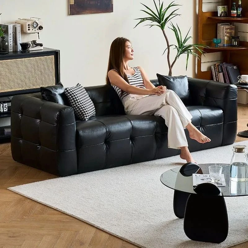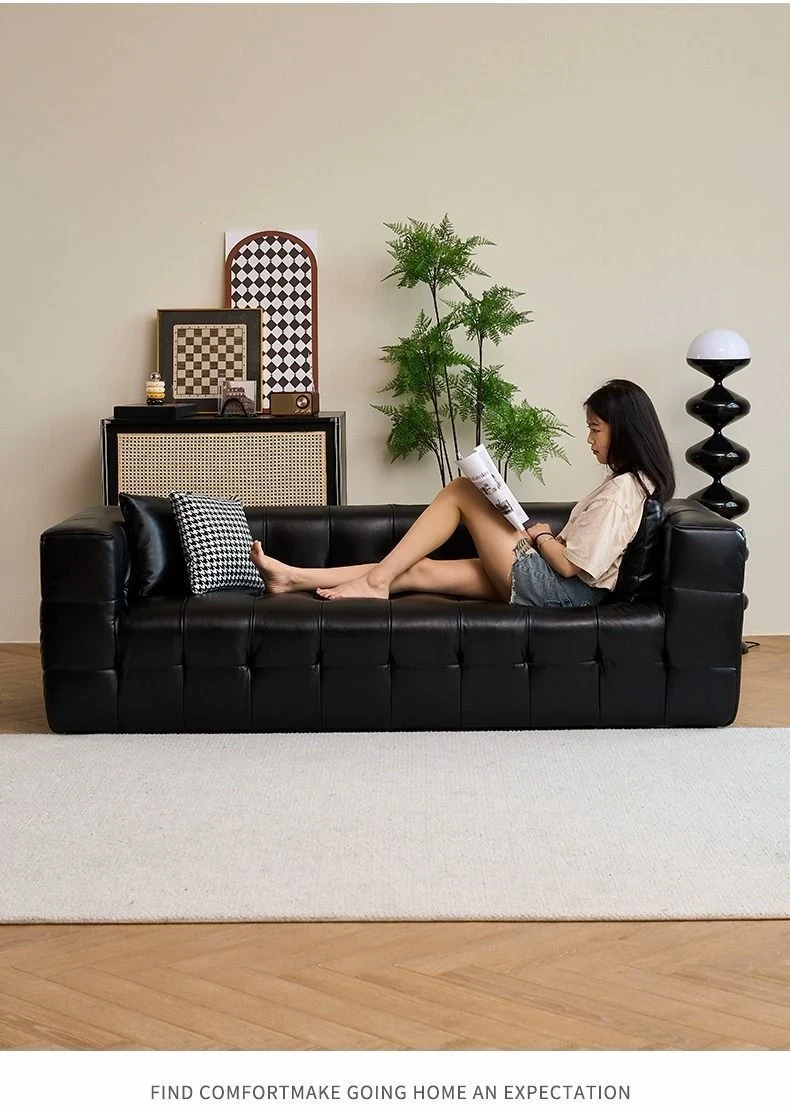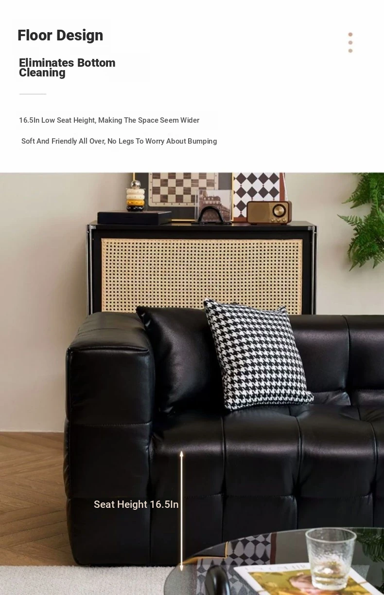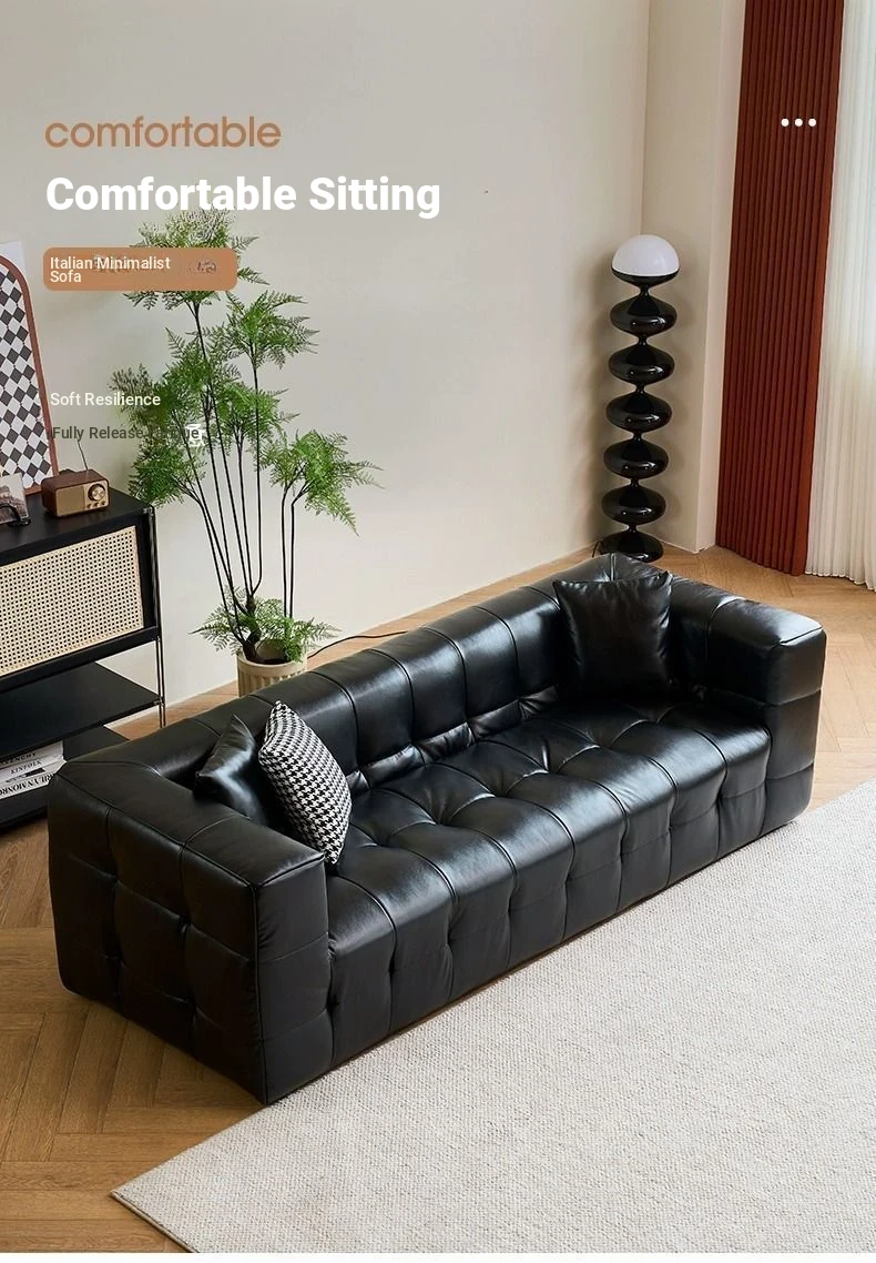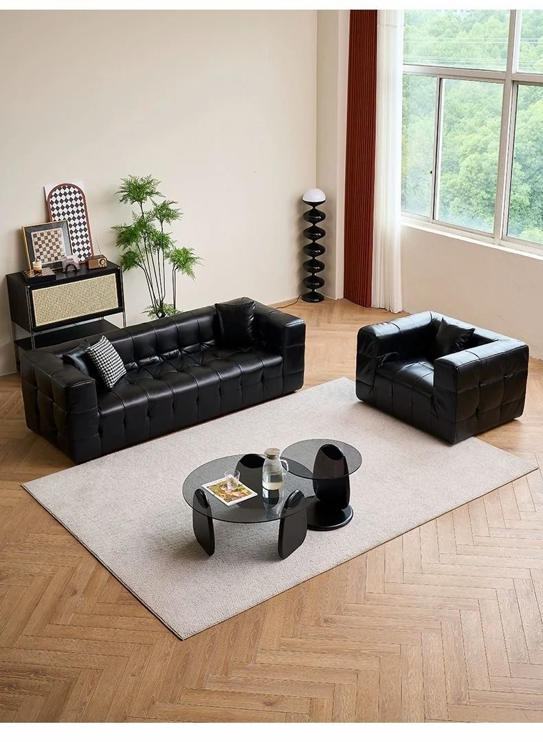 Modern Italian Minimalist Black Leather Sofa Set for Small Living Rooms - Stylish and Compact Cat Claw-Friendly Design for Cozy Spaces
