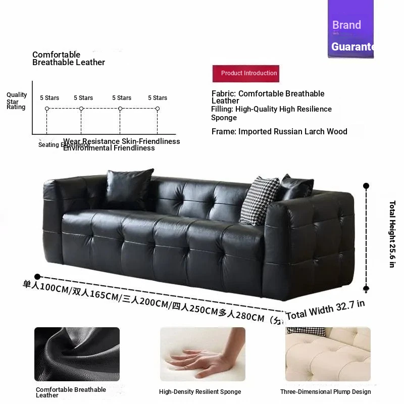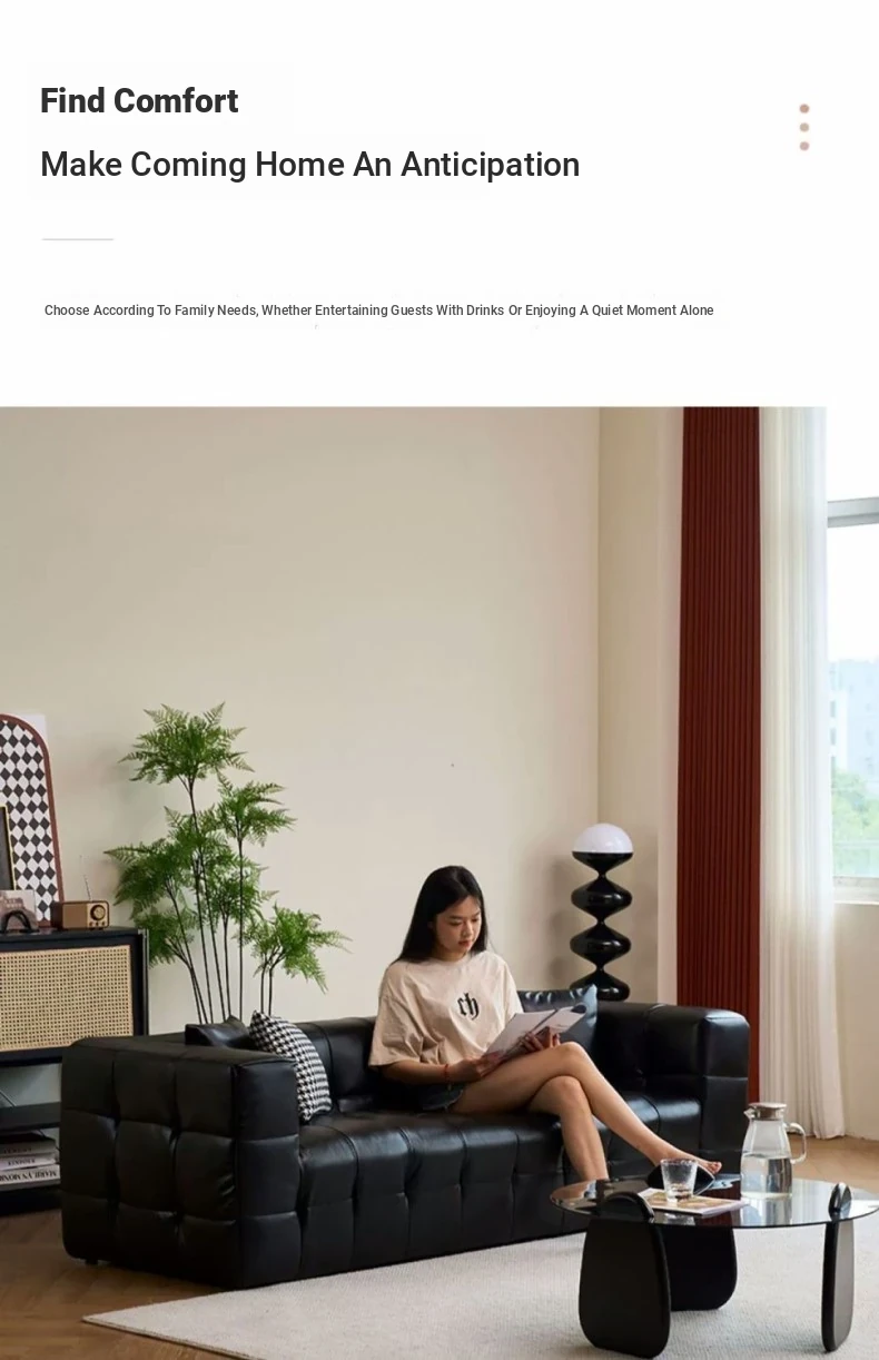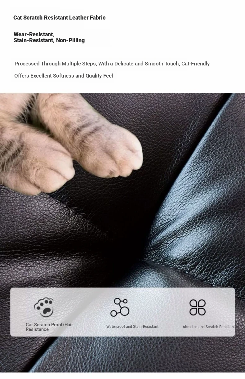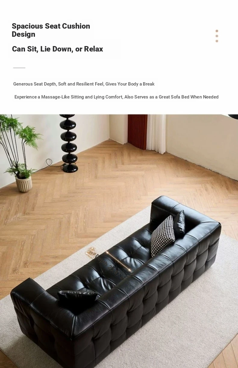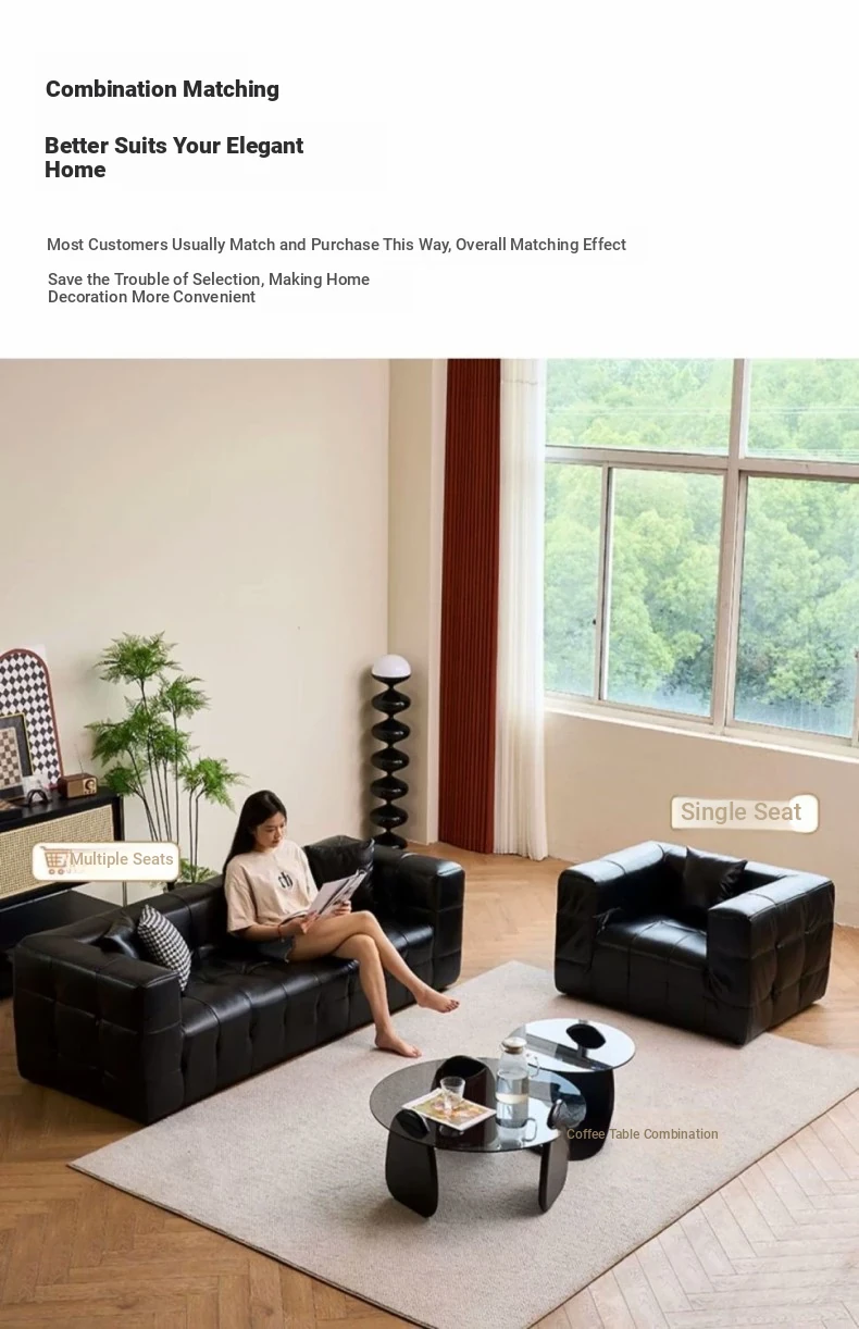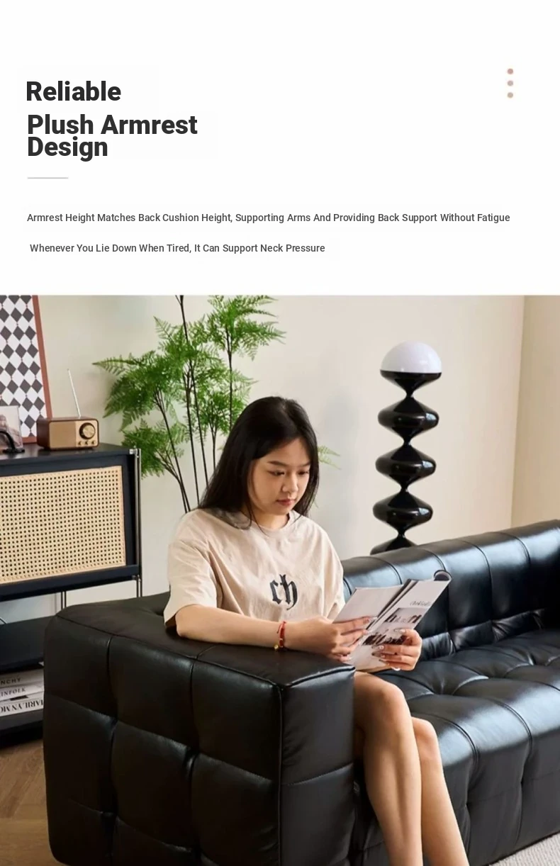 Modern Italian Minimalist Black Leather Sofa Set for Small Living Rooms - Stylish and Compact Cat Claw-Friendly Design for Cozy Spaces