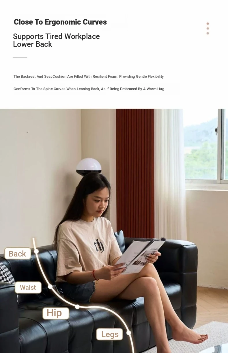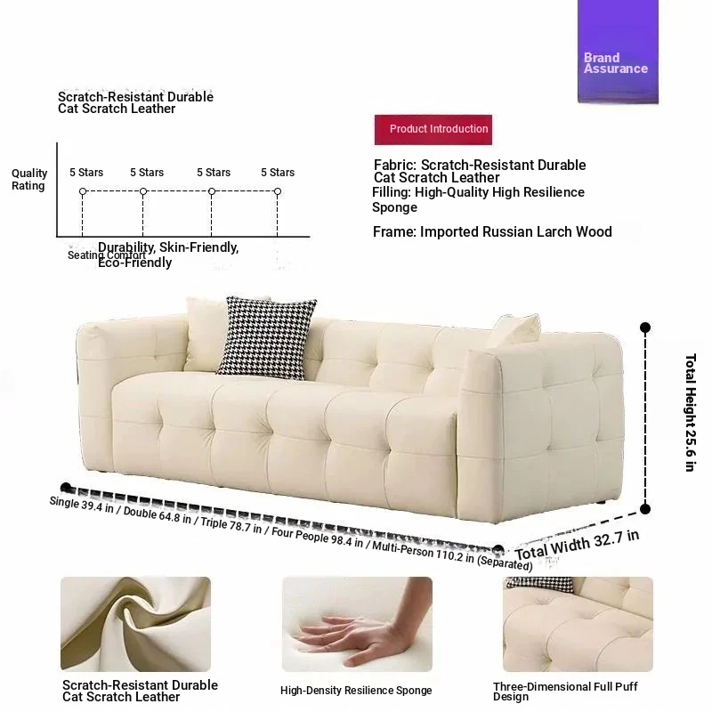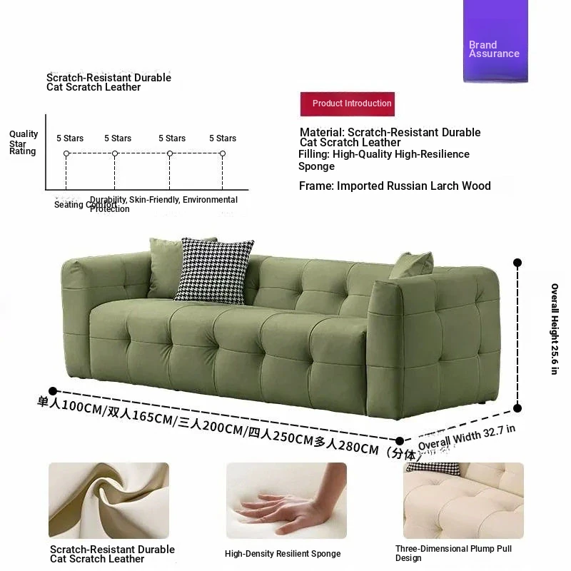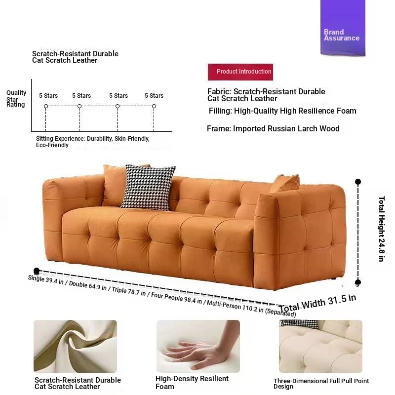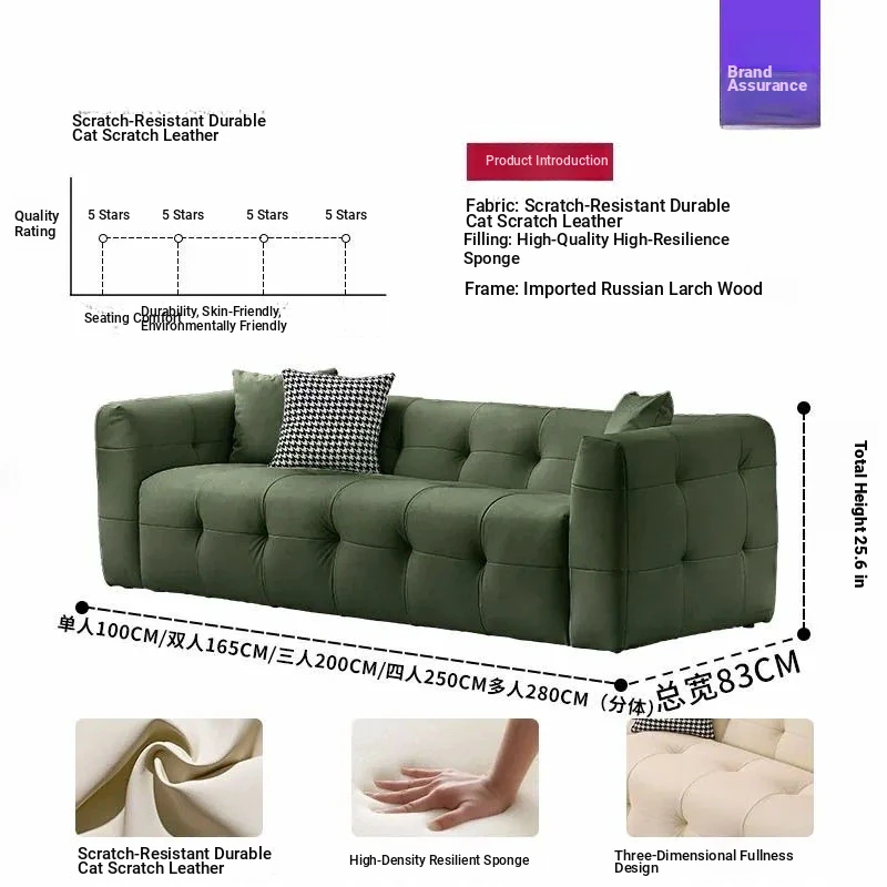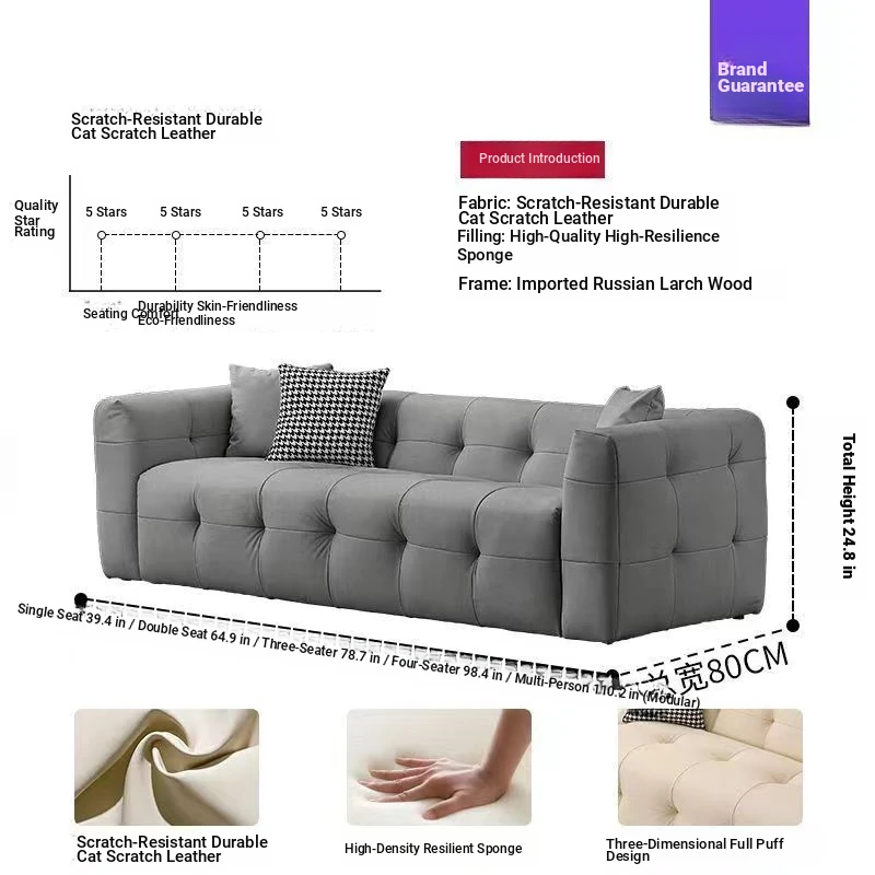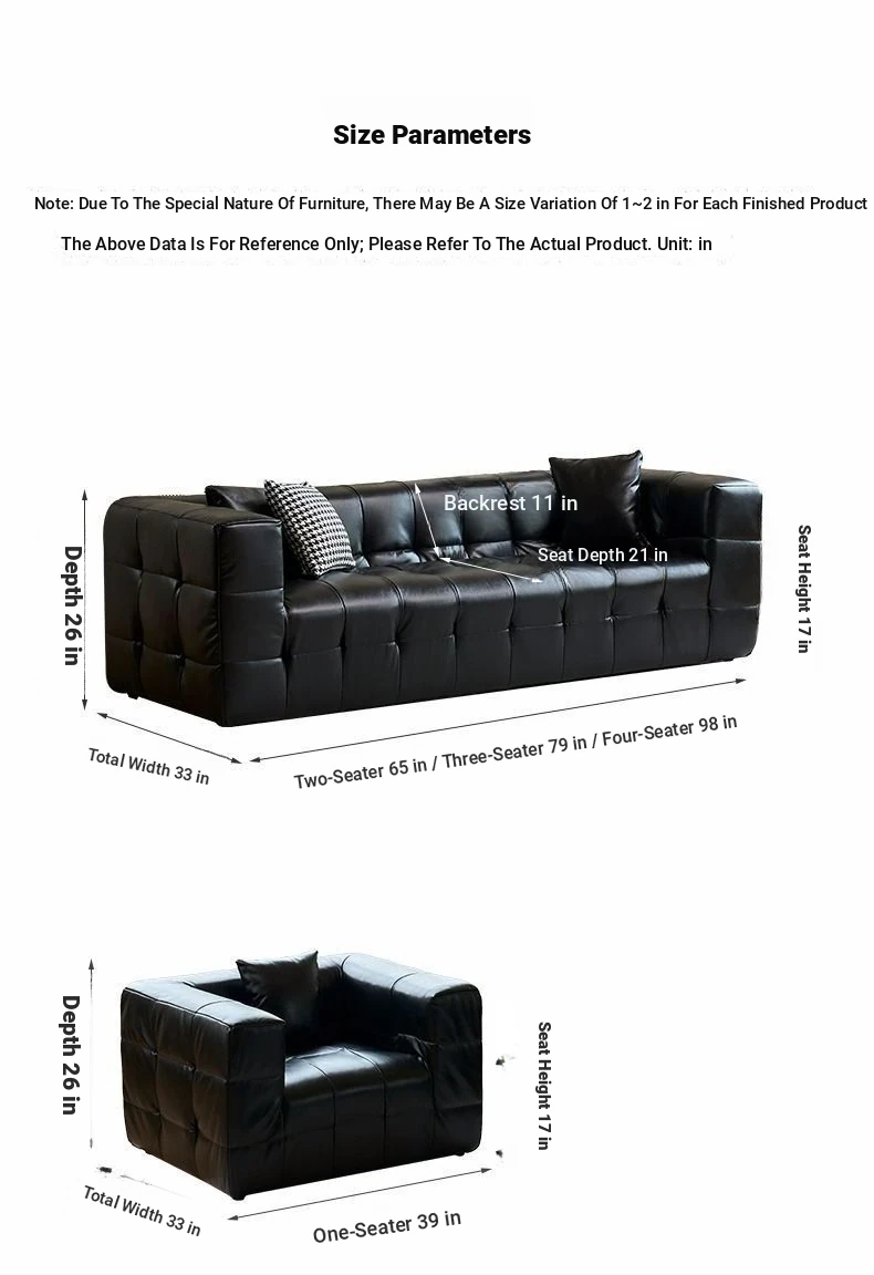 Modern Italian Minimalist Black Leather Sofa Set for Small Living Rooms - Stylish and Compact Cat Claw-Friendly Design for Cozy Spaces