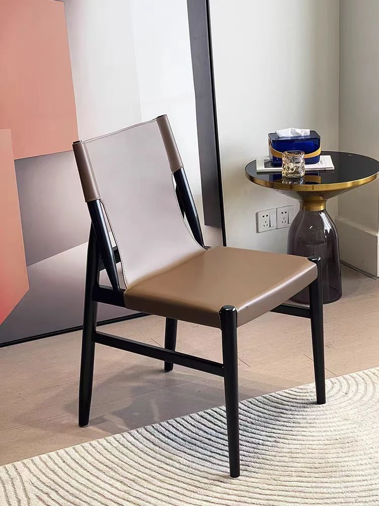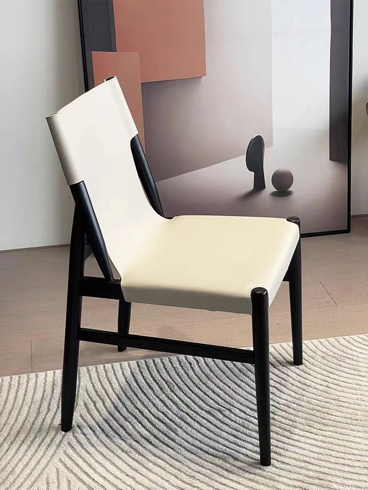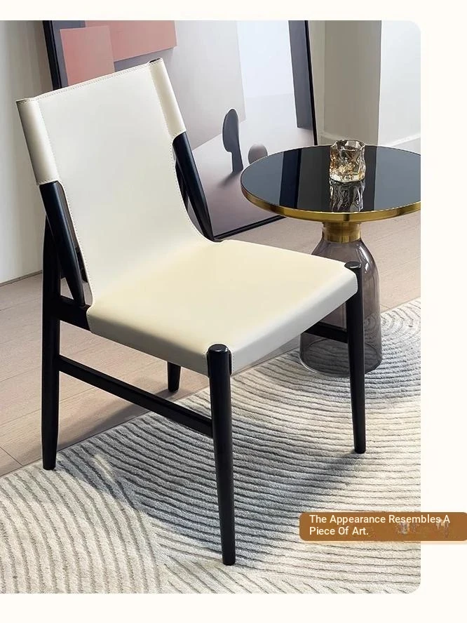 Modern Leather Dining Chair with Backrest - Elegant and Luxurious Design for Home Use, High-End Hotel Guest Seating, and Stylish Lounge Meetings - Trendy and Comfortable Chair