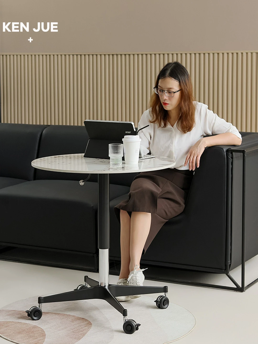 Modern Minimalist Adjustable Lift Coffee Table - Versatile Small Round Dining Table, Perfect for Balconies, Cafés, and Meetings. Elevate Your Space with Style!