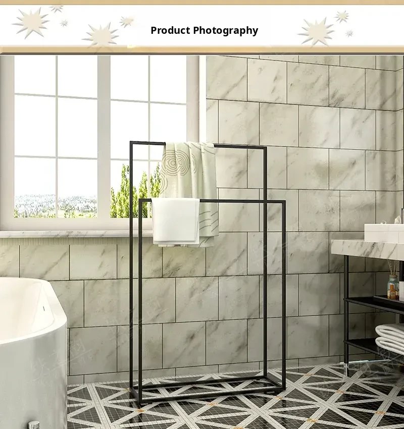 Modern Minimalist Iron Towel Rack - Floor-standing Bath Towel Holder for Bathroom, Perfect for Hanging Clothes and Drying in Bedroom and Living Room