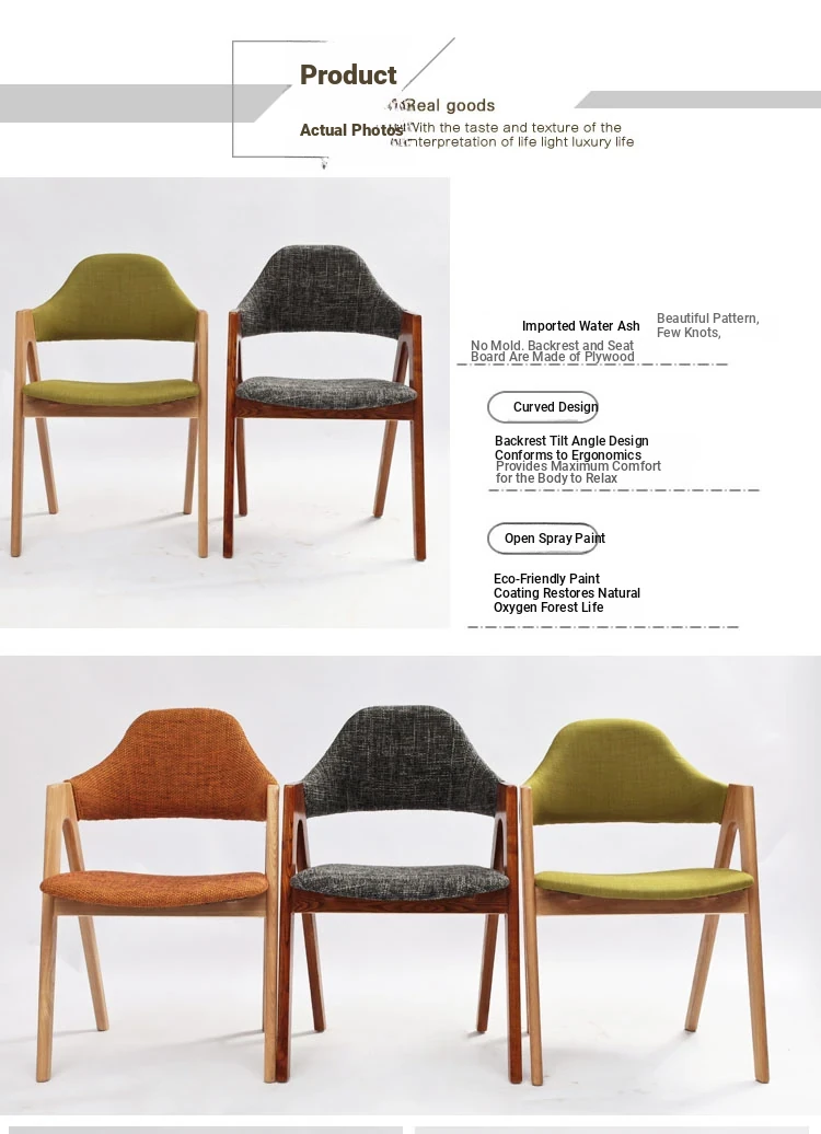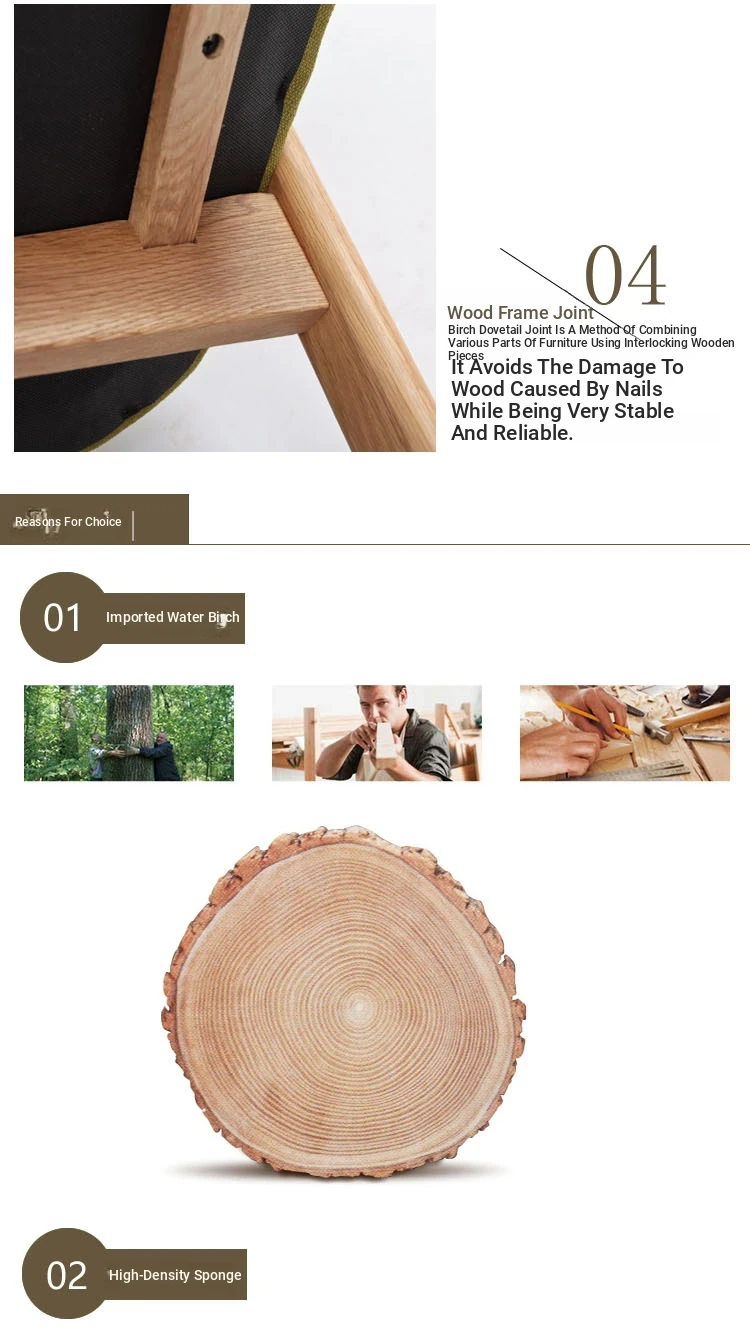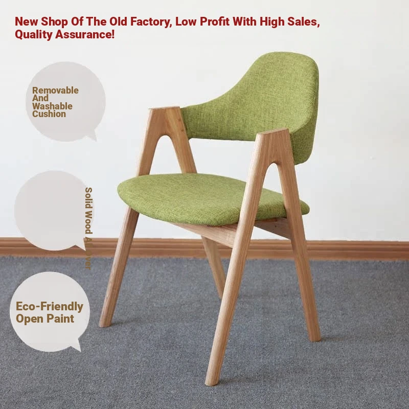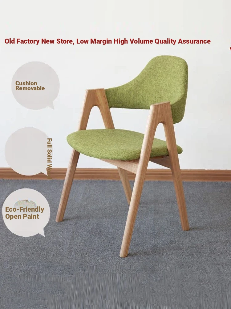 Modern Minimalist Japanese Solid Wood Dining Chair - High-End Upholstered Armchair for Home and Café Use, Natural Finish