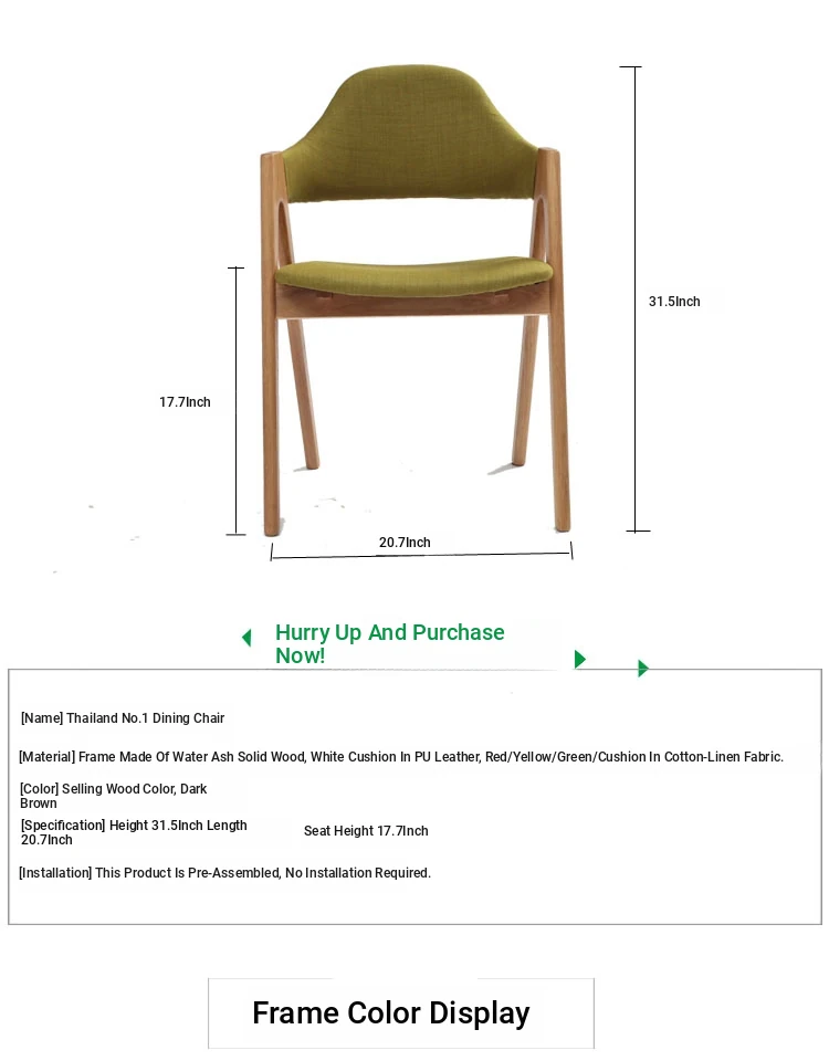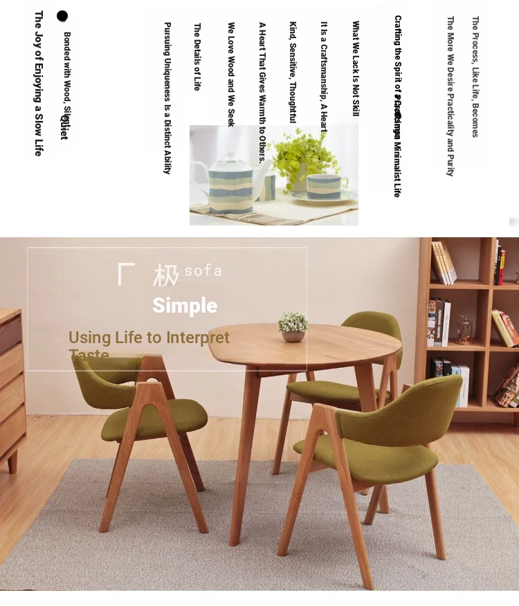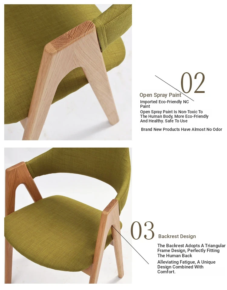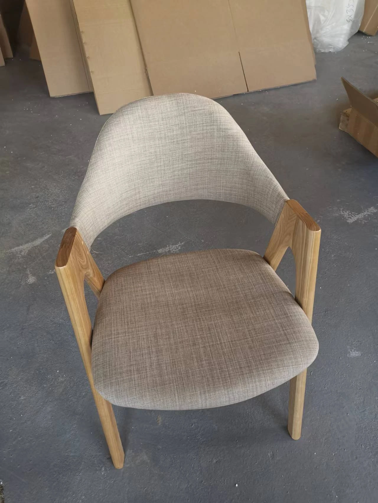 Modern Minimalist Japanese Solid Wood Dining Chair - High-End Upholstered Armchair for Home and Café Use, Natural Finish