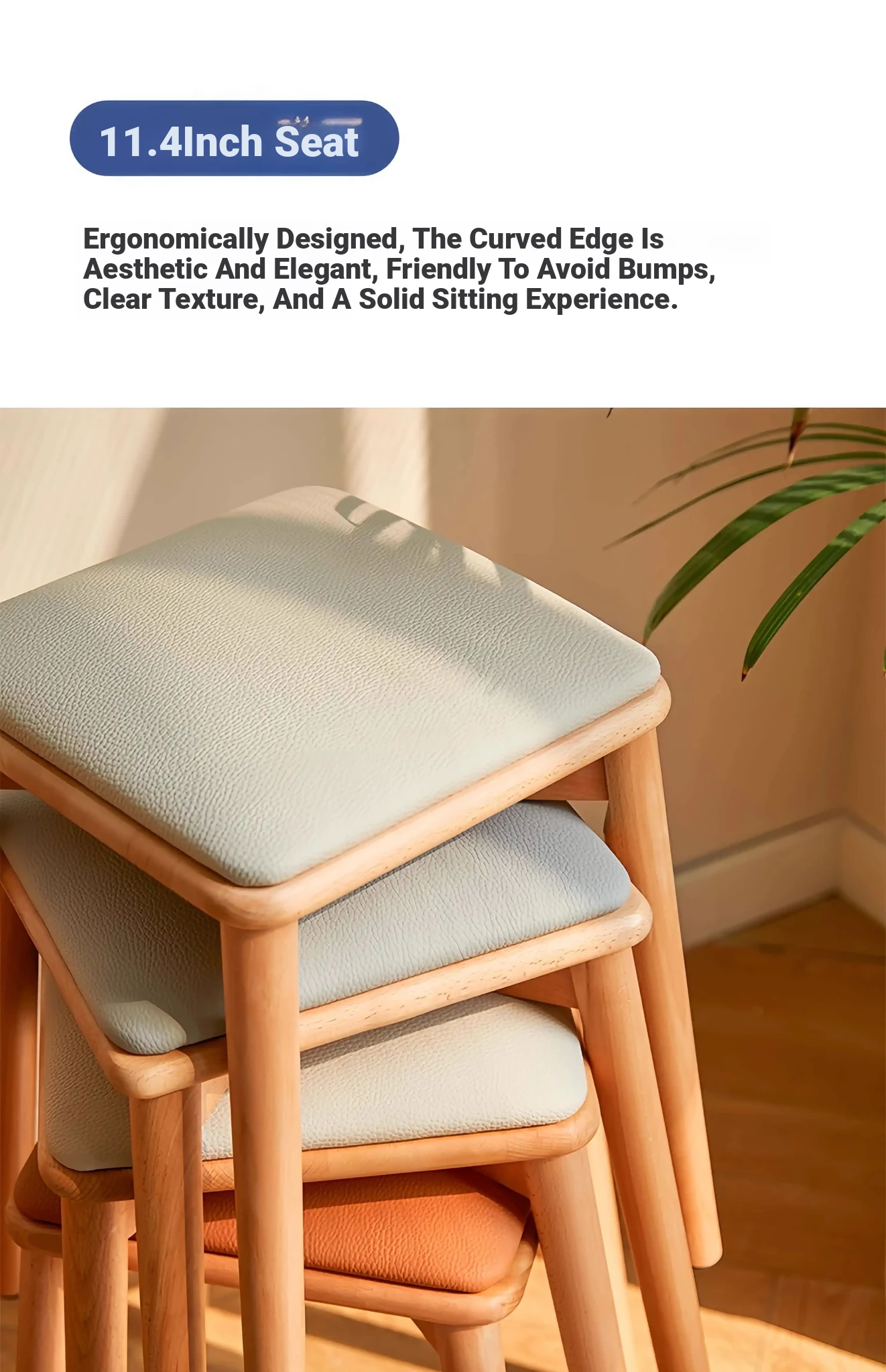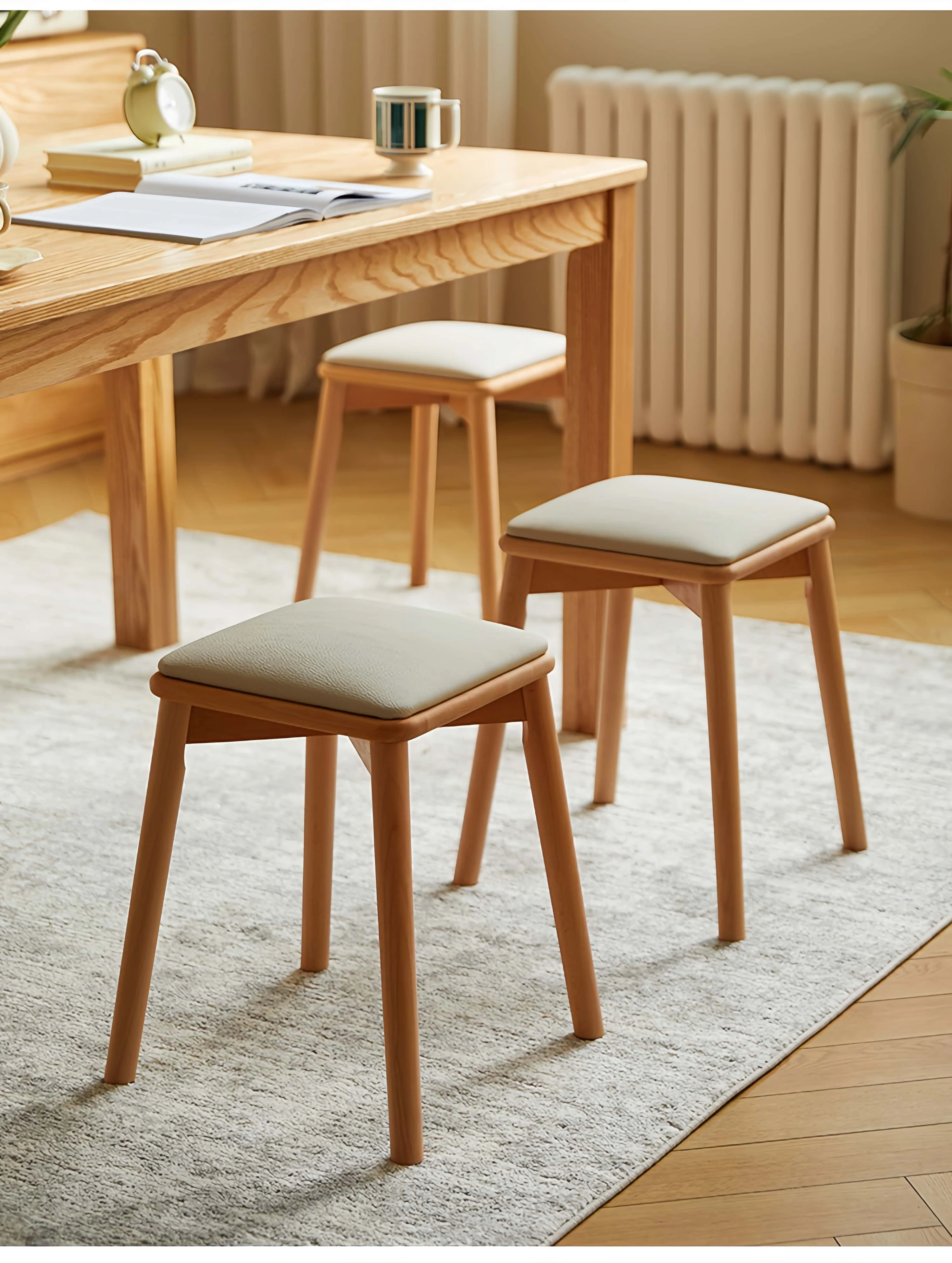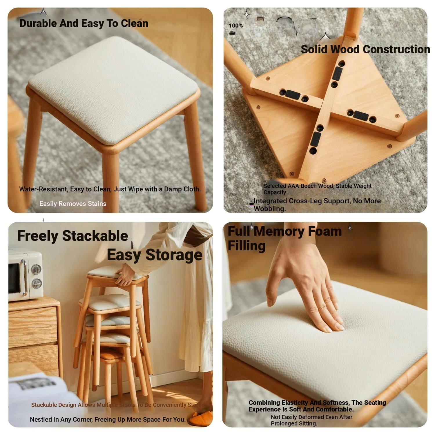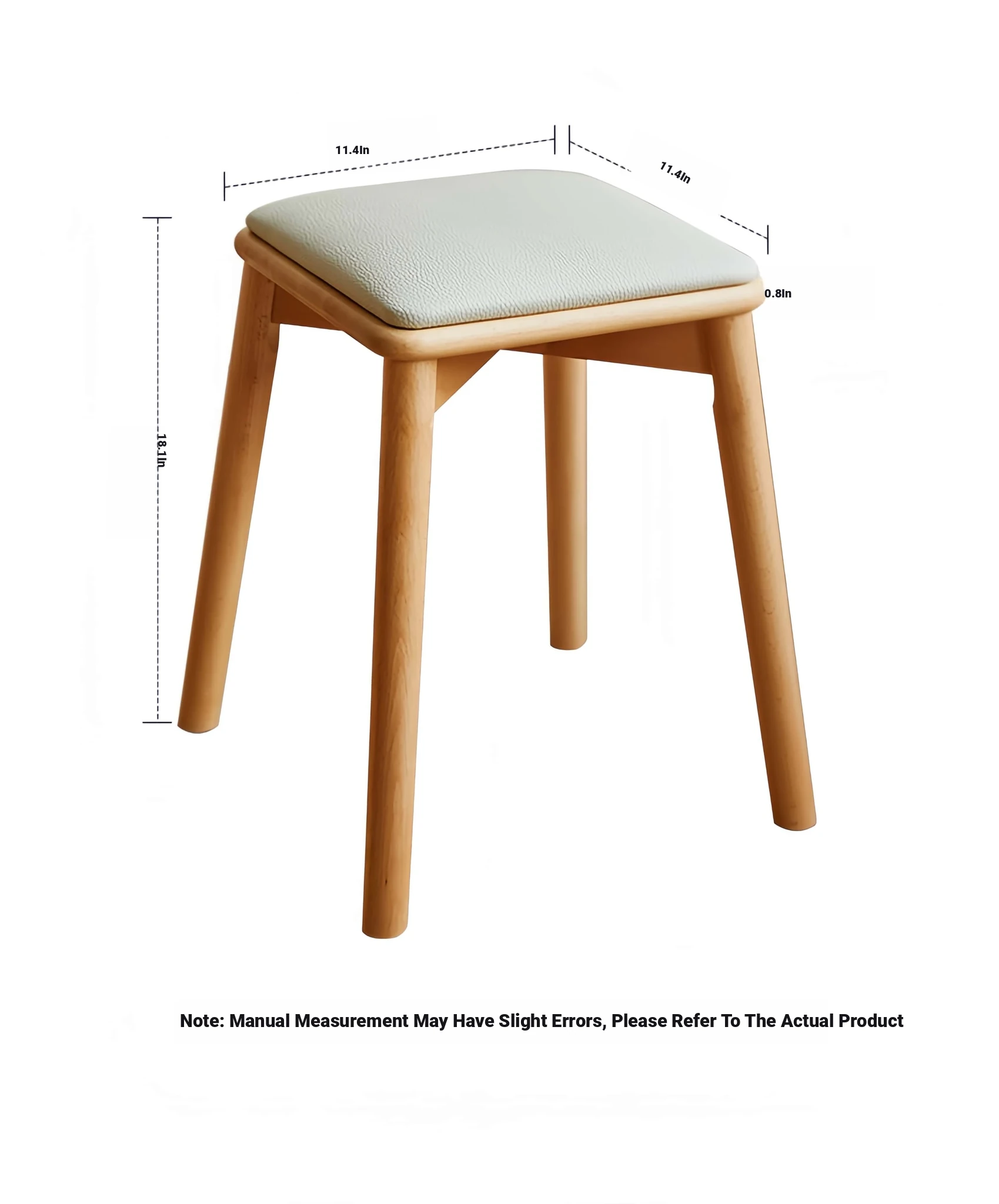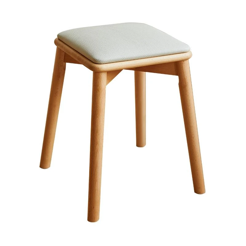 Modern Minimalist Solid Wood Makeup Stool - Creamy Dining Table Stool for Home Use, Stackable Soft Square Stool, Perfect for Dressing Tables and Extra Seating