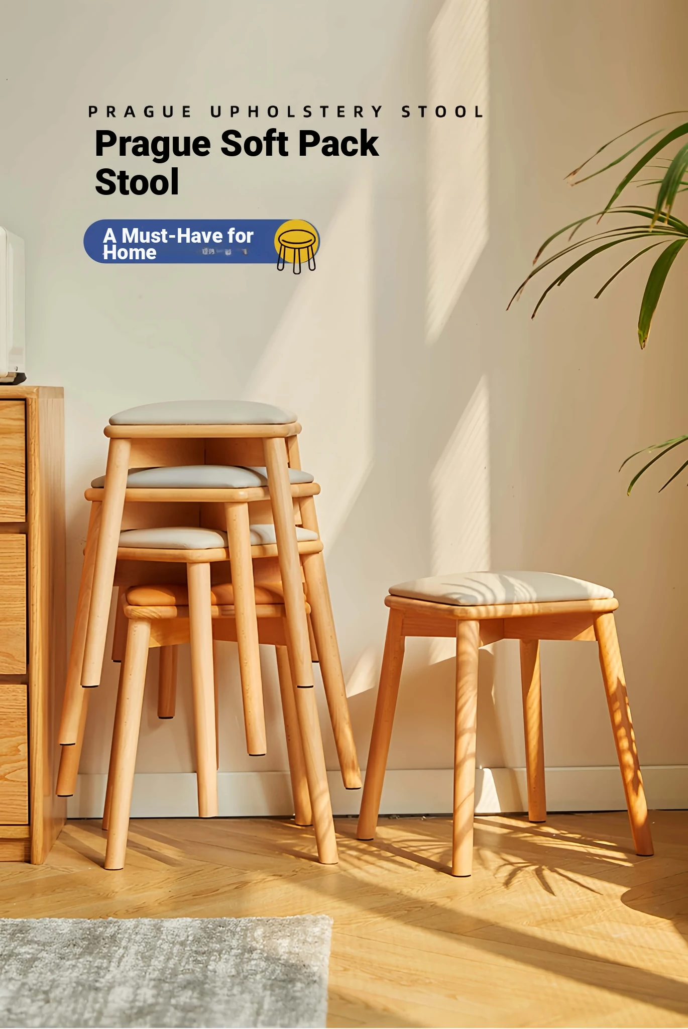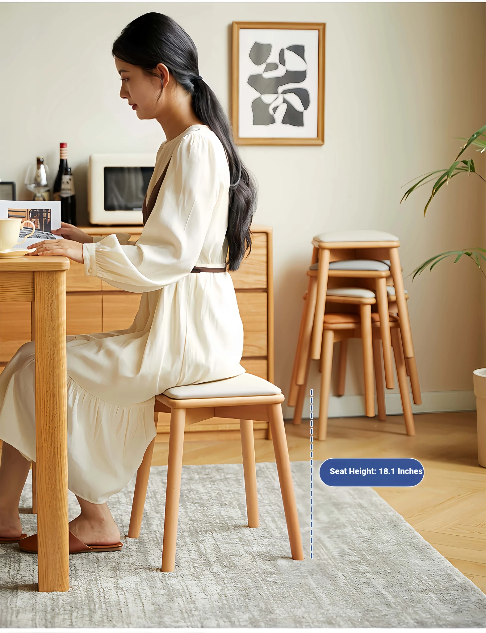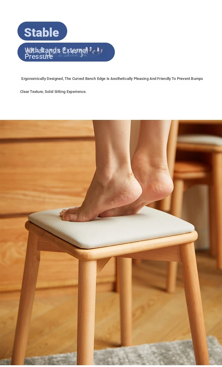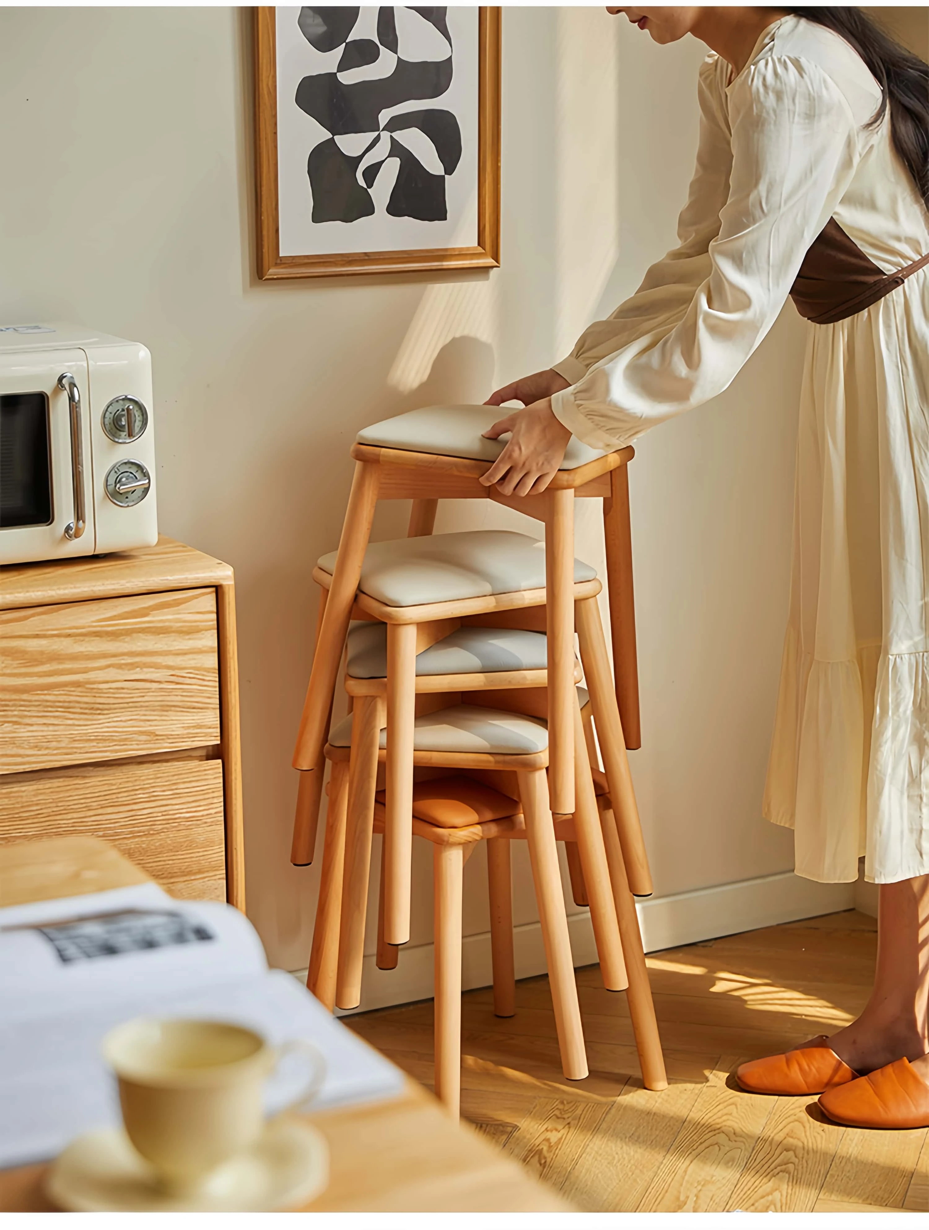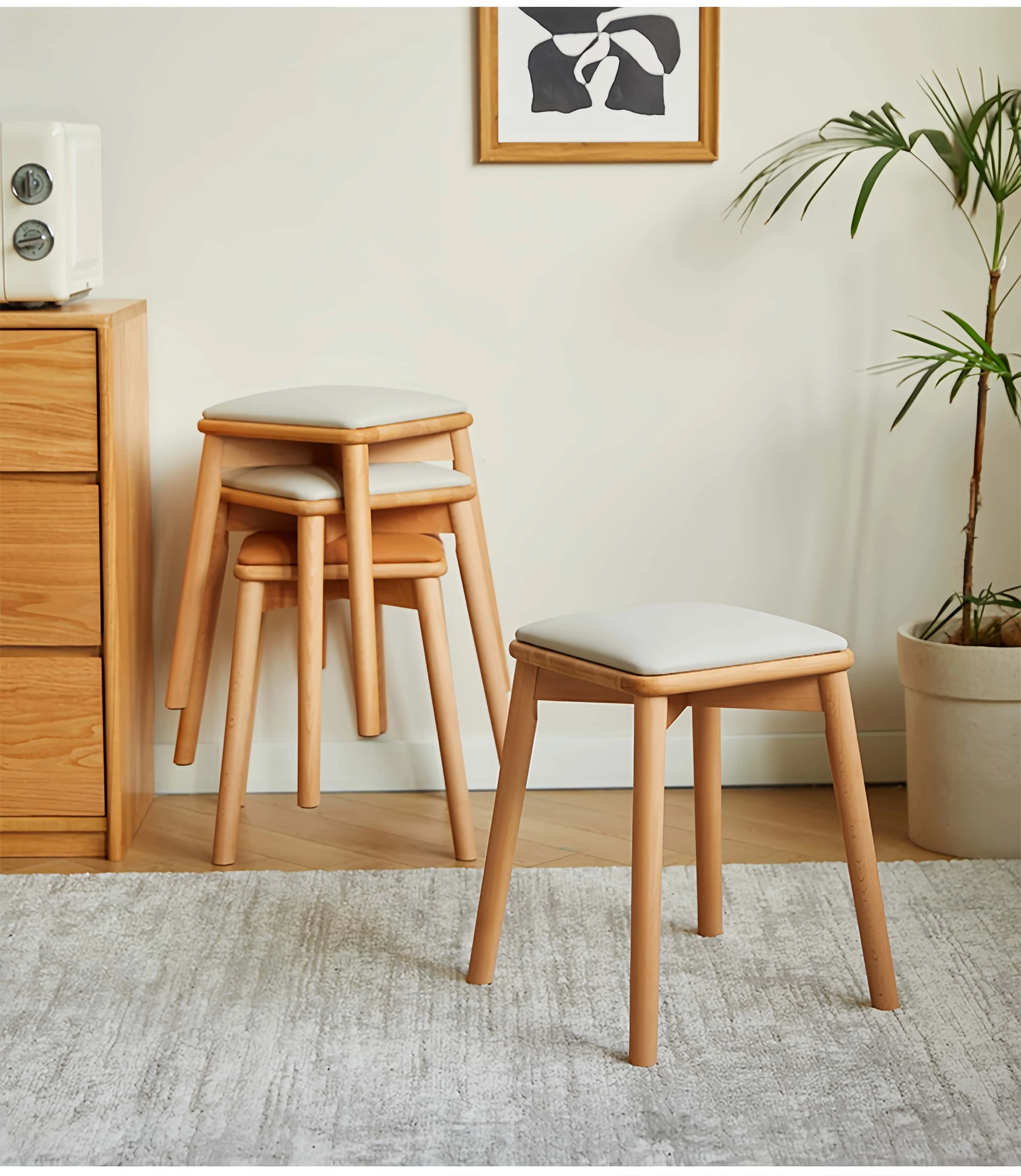 Modern Minimalist Solid Wood Makeup Stool - Creamy Dining Table Stool for Home Use, Stackable Soft Square Stool, Perfect for Dressing Tables and Extra Seating