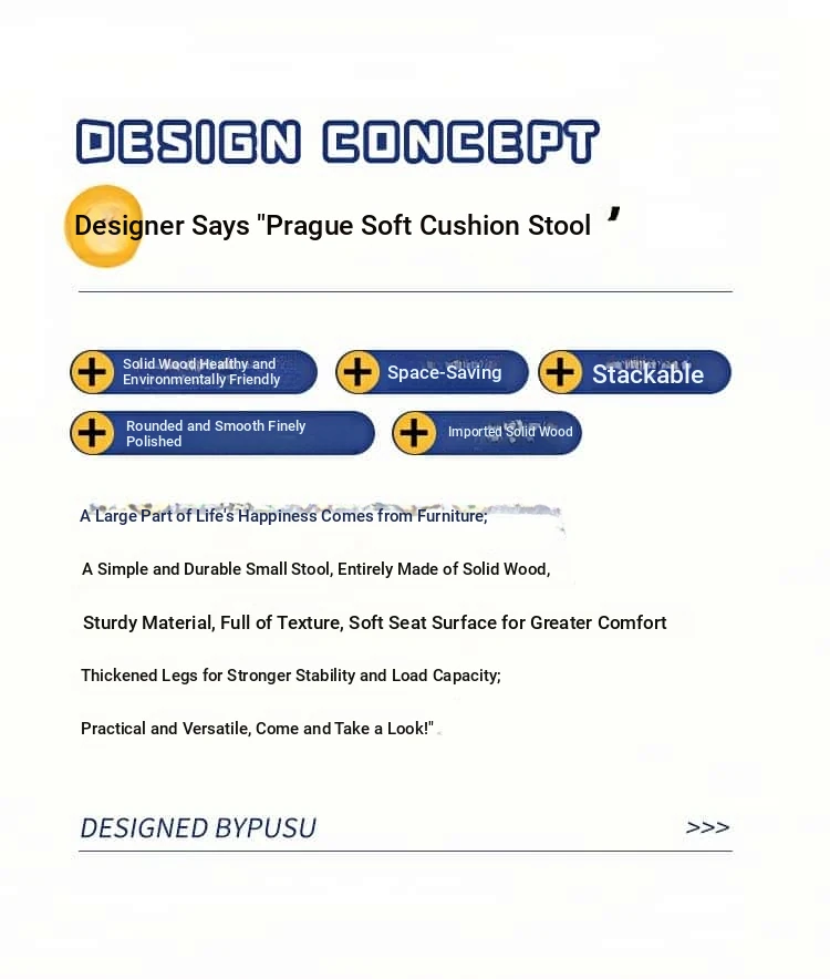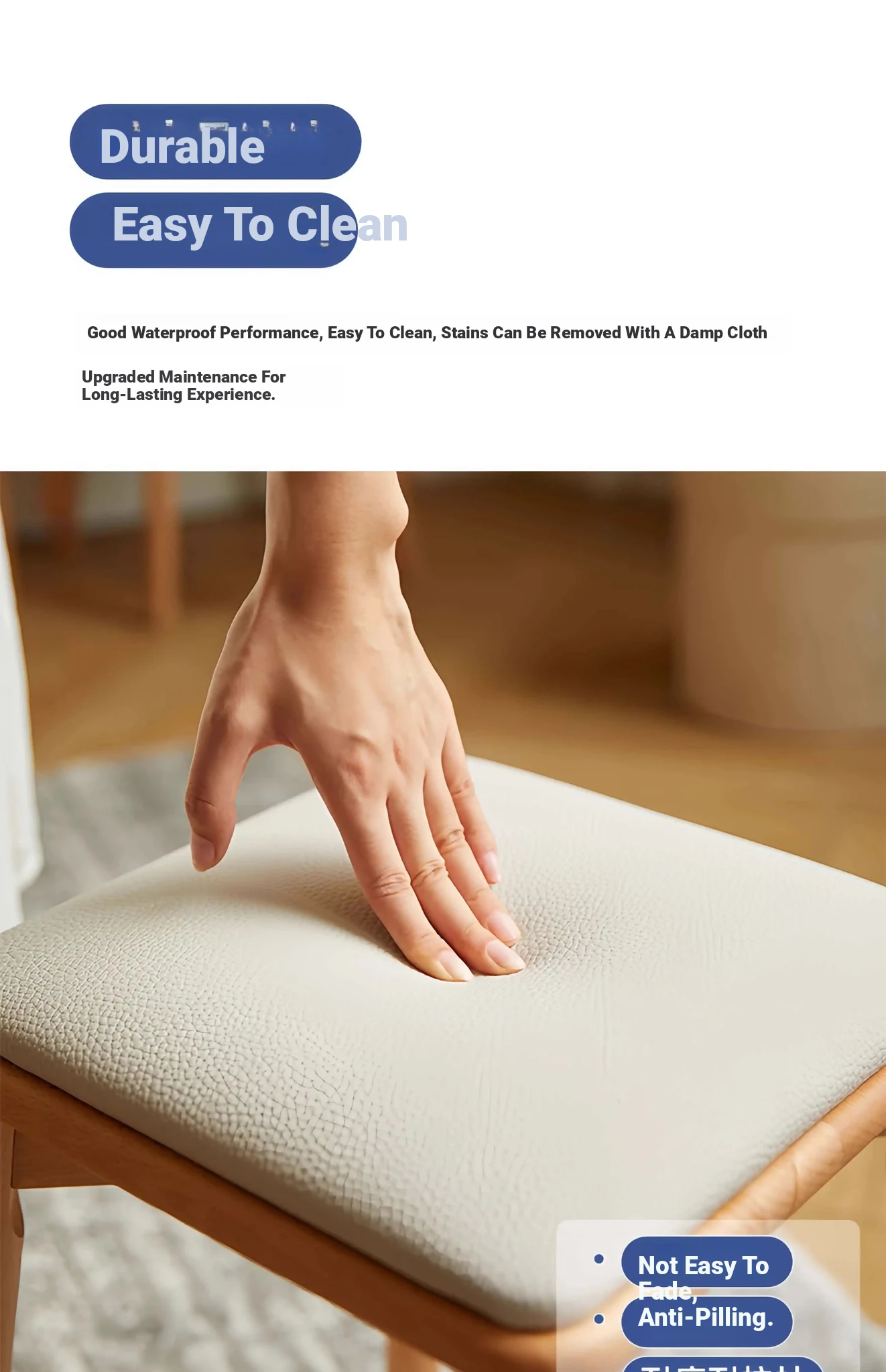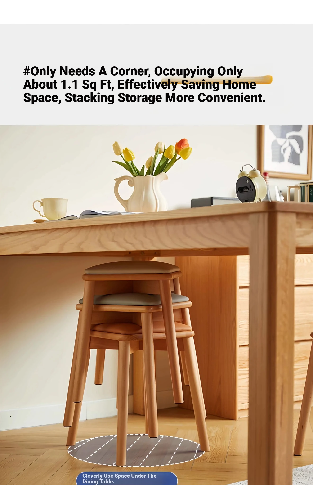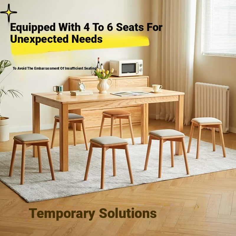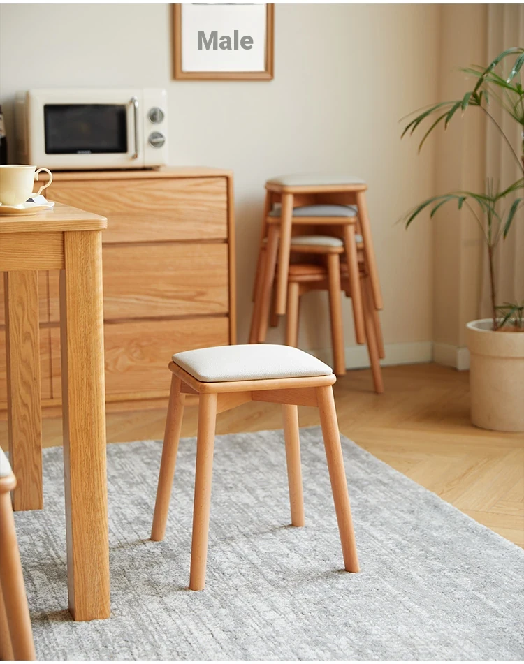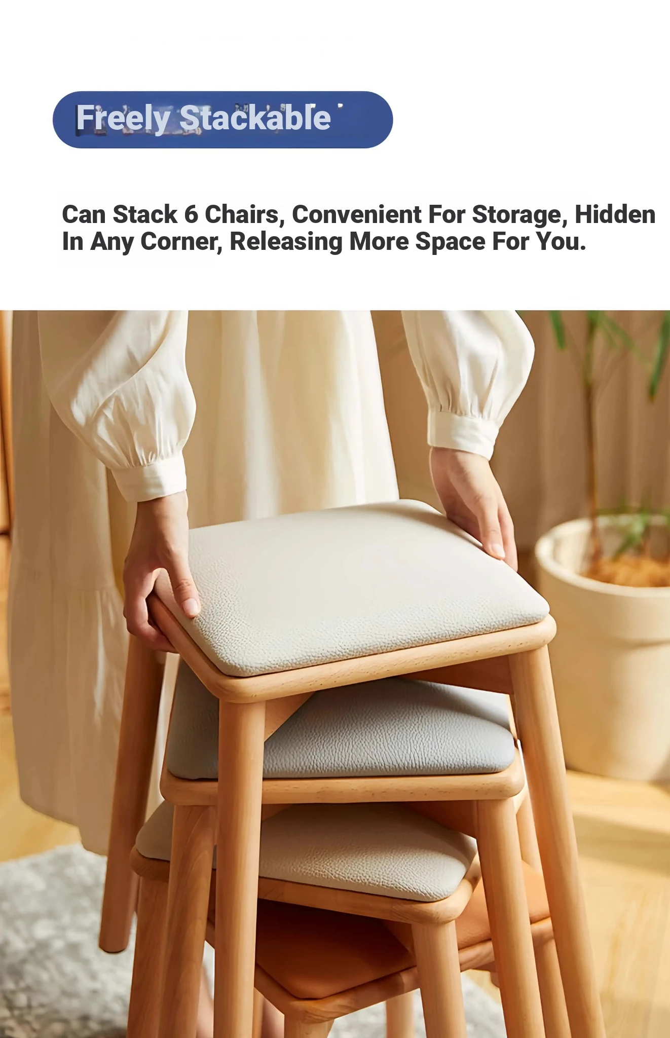 Modern Minimalist Solid Wood Makeup Stool - Creamy Dining Table Stool for Home Use, Stackable Soft Square Stool, Perfect for Dressing Tables and Extra Seating