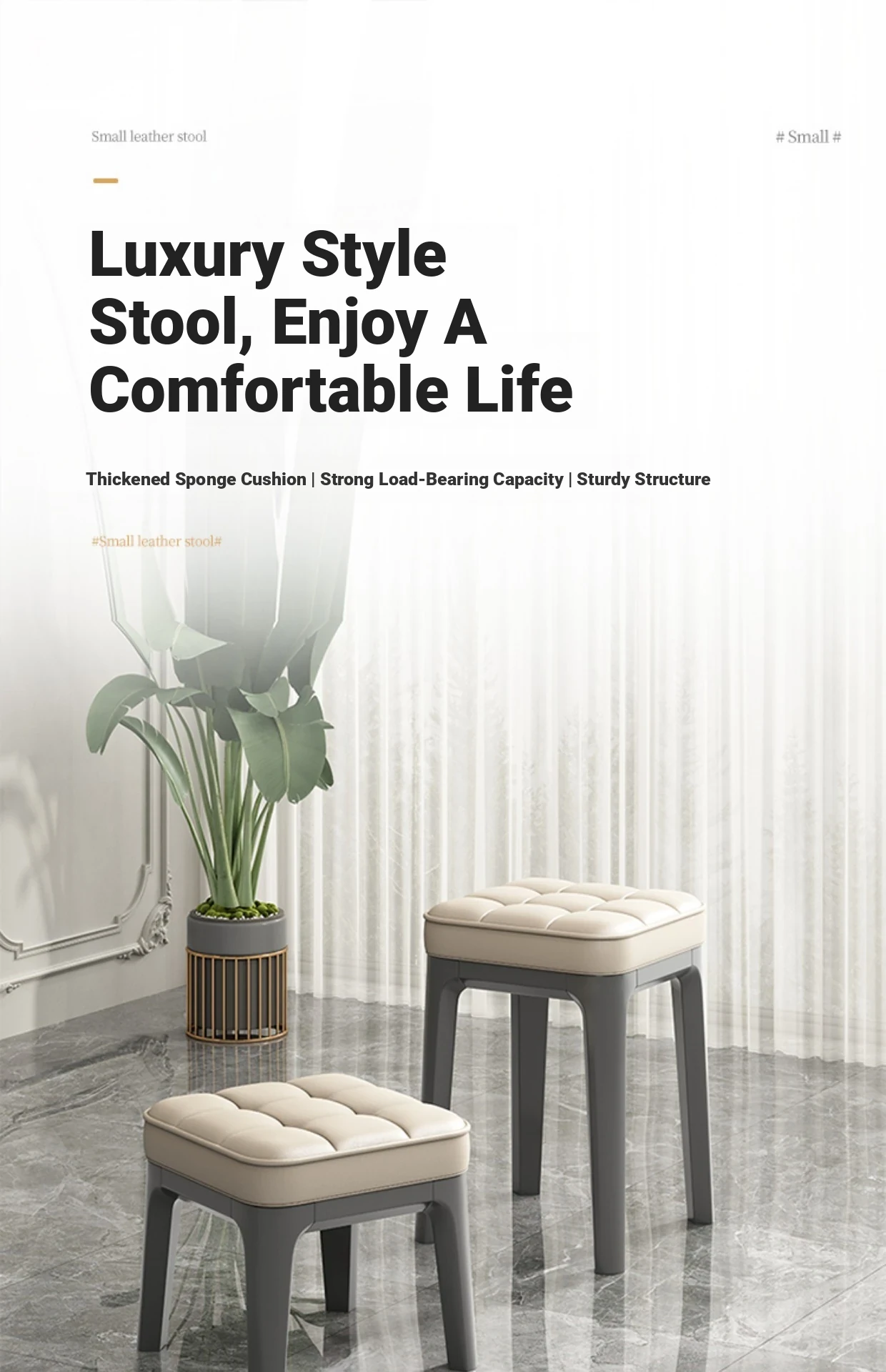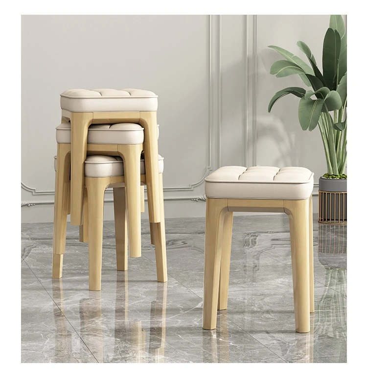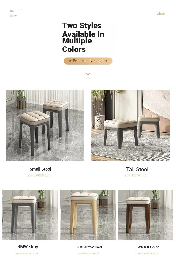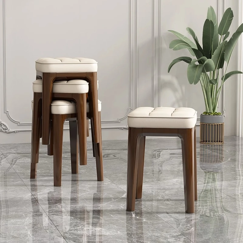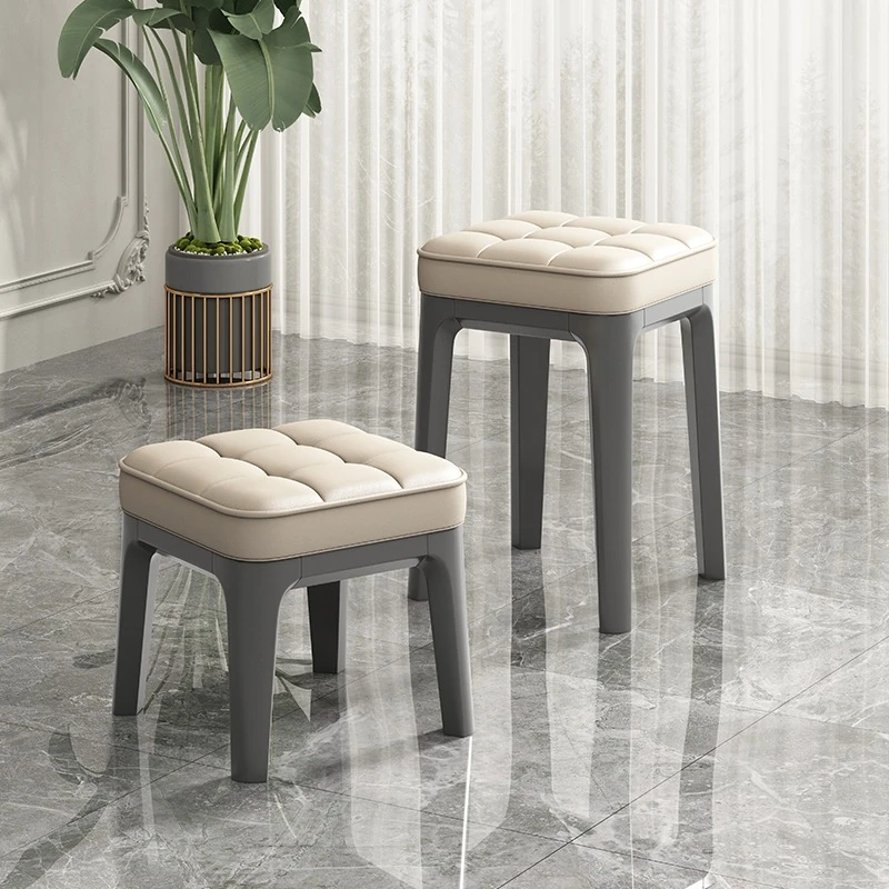 Modern Minimalist Solid Wood Upholstered Stacking Vanity Table and Makeup Stool - Stylish Small Square Desk Stool with a Height of 45CM, Perfect for Any Space!