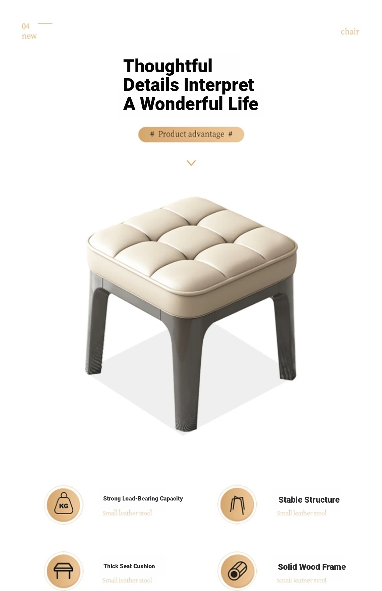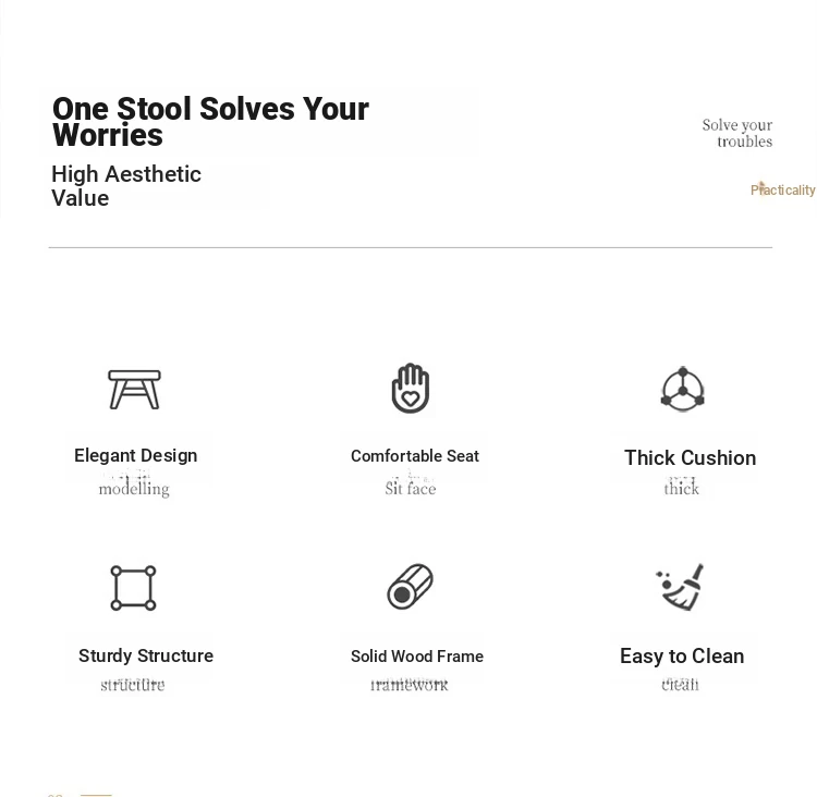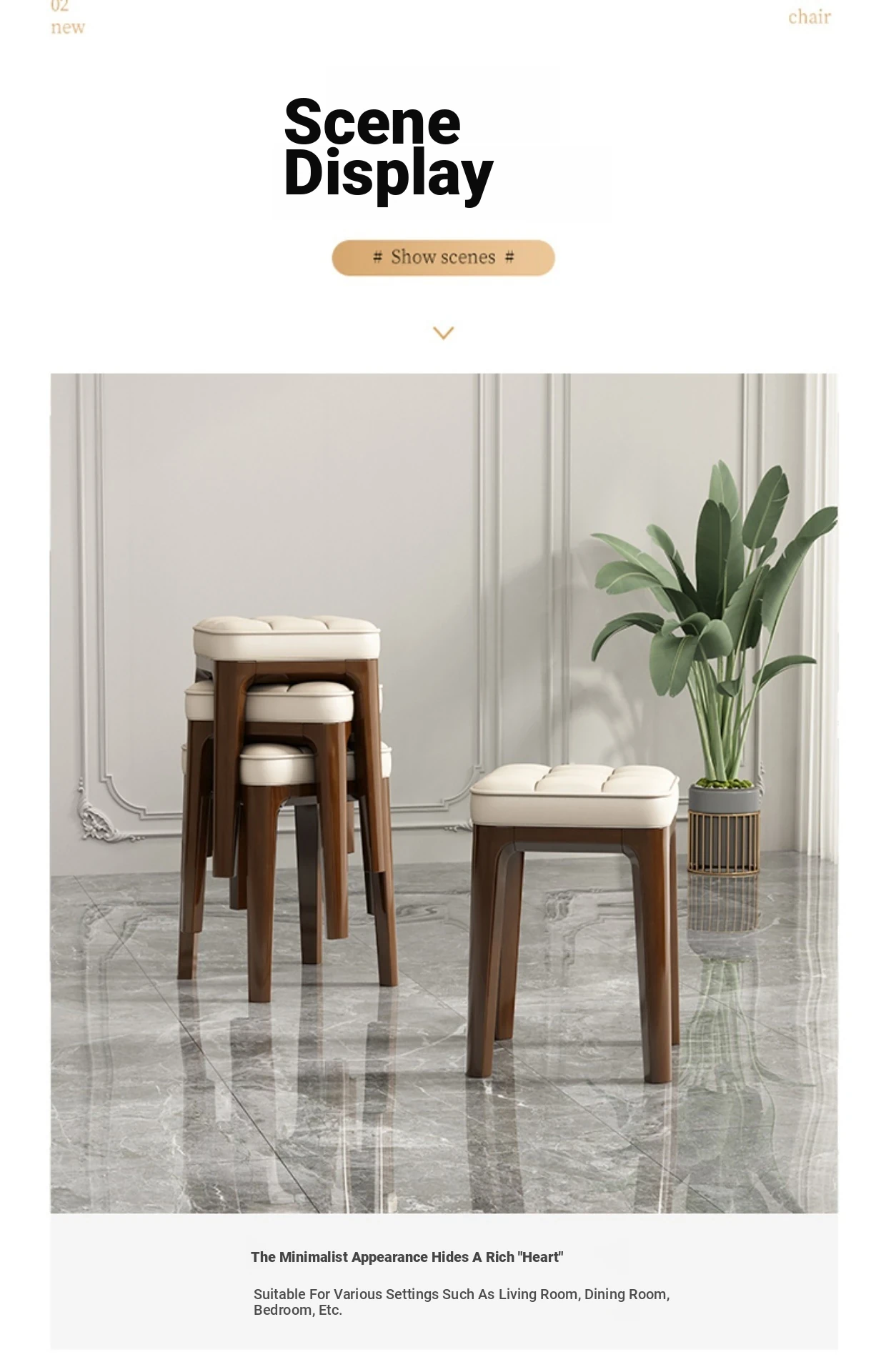 Modern Minimalist Solid Wood Upholstered Stacking Vanity Table and Makeup Stool - Stylish Small Square Desk Stool with a Height of 45CM, Perfect for Any Space!