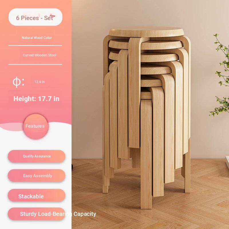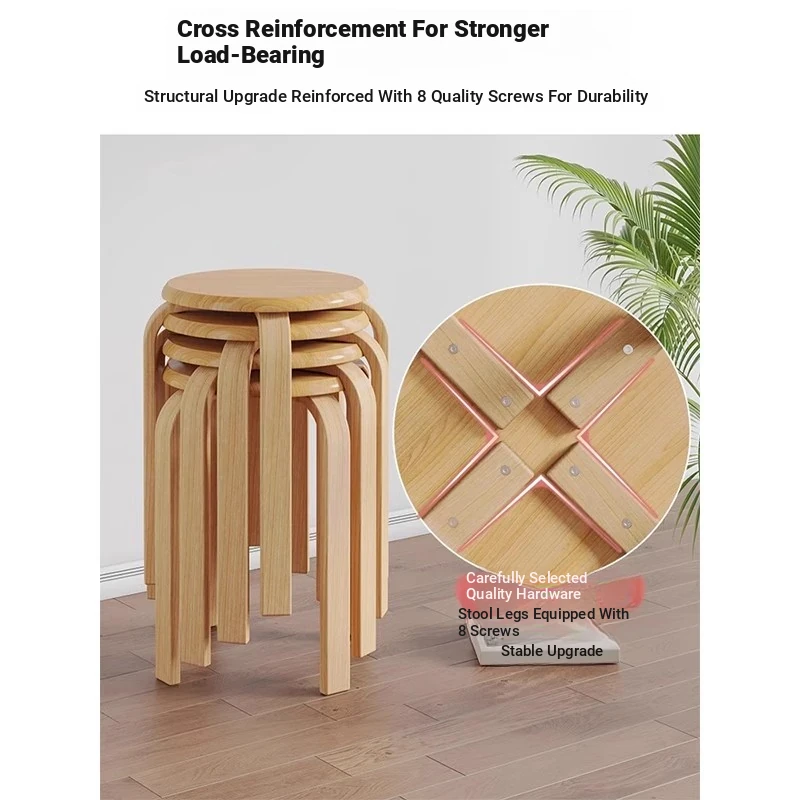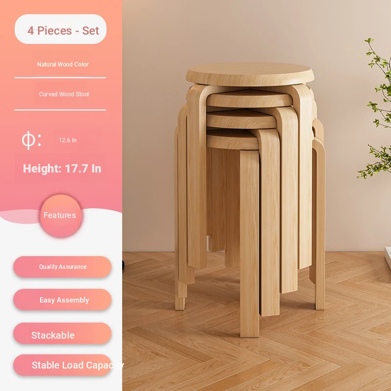 Modern Solid Wood Leg Stool - Versatile Round High Bench for Home & Commercial Use, Perfect for Dining Room and Living Spaces, Simple and Stylish Design