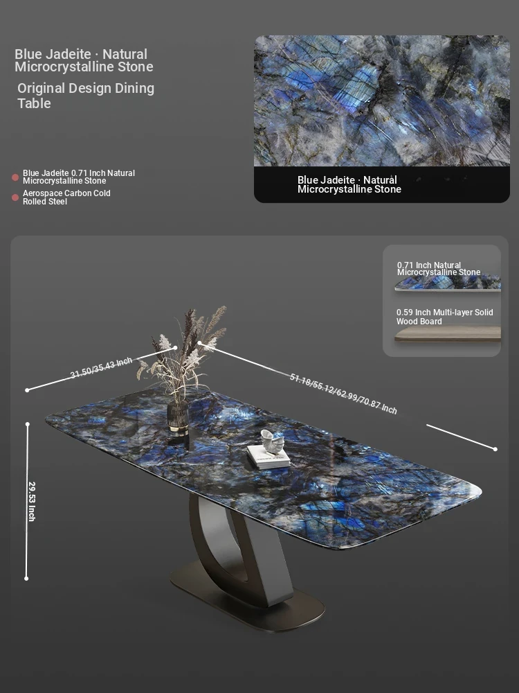 [Original design] 0.71in natural microcrystalline Stone Blue Jade dining table