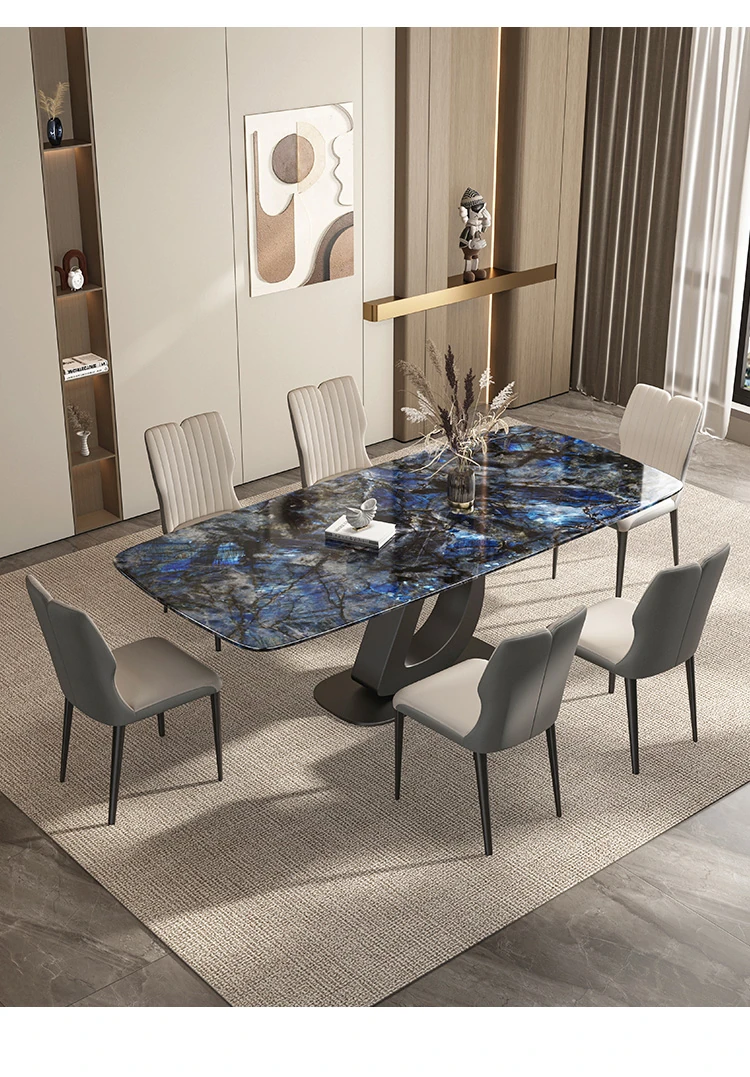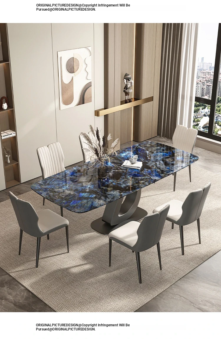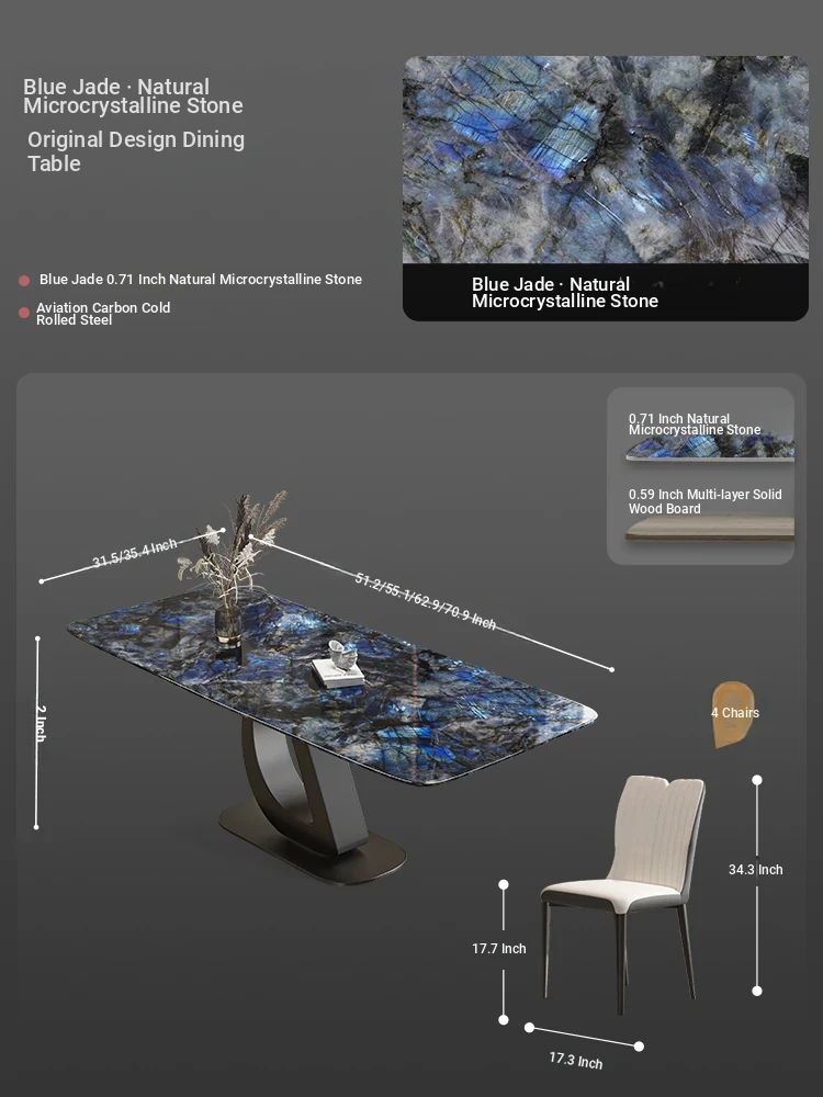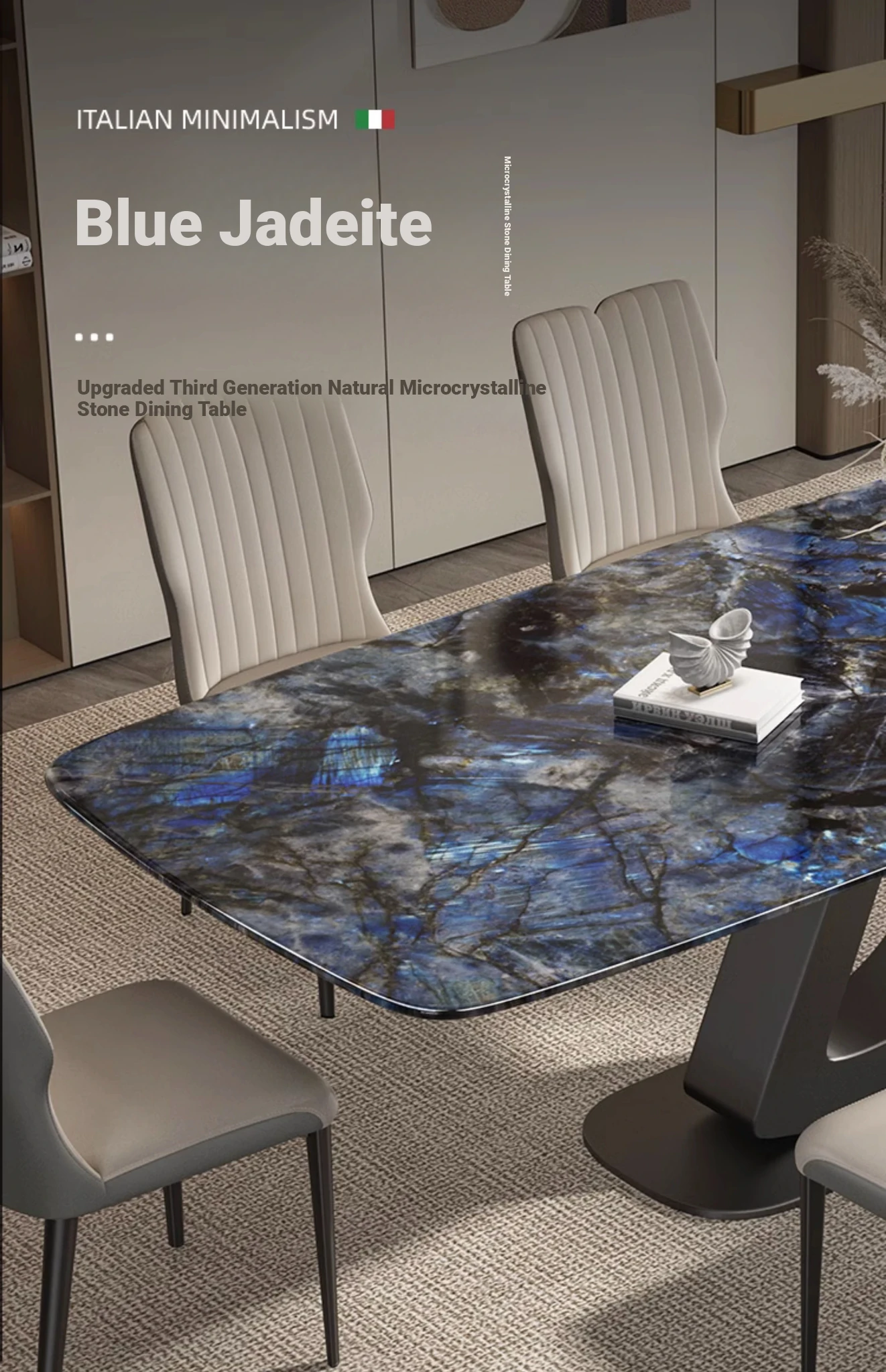 Natural Blue Jade Marble Dining Table Set - Elegant Italian Luxury, Rectangular Design for High-End Villas, Featuring Premium Microcrystalline Stone Chairs. Perfect for Upscale Dining Experiences!