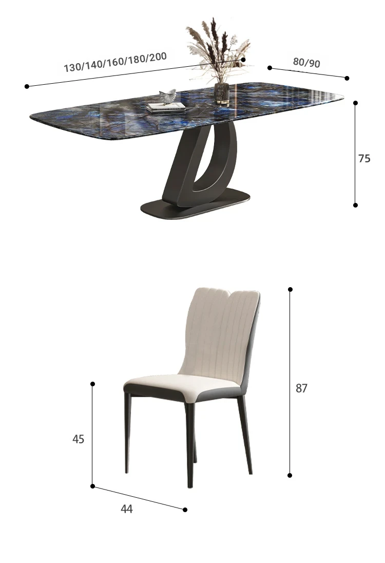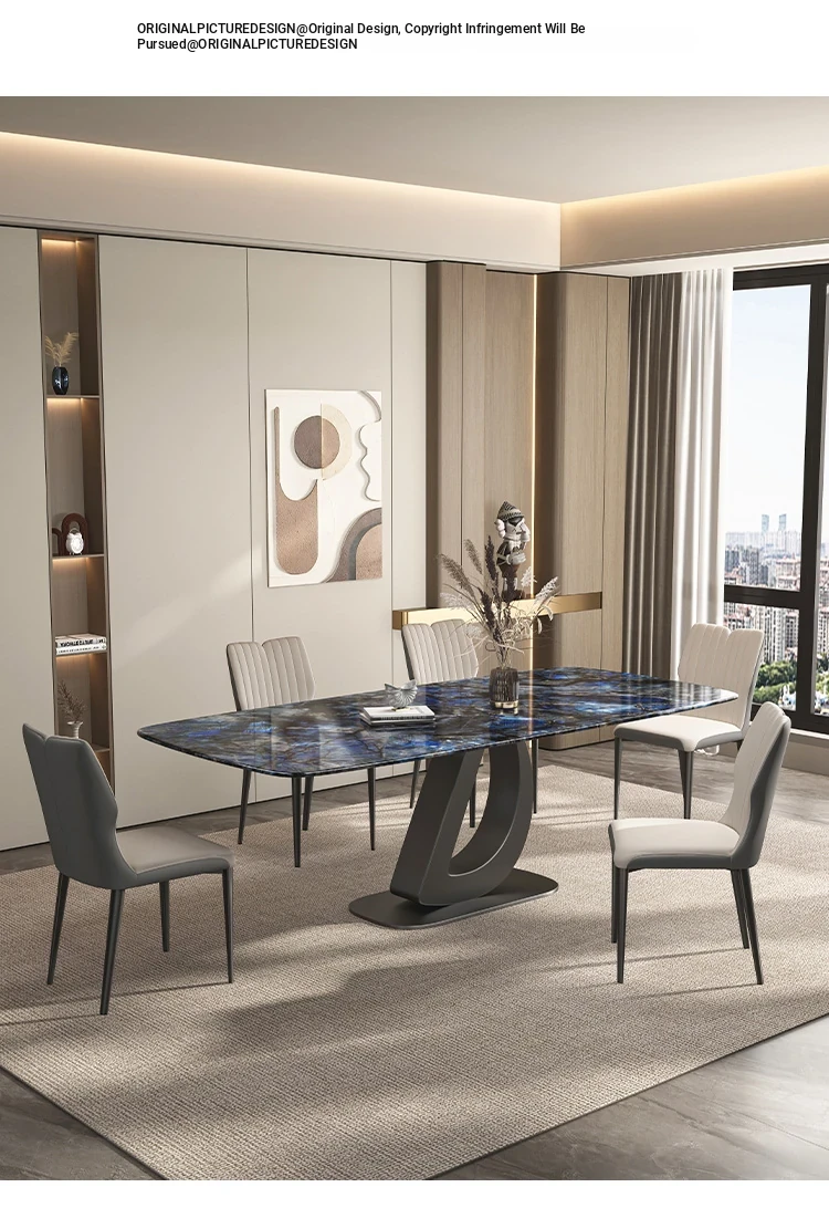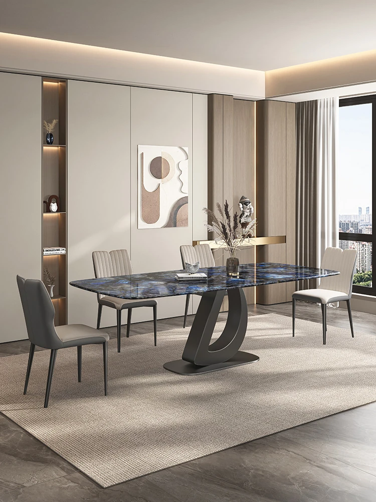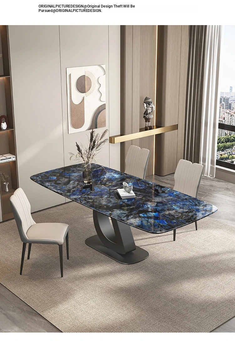 Natural Blue Jade Marble Dining Table Set - Elegant Italian Luxury, Rectangular Design for High-End Villas, Featuring Premium Microcrystalline Stone Chairs. Perfect for Upscale Dining Experiences!
