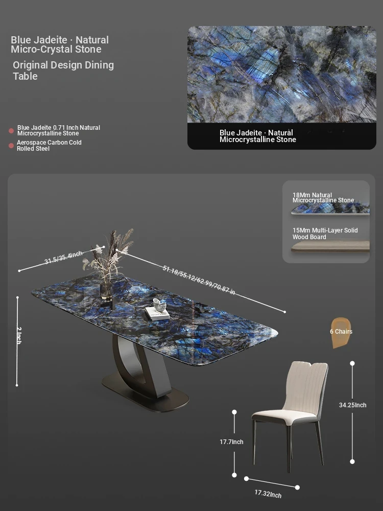 [Original Design] 0.71in Natural Microlite Blue Emerald Dining Table + Dining Chair * 6