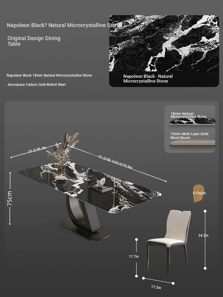 [Original Design] 0.71in Natural Microlite Napoleon Black Dining Table + Dining Chair * 4