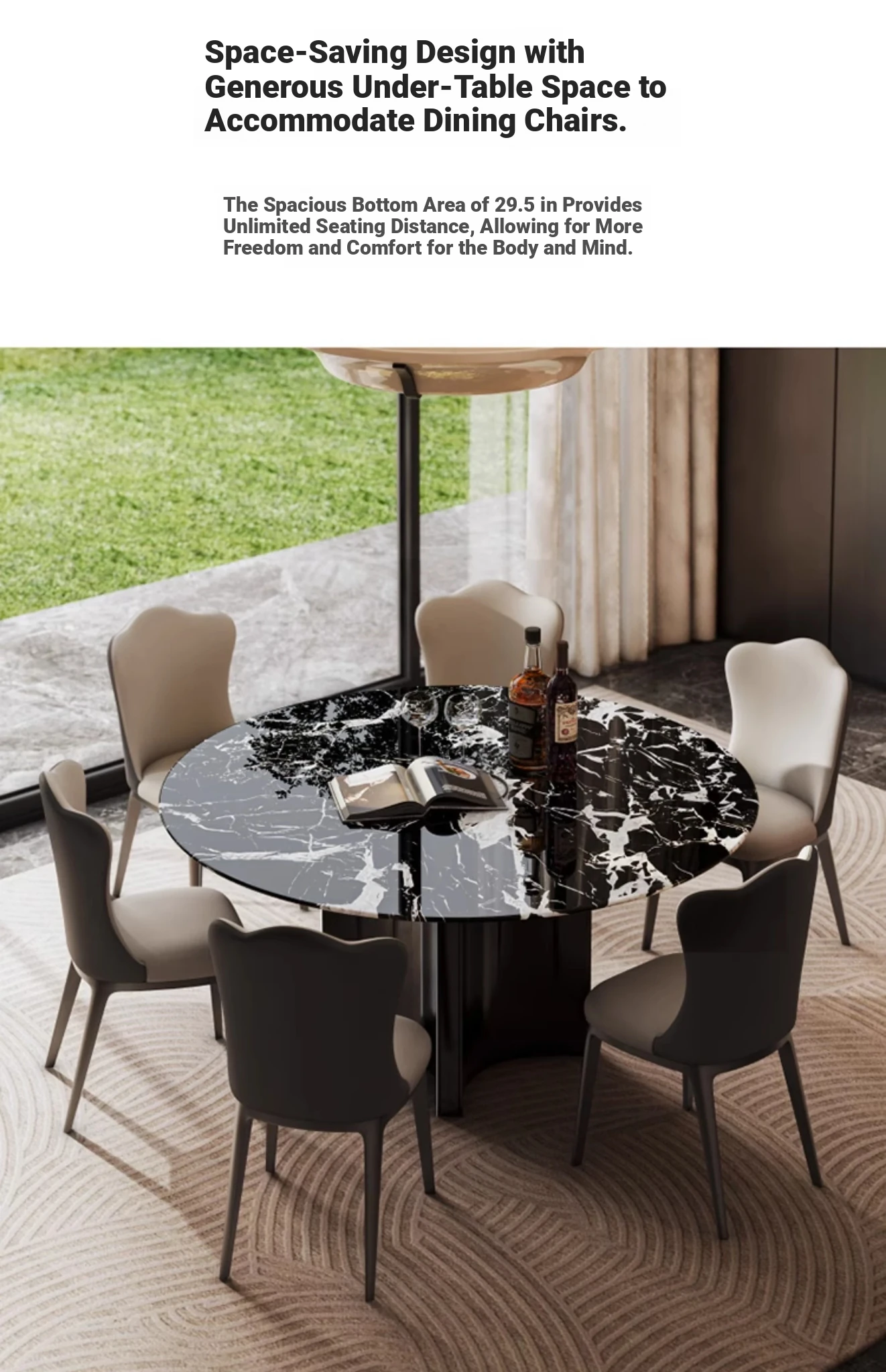 [S] Oreo Grey Natural Luxury Stone Round Dining Table + Cloud Leather Dining Chair * 6