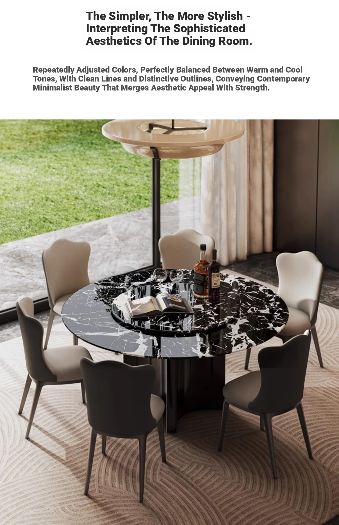 [S Class] Oreo Grey Natural Luxury Stone Round Dining Table [with Turntable] + Cloud Leather Dining Chair * 6
