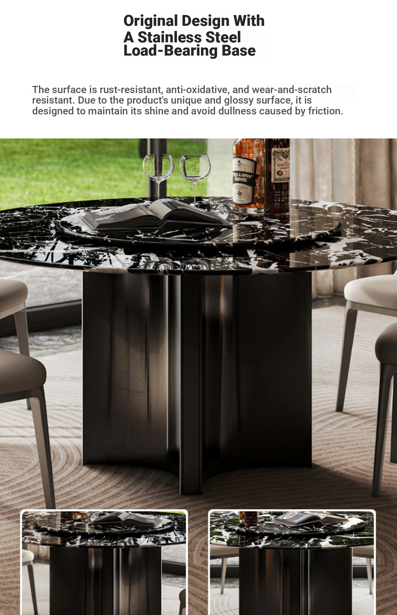 [Class S] Oreo Grey Natural Luxury Stone Round Dining Table