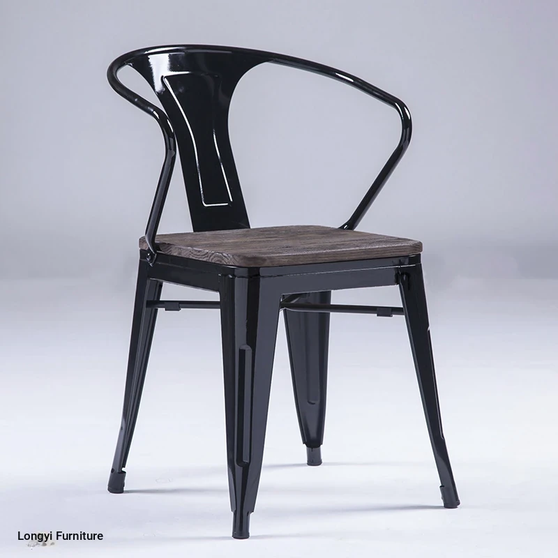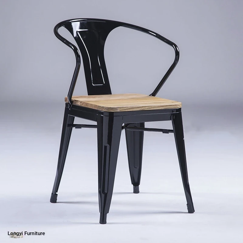 Nordic Solid Wood Dining Chair - Modern Minimalist Design with Backrest, Perfect for Casual Dining, Trendy Guesthouses, Industrial Style, and Outdoor Use - Stylish Iron Frame Chair