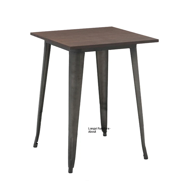 Metal brushed 23.62in*23.62in*29.53in dining table + Elm natural color