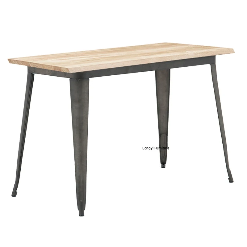 Metal brushed 23.62in*47.24in*29.53in dining table + Elm natural color