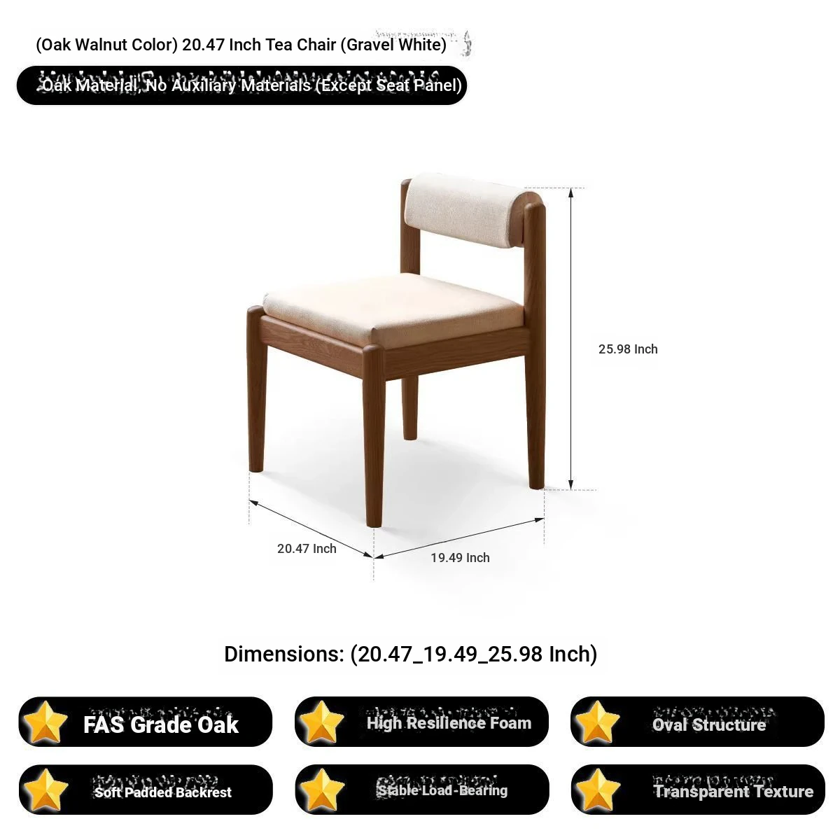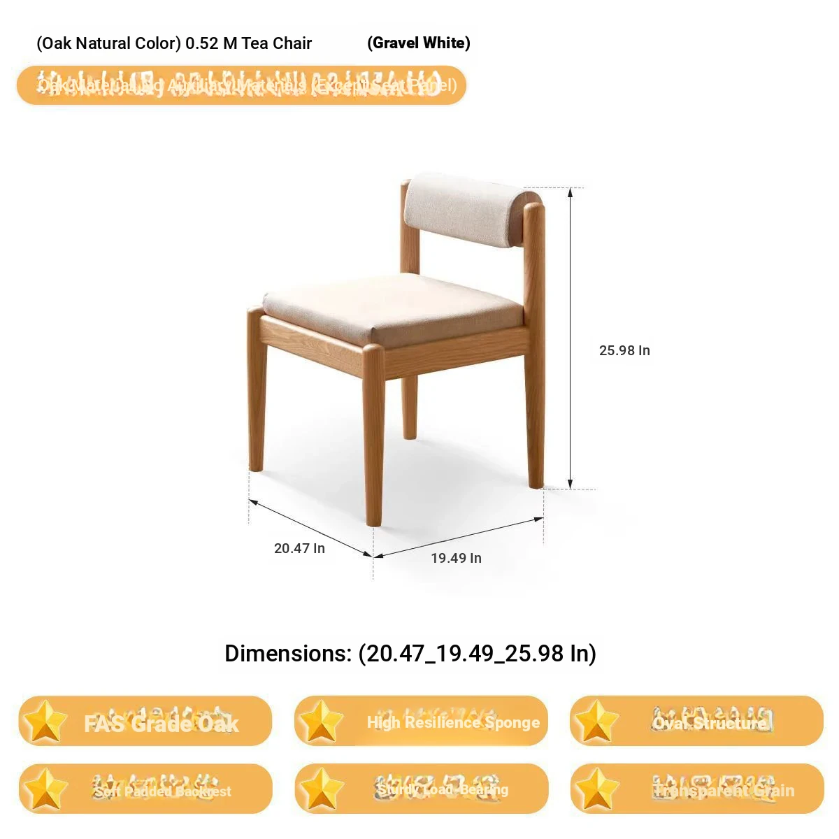 (Oak Peach) 20.47 in Chair (Gravel White)