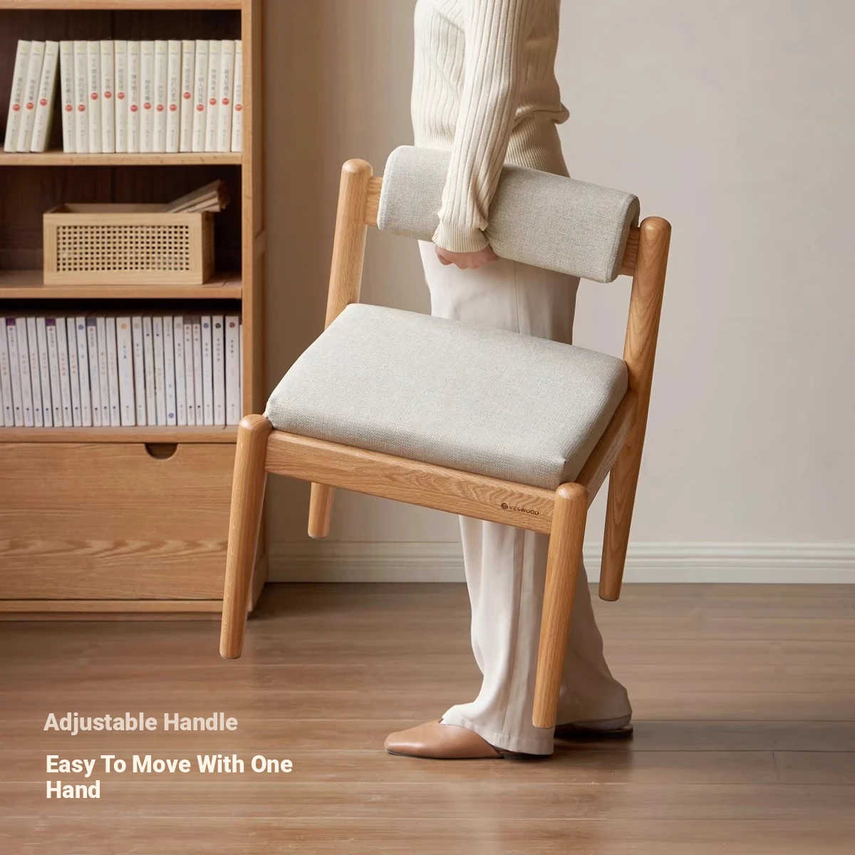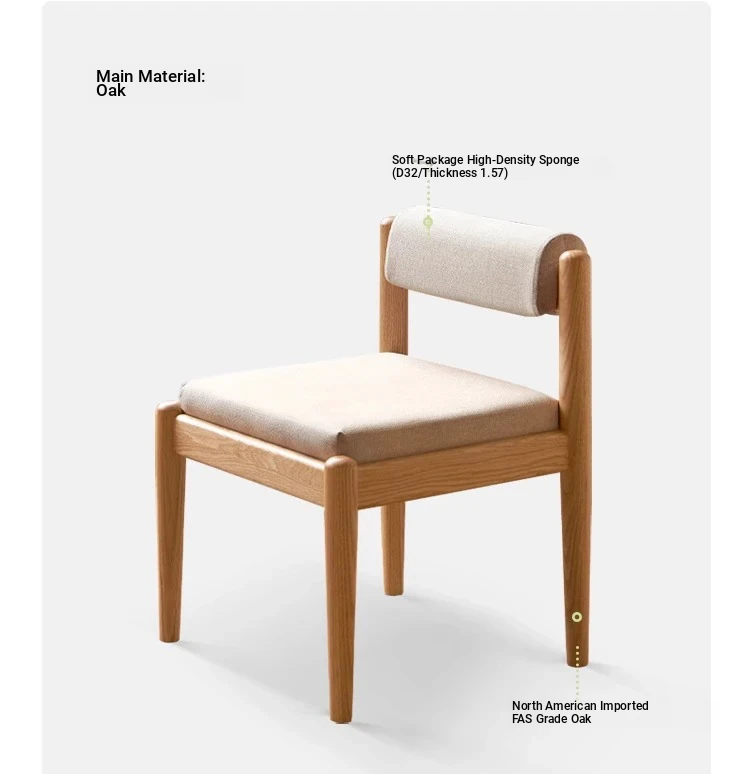 Nordic Solid Wood Tea Chair - Oak Low-Back Accent Chair for Living Room, Perfect for Small Spaces or Dining Areas, Stylish and Minimalist Design