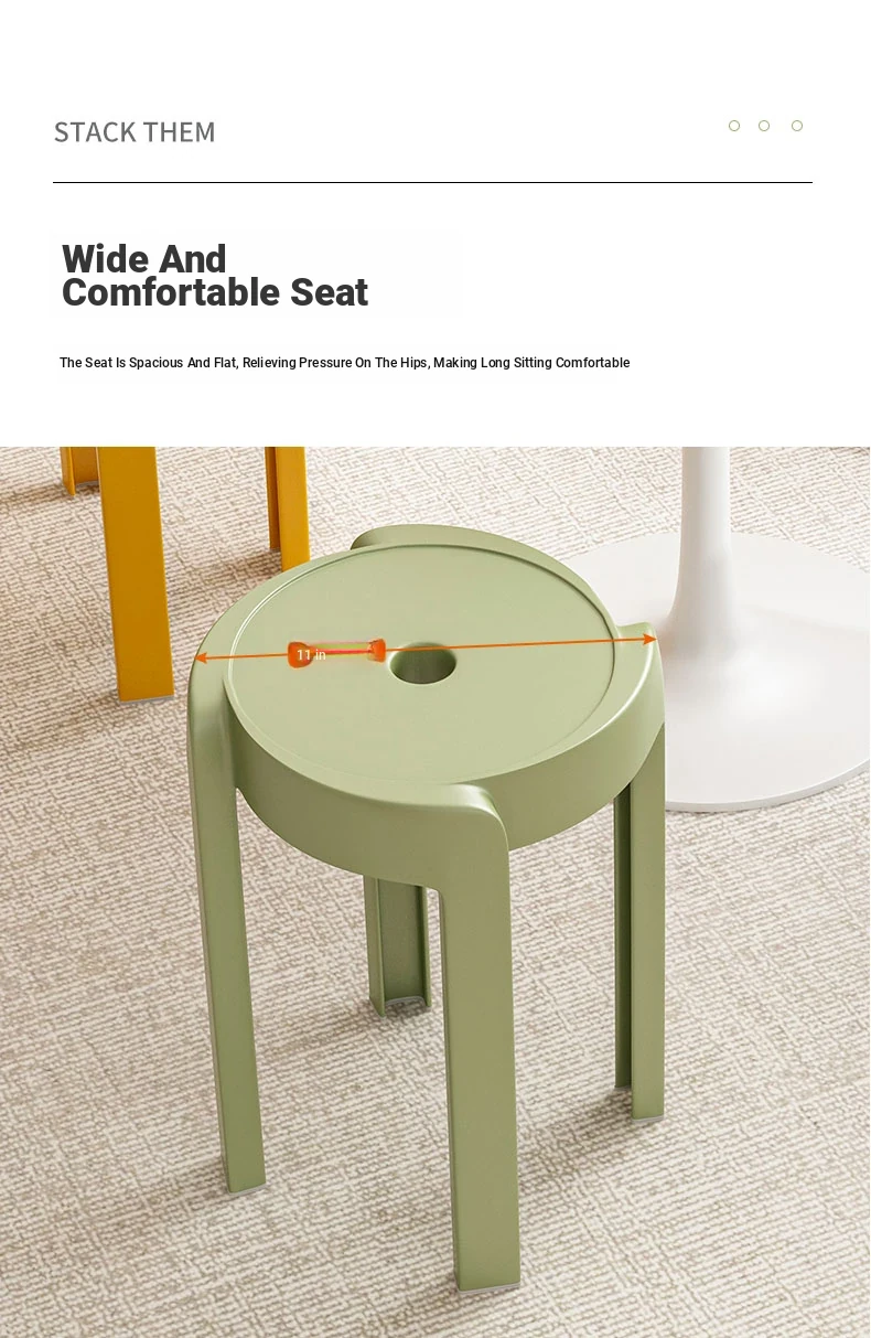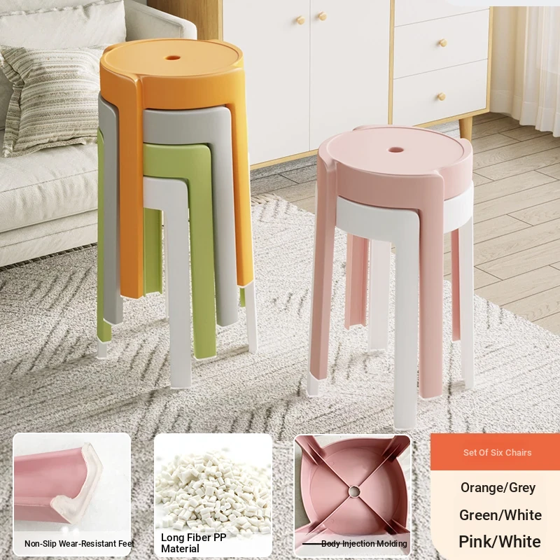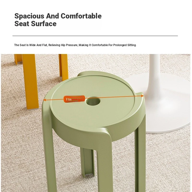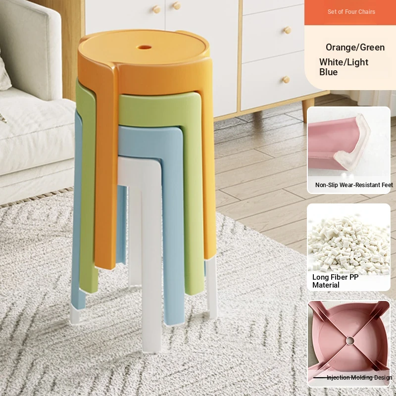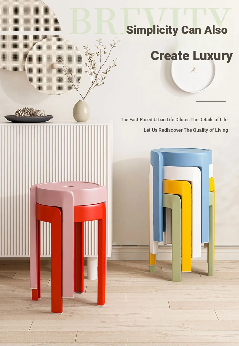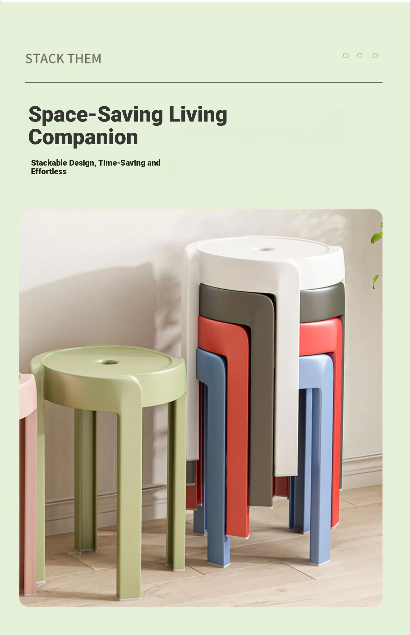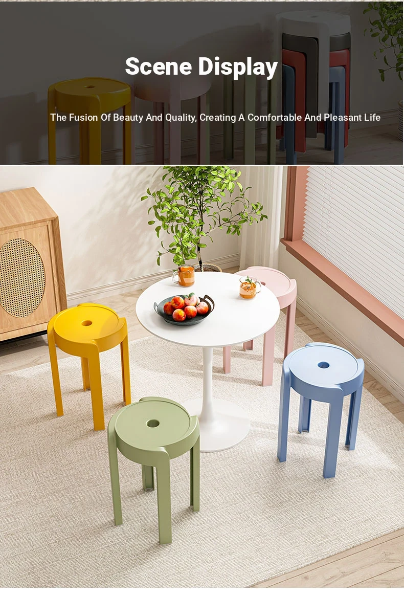 Nordic Style Dining Chair - Modern Minimalist Plastic Stool, Thickened, Foldable Round Stool for Home Living Room, Trendy and Space-Saving Design