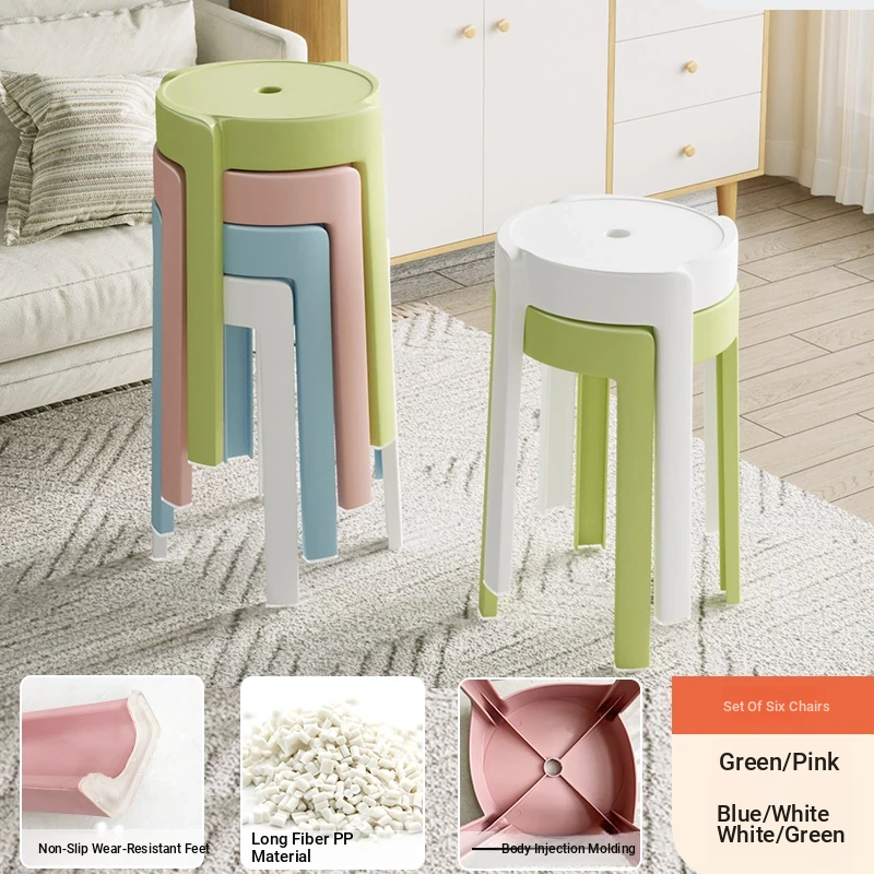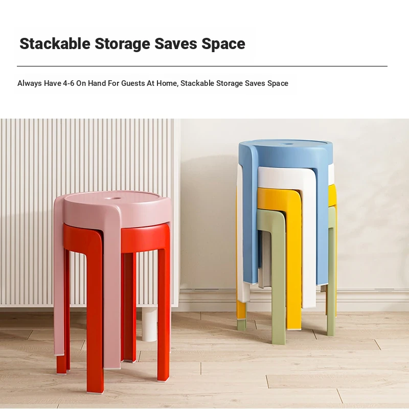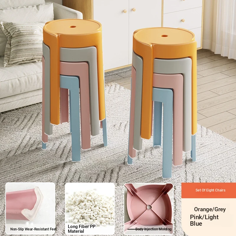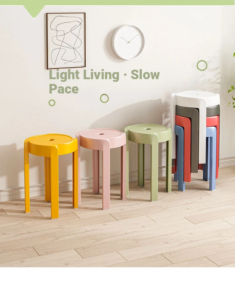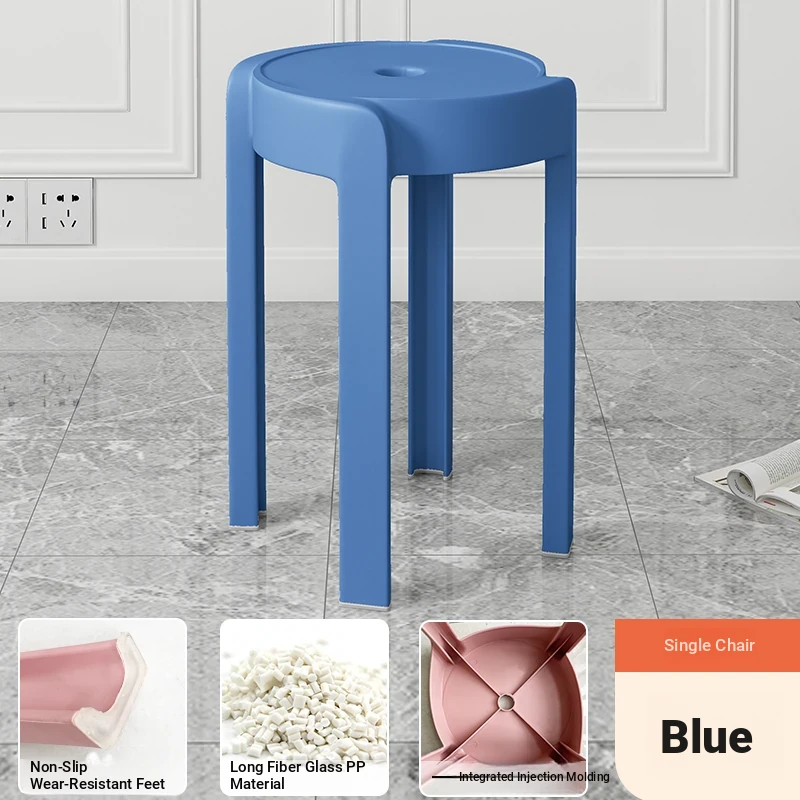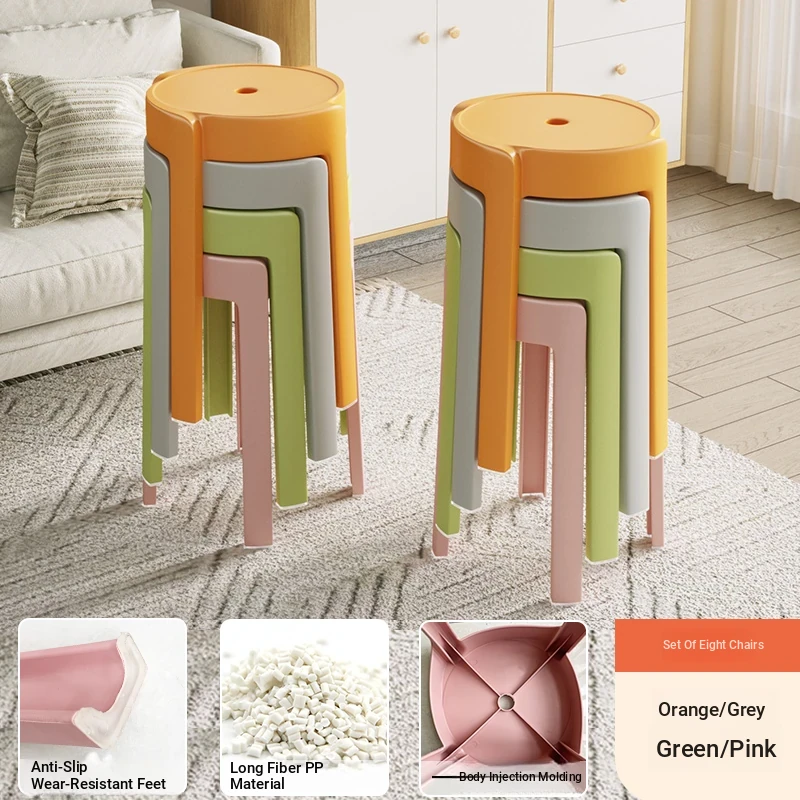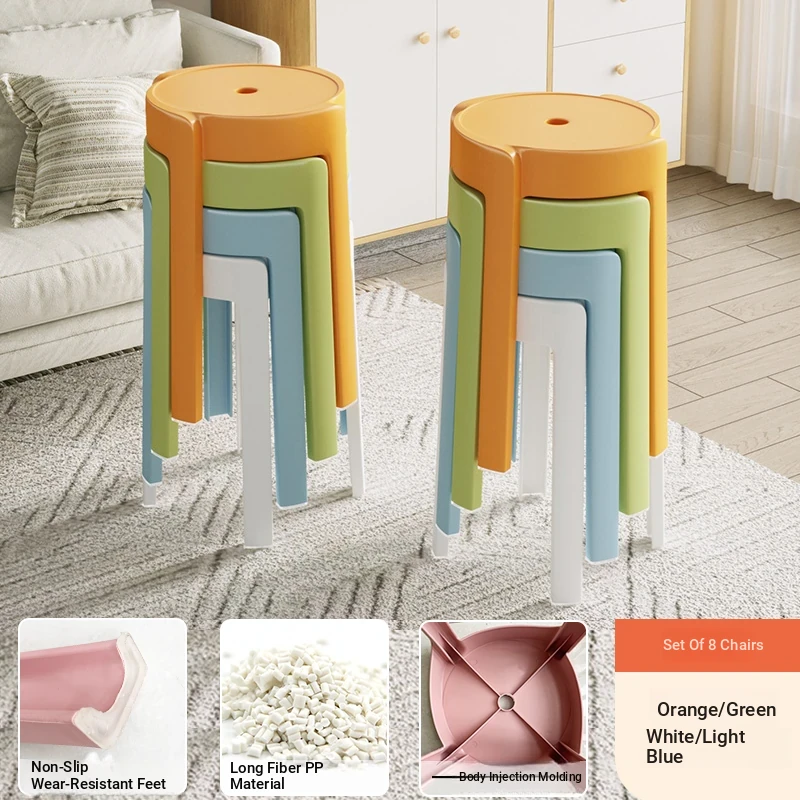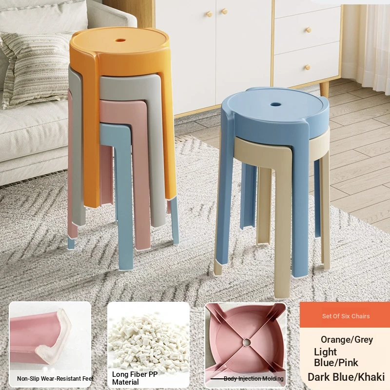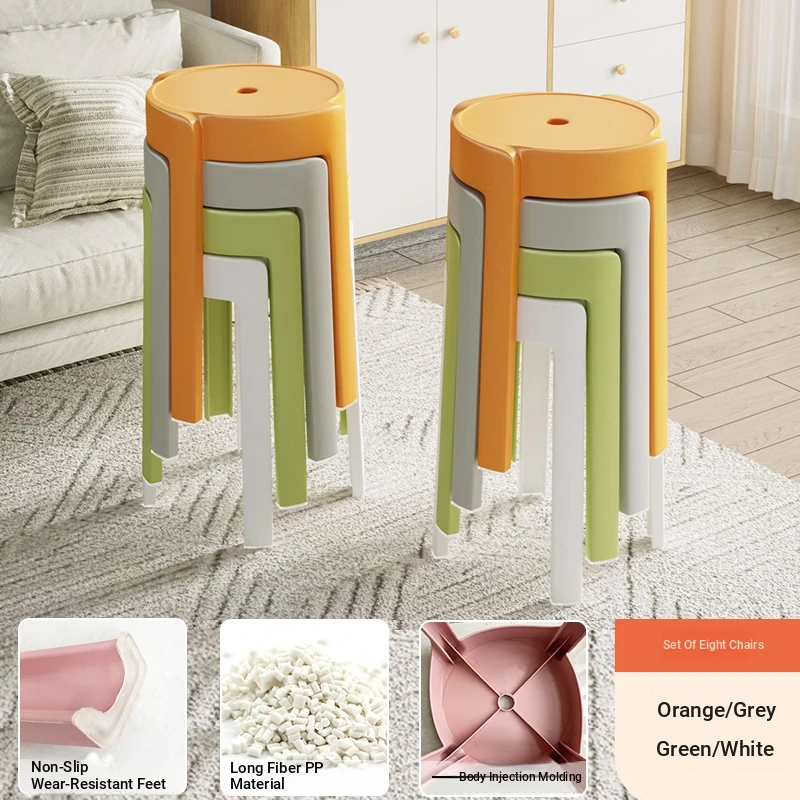 Nordic Style Dining Chair - Modern Minimalist Plastic Stool, Thickened, Foldable Round Stool for Home Living Room, Trendy and Space-Saving Design