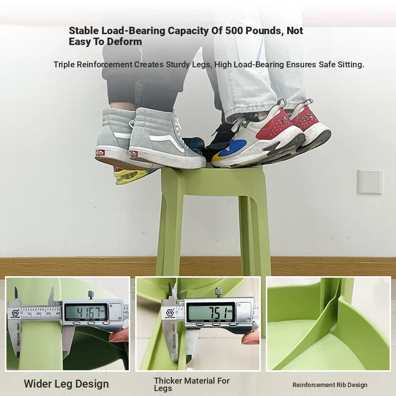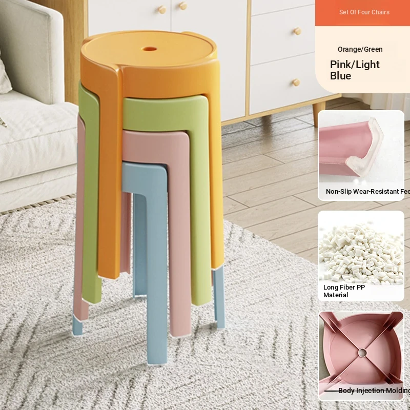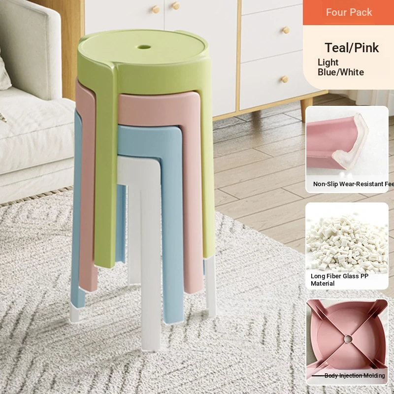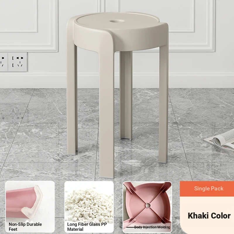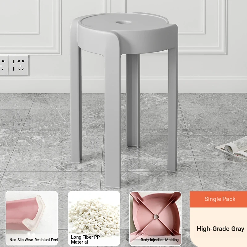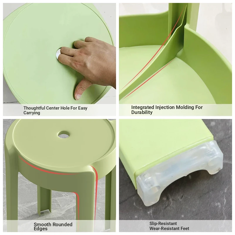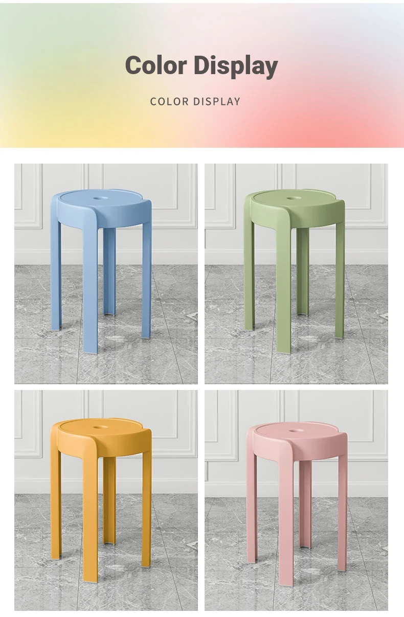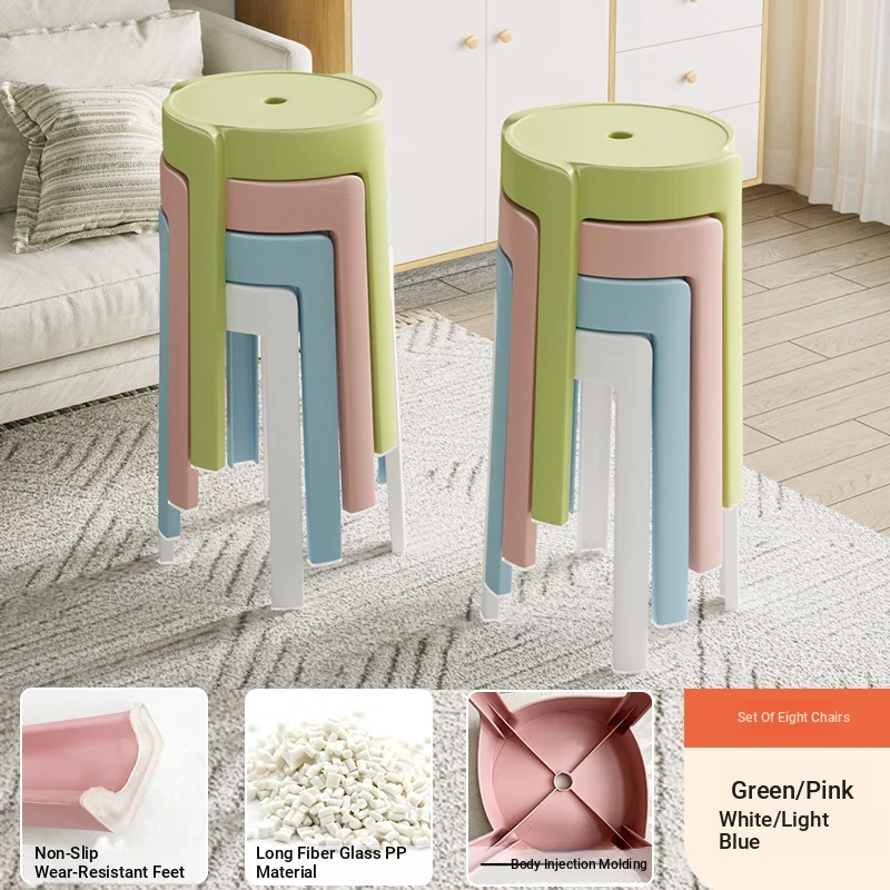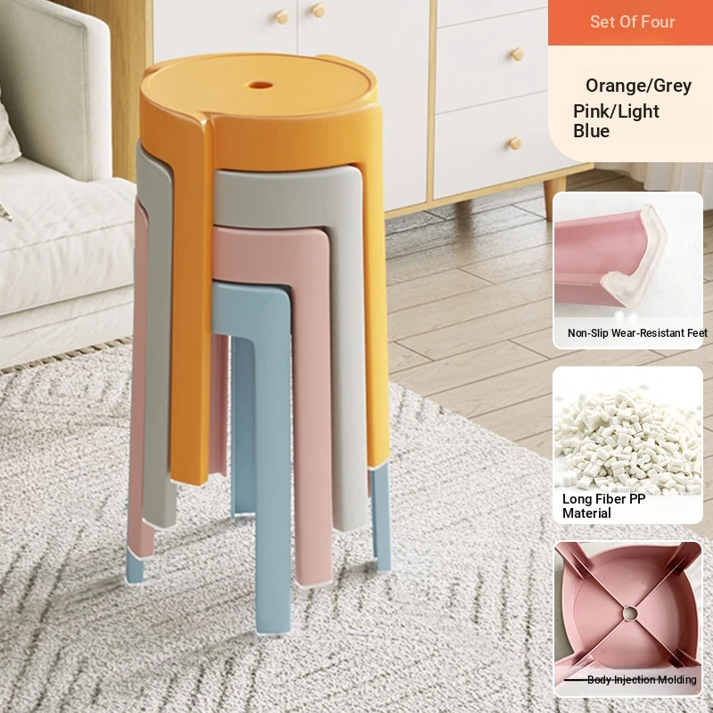 Nordic Style Dining Chair - Modern Minimalist Plastic Stool, Thickened, Foldable Round Stool for Home Living Room, Trendy and Space-Saving Design