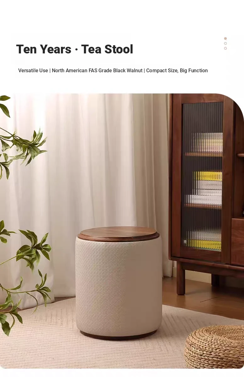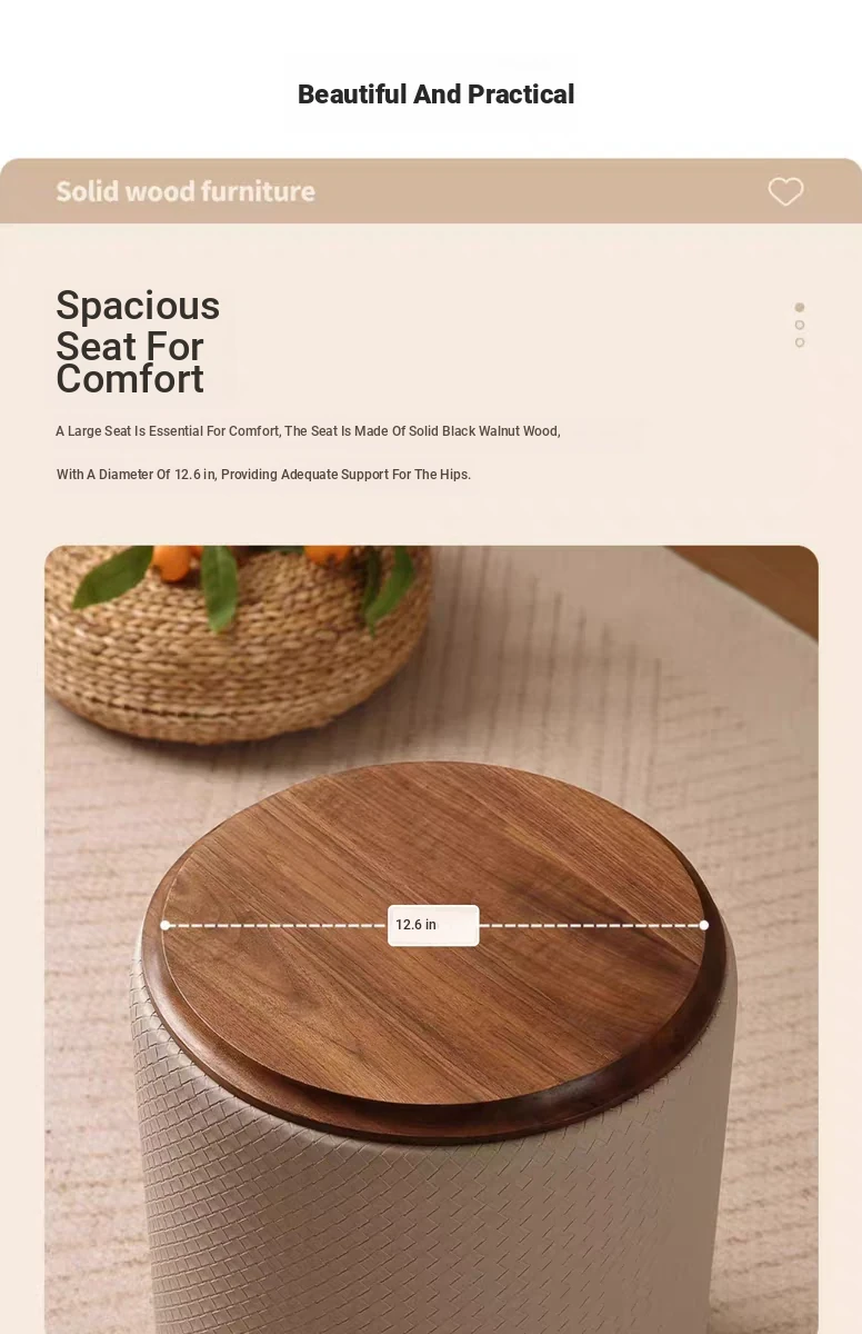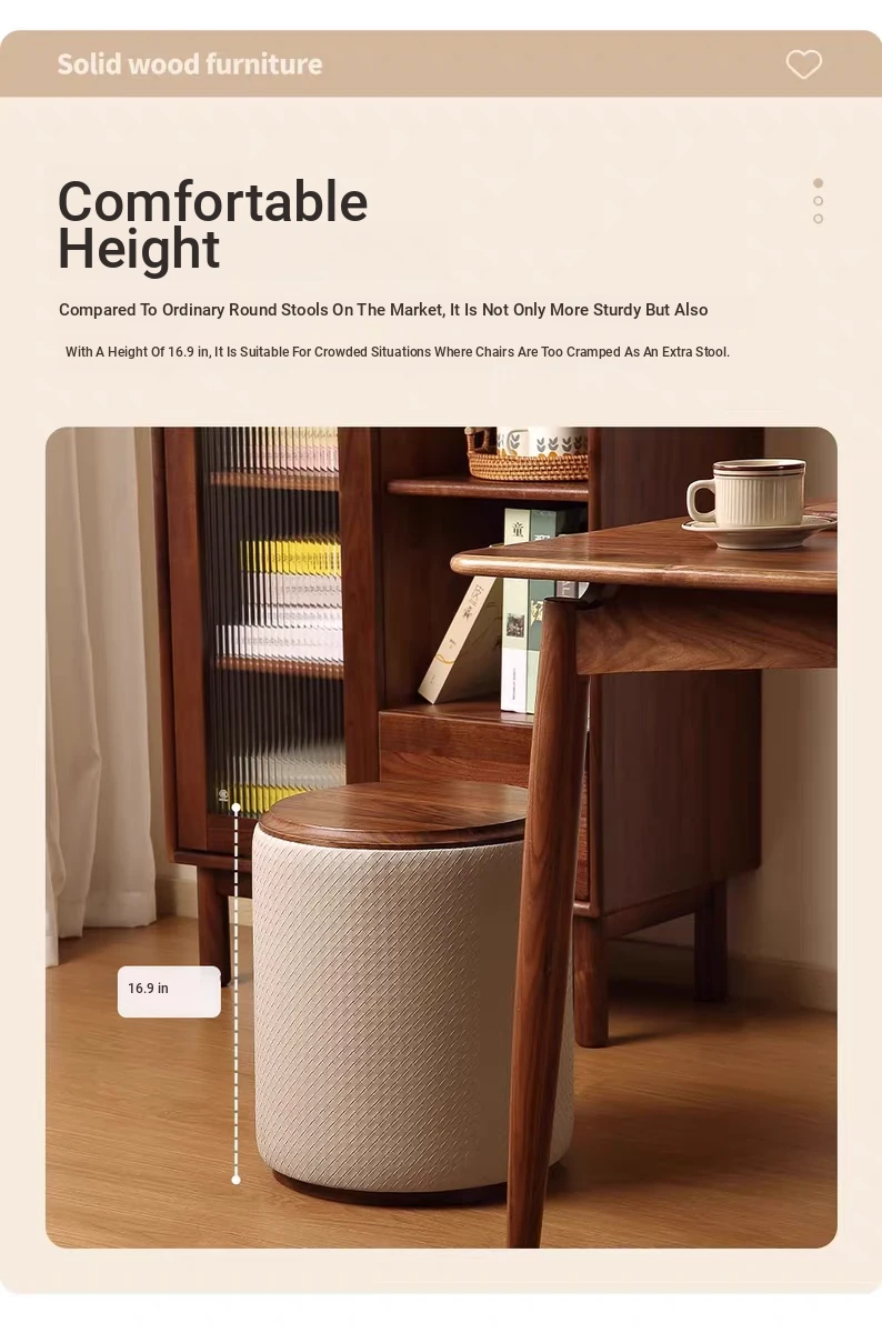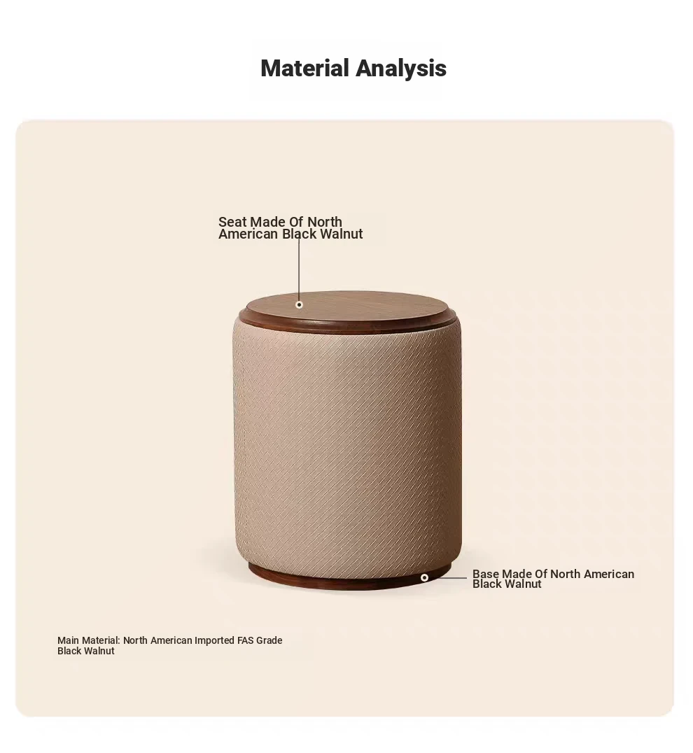 North American Black Walnut Round Stool - Chic Leather Vanity Seat, Soft Cushion Footstool for Home Use, Perfect for Bedroom Makeup and Dressing.
