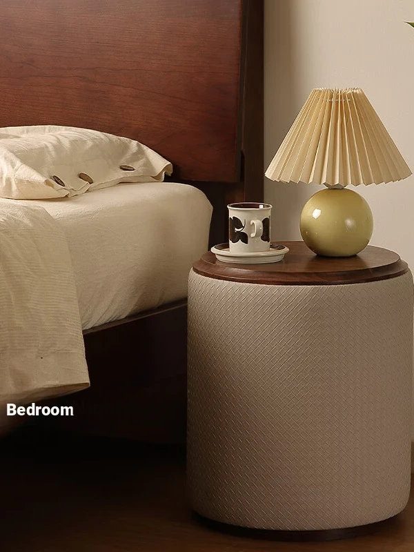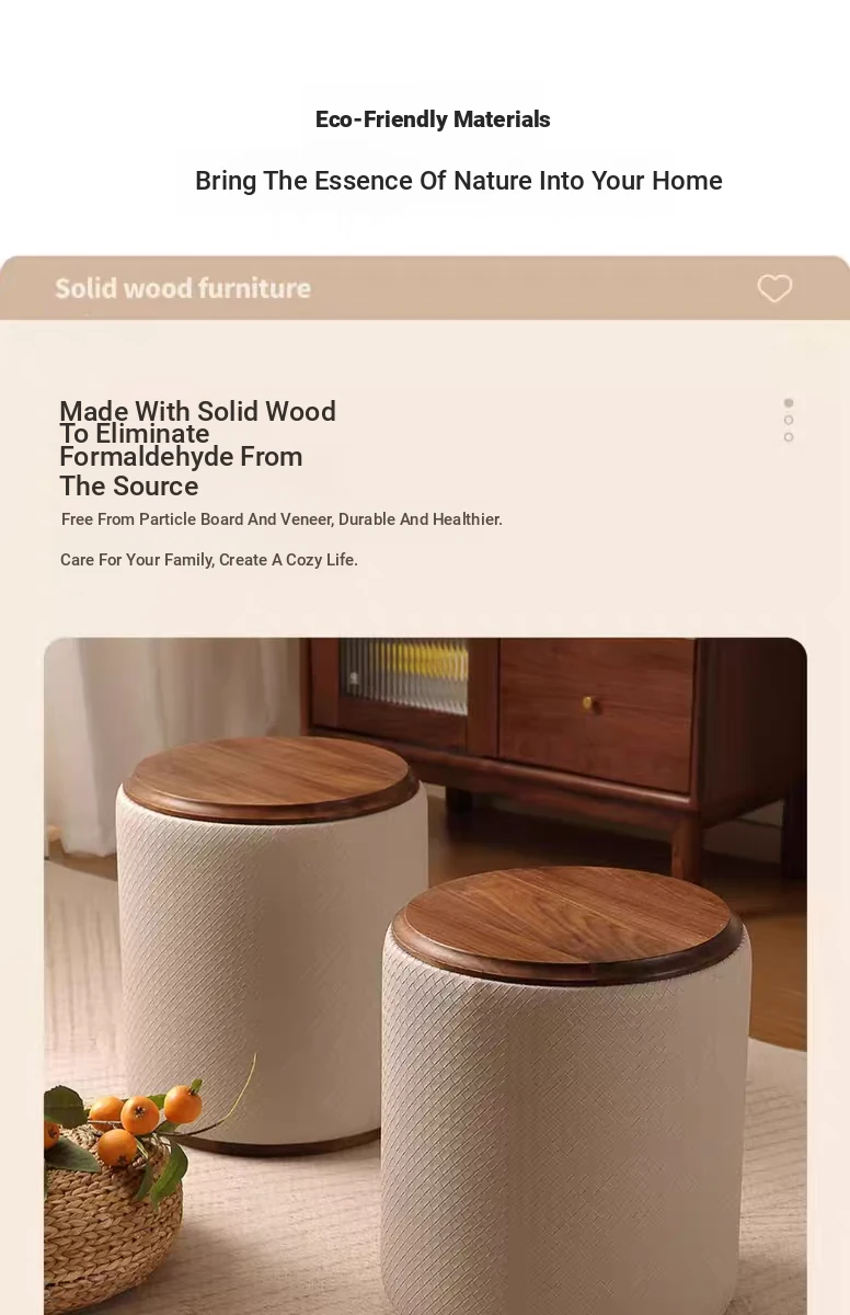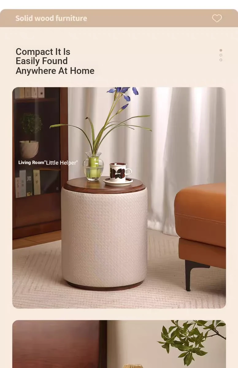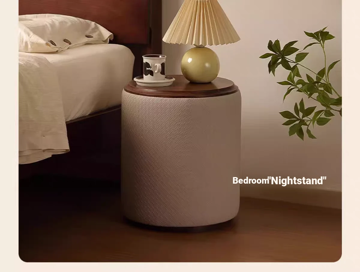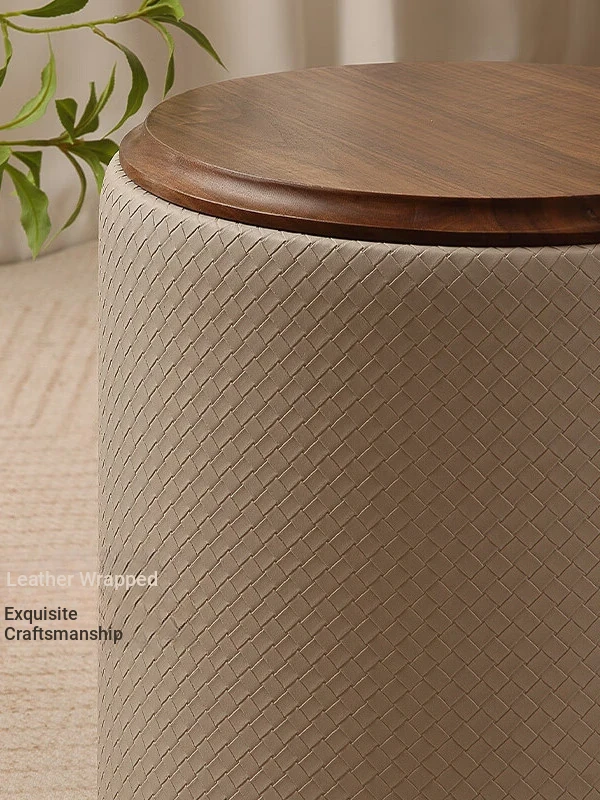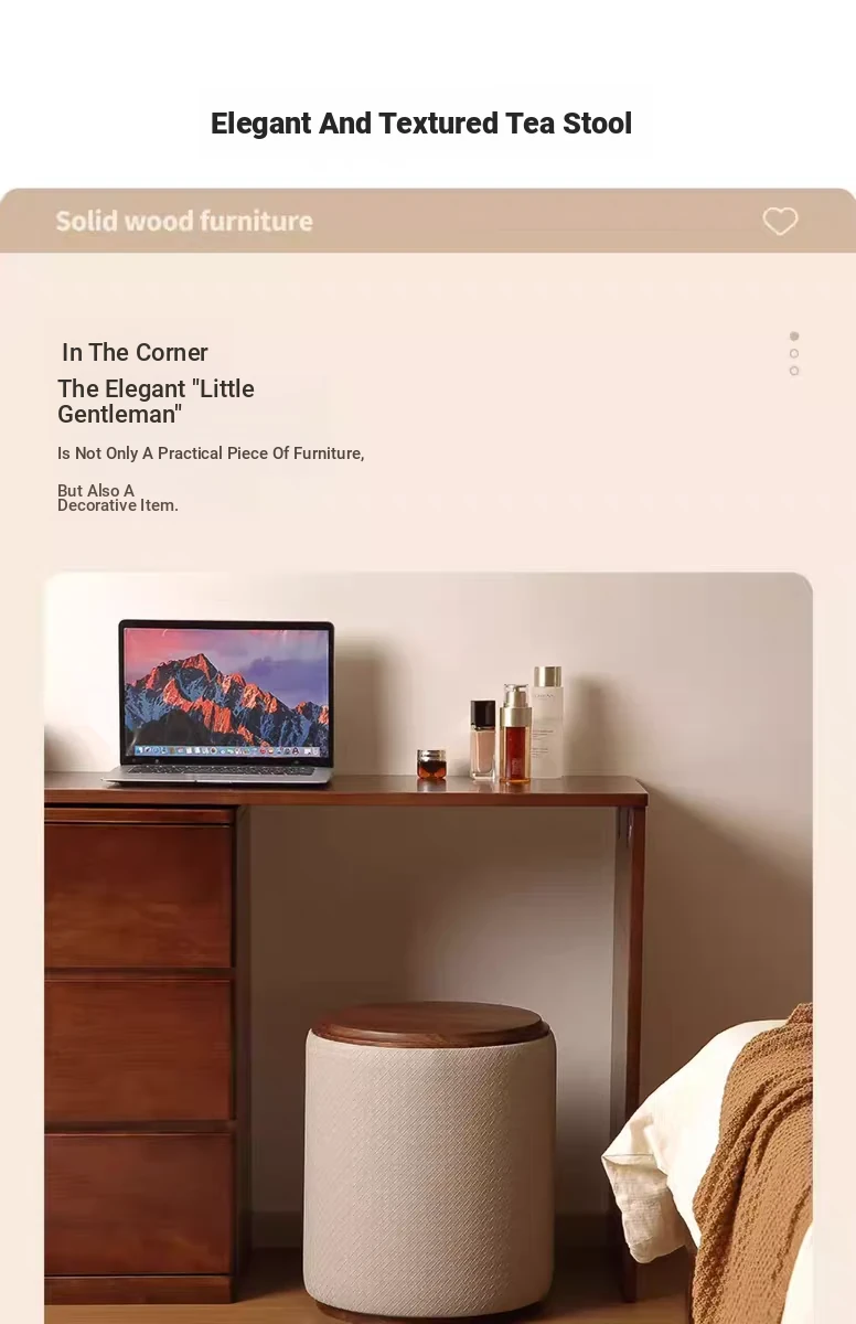 North American Black Walnut Round Stool - Chic Leather Vanity Seat, Soft Cushion Footstool for Home Use, Perfect for Bedroom Makeup and Dressing.